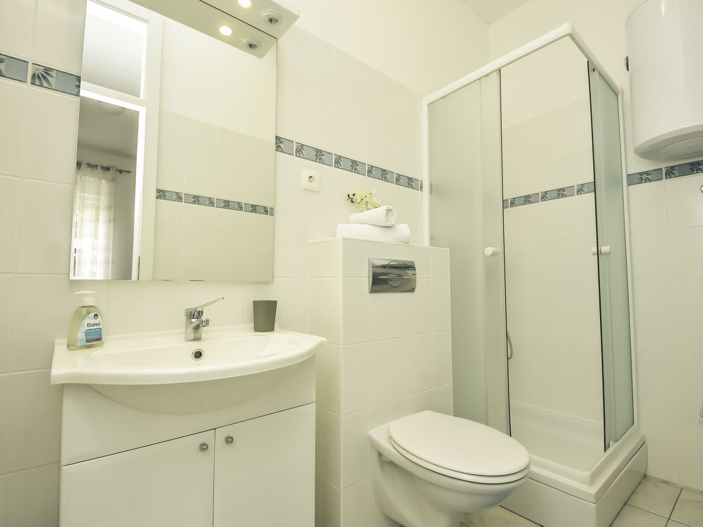 Altes Reihenhaus "Snježana", renoviert. 5 Wohnungen im Ferienhaus. Im Herzen der Stadt, 50 m vom Meer, 350 m vom Strand. Im Hause: Internetzugang. Zufahrt bis 50 m zum Haus. Öffentliche Parkplätze 150 m. Einkaufsgeschäft 30 m, Restaurant 50 m, betonierter Strand 350 m.