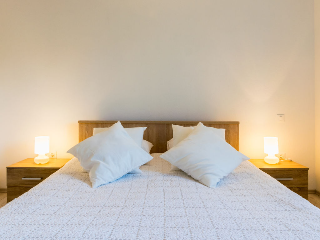 4-Zimmer-Wohnung 120 m2 im 3. Stock, Nordlage. Wohn-/Esszimmer mit Sat-TV und Klimaanlage. Ausgang zum Balkon. 1 Zimmer mit 1 franz. Bett (180 cm, Länge 200 cm), Bad/WC. Ausgang zum Balkon. 2 Zimmer, jedes Zimmer mit 1 franz. Bett (160 cm, Länge 200 cm). Offene Küche (Backofen, Geschirrspüler, 4 Glaskeramikherd Platten, Tiefkühler). Ausgang zum Balkon. Dusche/WC, sep. WC. Balkon 6 m2, Balkon 3 m2. Balkonmöbel. Fernsicht auf das Meer. Zur Verfügung: Internet (Wireless LAN, gratis).