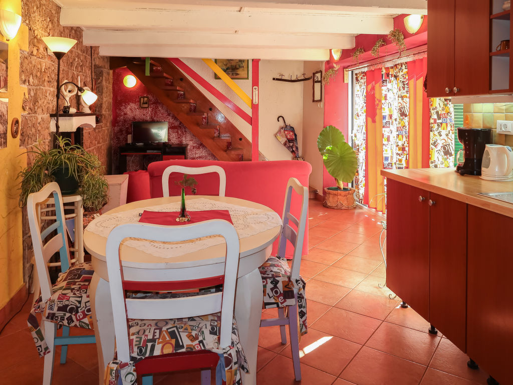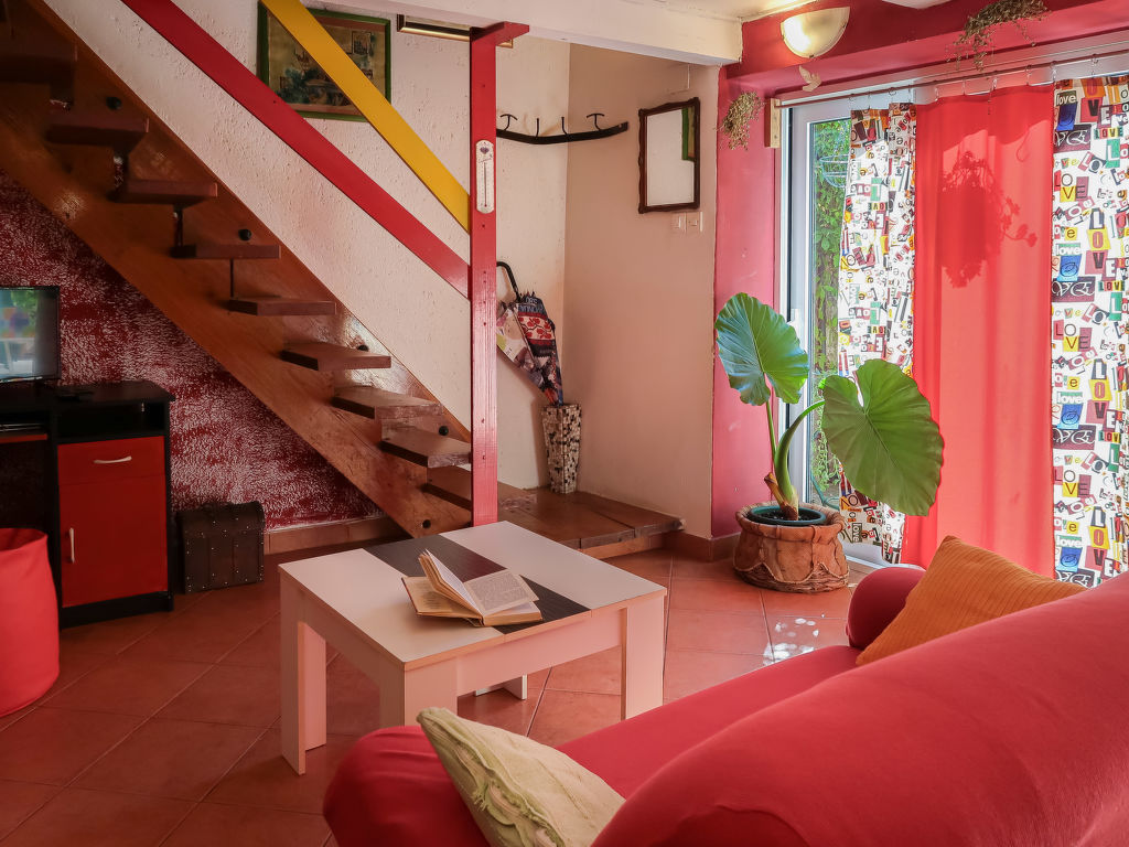 2-Zimmer-Doppelhaushälfte 70 m2 auf 2 Stockwerken. Wohn-/Esszimmer mit Kabel-TV und Internationale TV-Sender (Flachbildschirm), Radio und CD. Offene Küche (4 Kochplatten, Backofen, Geschirrspüler, Mikrowelle, Tiefkühler, elektrische Kaffeemaschine). Dusche/WC. Obergeschoss: offene Galerie mit 2 Betten (90 cm, Länge 190 cm). 1 Zimmer mit 1 franz. Bett. Klimaanlage (extra). Gartengrill (mobil), Liegestühle. Sicht auf die Berge. Zur Verfügung: Waschmaschine, Bügeleisen. Internet (Wireless LAN, gratis).