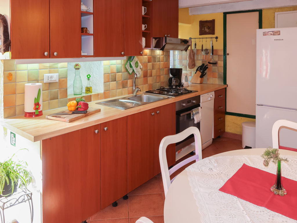 Schönes Doppelhaus "Vera (LOV304)", auf 2 Stockwerken, umgeben von Bäumen. 3 km vom Zentrum von Lovran, 5 km vom Zentrum von Opatija, 550 m vom Zentrum von Medveja, 550 m vom Meer, im Grünen. Zur Alleinbenutzung: Grundstück 700 m2 (eingezäunt), gepflegter Garten mit Pflanzen. Aussendusche, Terrasse, Gartenmöbel. Im Hause: Waschmaschine. Zufahrt bis 50 m zum Haus (Naturweg). 50 m Fussweg bis zum Haus. Parkplatz (für 3 Autos) auf dem Grundstück. Einkaufsgeschäft, Kieselstrand 550 m. Wanderwege ab Haus 50 m.