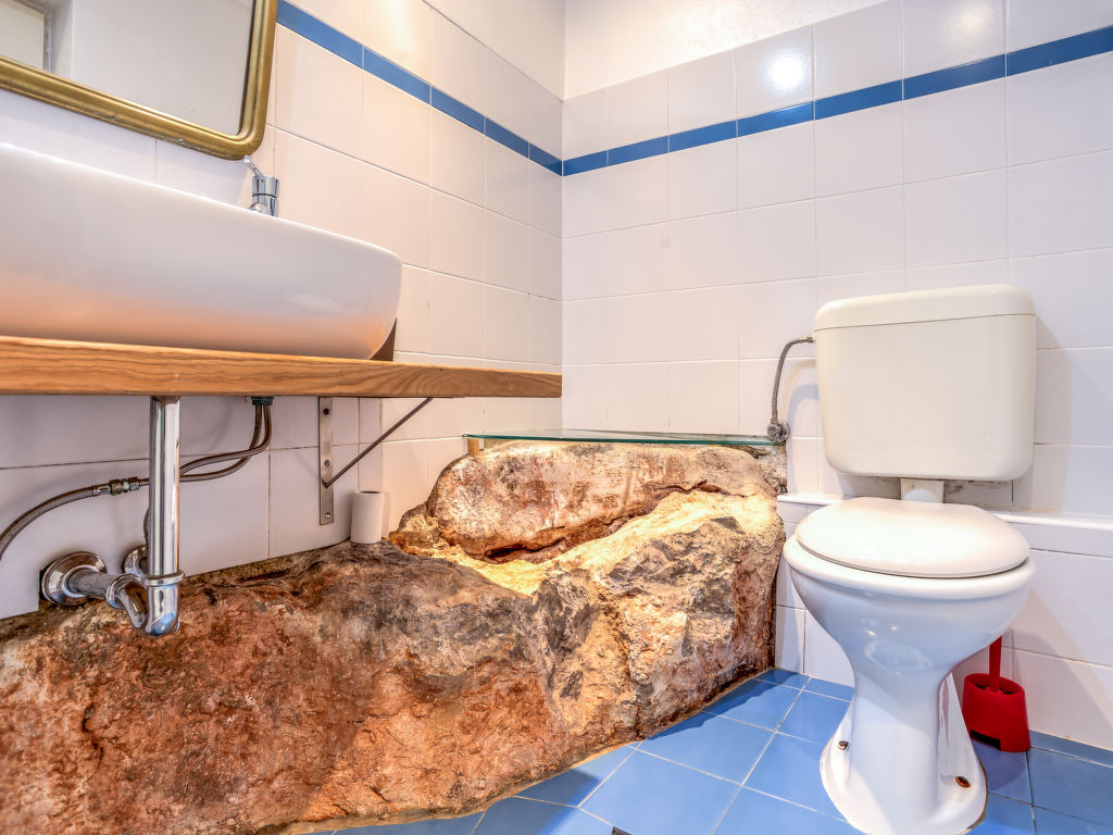 2-Zimmer-Wohnung 50 m2, im ebenerdigen Untergeschoss. Wohn-/Esszimmer 25 m2 mit 1 Doppeldiwanbett, Sat-TV und Klimaanlage. Ausgang zur Terrasse. 1 Zimmer mit 1 franz. Bett (160 cm, Länge 200 cm). Küche (2 Kochplatten, Tiefkühler). Dusche/WC. Klimaanlage (extra). Terrasse 30 m2. Terrassenmöbel.