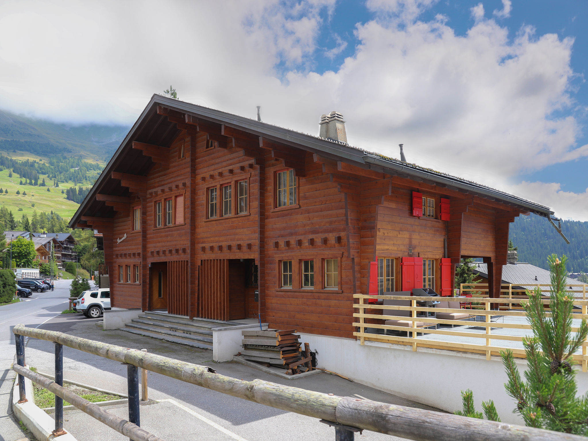 Verbier: Mehrfamilienhaus "Les Rousserolles". Im Ortsteil Brunet, im Ort, 700 m vom Zentrum von la station, ruhige, sonnige Lage, an einer Strasse, Richtung Süden. Im Hause: Skiraum. Zufahrt bis zum Haus. Öffentliche Parkplätze 800 m. Einkaufsgeschäft 700 m, Lebensmittelgeschäft 200 m, Supermarkt 1 km, Restaurant, Bar, Bäckerei, Café 700 m, Bushaltestelle "Brunet" 200 m, Hallenbad 800 m. Golfplatz (18 Loch) 2.5 km, Tennis, Reitstall, Sportzentrum 800 m, Skilift 300 m, Sessellift 2.5 km, Gondelbahn 600 m, Skisportanlagen 1.1 km, Skibushaltestelle 200 m, Skischule 1.1 km, Ski-Kindergarten 700 m, Eisfeld 800 m, Kinderspielplatz 900 m. Der gratis Skibus fährt zum Skigebiet Savoleyres 600m, Médran 1.1km und Carrefour 2.5km. Bitte beachten: Nacht Club/Disco 900 m vom Haus. In diesem Haus sind weitere Ferienwohnungen mietbar.
