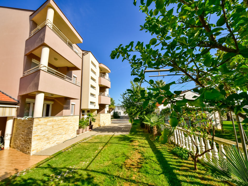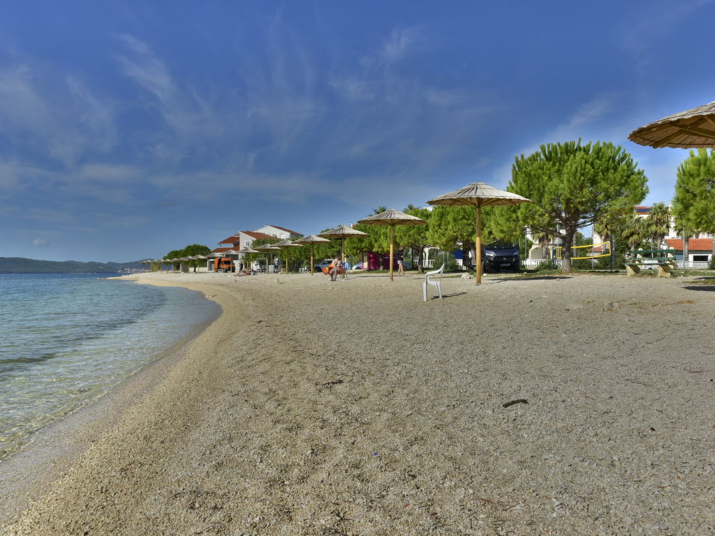 Bibinje 10 km von Zadar: Mehrfamilienhaus "Marko". 2 km vom Zentrum von Bibinje, sonnige Lage, 70 m vom Meer, 70 m vom Strand. Zur Mitbenutzung: Grundstück 700 m2 (eingezäunt), gepflegter Garten mit Rasen und Bäumen, Schwimmbad eckig beheizt (7 x 3 m, 24 m2, 150 cm tief, saisonale Verfügbarkeit: 23.Mar.-19.Okt.) mit Innentreppe. Aussendusche, Poolhaus mit Kühlschrank, WC und Kochherd, Terrasse (32 m2), Gartenmöbel, Grill, Kinderspielplatz (Schaukel). Im Hause: Internetzugang. Parkplatz beim Haus auf dem Grundstück. Einkaufsgeschäft, Restaurant 650 m, Café 100 m, Kieselstrand 70 m, Tauchzentrum 100 m, Strandbad 70 m. Jacht-Hafen 50 m, Kinderspielplatz 100 m. Bitte beachten: private Bootsanlegestelle (extra) auf Anfrage. Videoüberwachung der Immobilie.