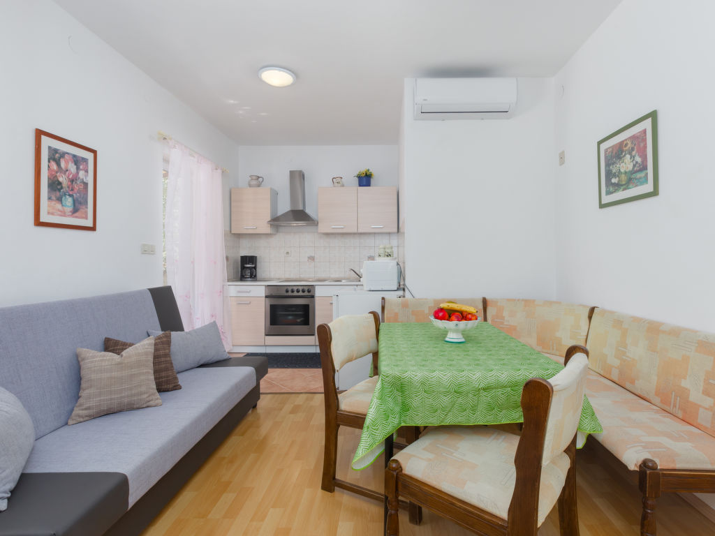 "Nena (PRC426)", 3-Zimmer-Wohnung 50 m2, im Erdgeschoss. Wohn-/Esszimmer mit 1 Diwanbett, Sat-TV und Klimaanlage. Ausgang zur Terrasse. 2 Zimmer, jedes Zimmer mit 2 Betten. Offene Küche (Backofen, 4 Glaskeramikherd Platten, Toaster, Wasserkocher, Mikrowelle, elektrische Kaffeemaschine). Dusche/WC. Terrasse 12 m2. Terrassenmöbel. Zur Verfügung: Internet (Wireless LAN, gratis). Bitte beachten: Nichtraucher-Haus. Maximal 1 Haustier/Hund erlaubt.