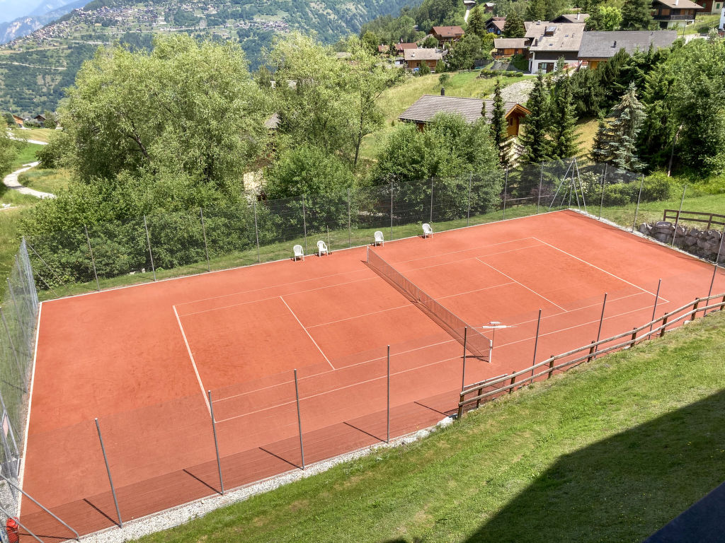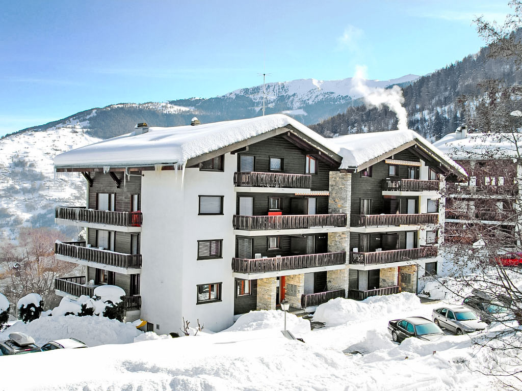 Appartementhaus "Arnica". Im Ortszentrum, exzellente Lage: Absolut zentral und dennoch ruhig. Zur Mitbenutzung: Hallenbad (12 x 6 m, 135 - 175 cm tief, saisonale Verfügbarkeit: 16.Dez.-01.Nov.). Tennis (extra). Im Hause: Sauna (extra). Fahrstuhl, Waschmaschine (extra), Wäschetrockner (zur Mitbenutzung, extra). Parkplatz (beschränkte Anzahl). Einkaufsgeschäft 50 m, Restaurant 100 m, Bäckerei 50 m. Golfplatz 18 km, Gondelbahn 450 m, Kinderspielplatz 800 m. Bekannte Skigebiete sind gut erreichbar: Tracouet 4 Vallées 450 m. Wandergebiete: Bisse du Milieu 20 m. Bitte beachten: Gratis Skibus. Tennis zusätzlich.