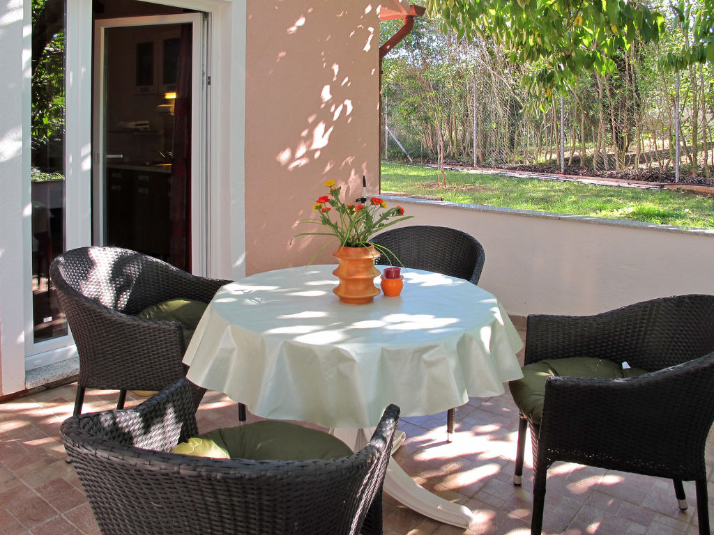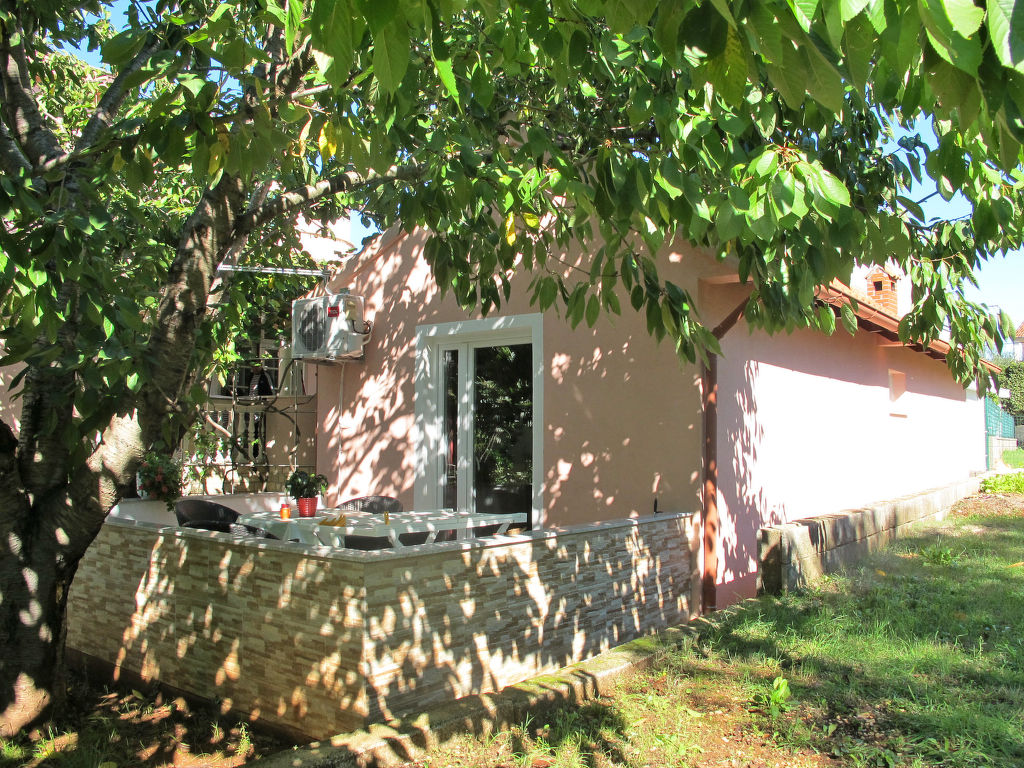 2-Zimmer-Haus 34 m2. Wohn-/Esszimmer mit 1 Doppeldiwanbett und TV (Flachbildschirm), Klimaanlage. Ausgang zur Terrasse. 1 Zimmer mit 1 franz. Bett (160 cm). Offene Küche (4 Kochplatten, Toaster, Wasserkocher, Mikrowelle, elektrische Kaffeemaschine). Dusche/WC. Terrasse. Terrassenmöbel. Zur Verfügung: Internet (Wireless LAN, gratis). Bitte beachten: Nichtraucher-Haus.