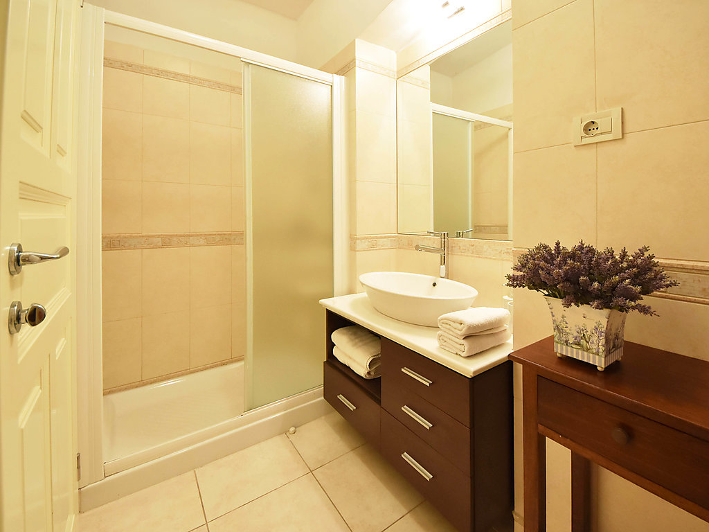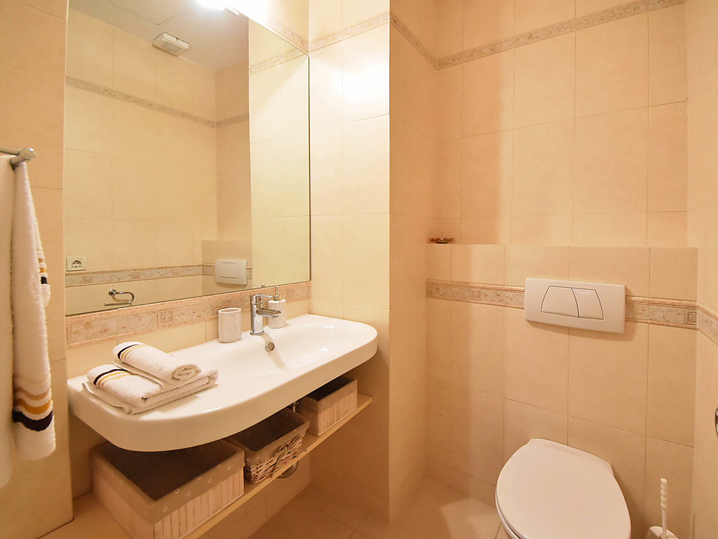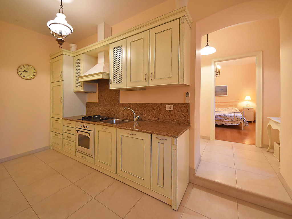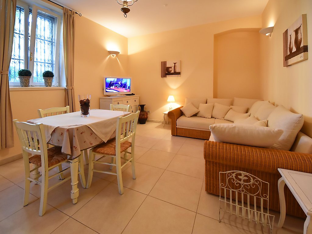 2-Zimmer-Wohnung 60 m2, im Erdgeschoss. Wohn-/Esszimmer 28 m2 mit 1 Doppeldiwanbett (160 cm, Länge 220 cm), Sat-TV (Flachbildschirm), Klimaanlage. Ausgang zur Terrasse. 1 Zimmer mit 1 franz. Bett (160 cm, Länge 200 cm), Dusche/WC. Offene Küche (4 Kochplatten, Backofen, Geschirrspüler, Tiefkühler, elektrische Kaffeemaschine). Sep. WC. Terrasse 20 m2. Terrassenmöbel. Zur Verfügung: Safe. Internet (Wireless LAN, gratis). Bitte beachten: eigener Eingang.