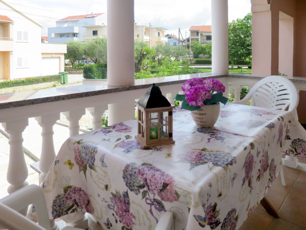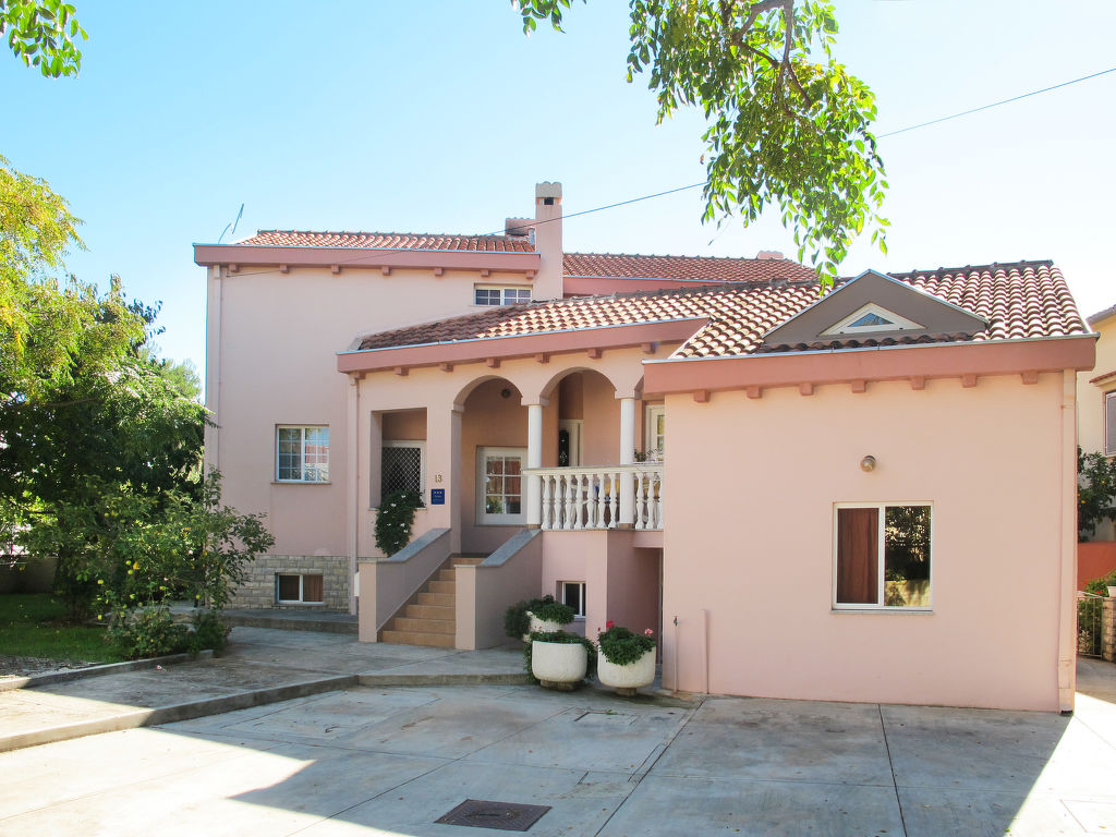 Dreifamilienhaus "Catarina". Im Ortsteil Borik, 4 km vom Zentrum, 20 km vom Zentrum von Nin, 30 km vom Zentrum von Biograd na Moru, 450 m vom Meer, 450 m vom Strand. Zur Mitbenutzung: Grundstück 660 m2, Bäumen. Grill. Im Hause: Internetzugang. Parkplatz auf dem Grundstück. Einkaufsgeschäft 150 m, Restaurant 200 m, Kieselstrand 450 m. Bitte beachten: Ferienwohnung Ref. HR4100.617.1 befindet sich auf dem gleichen Grundstück.