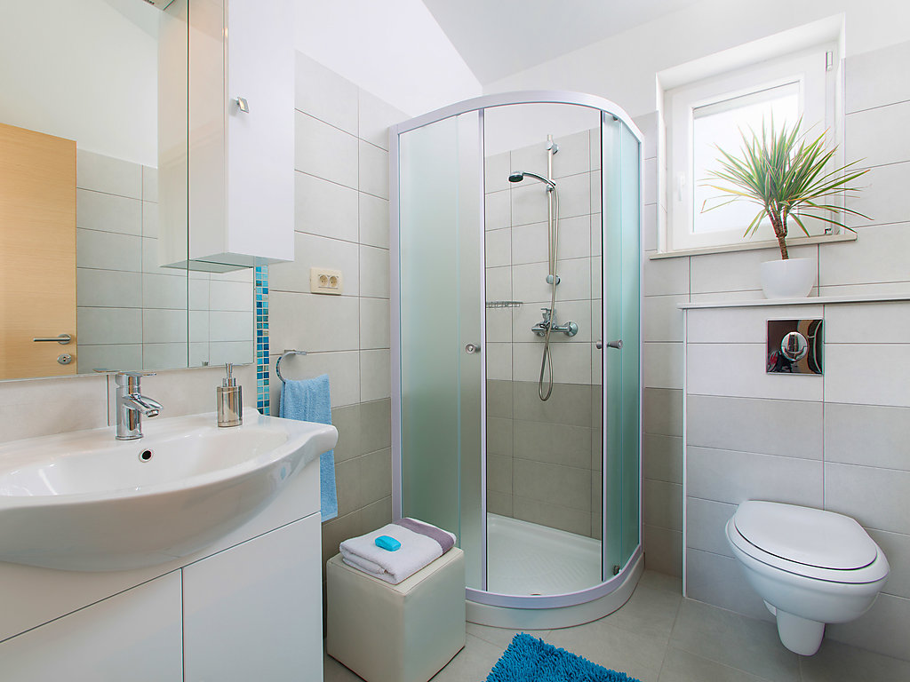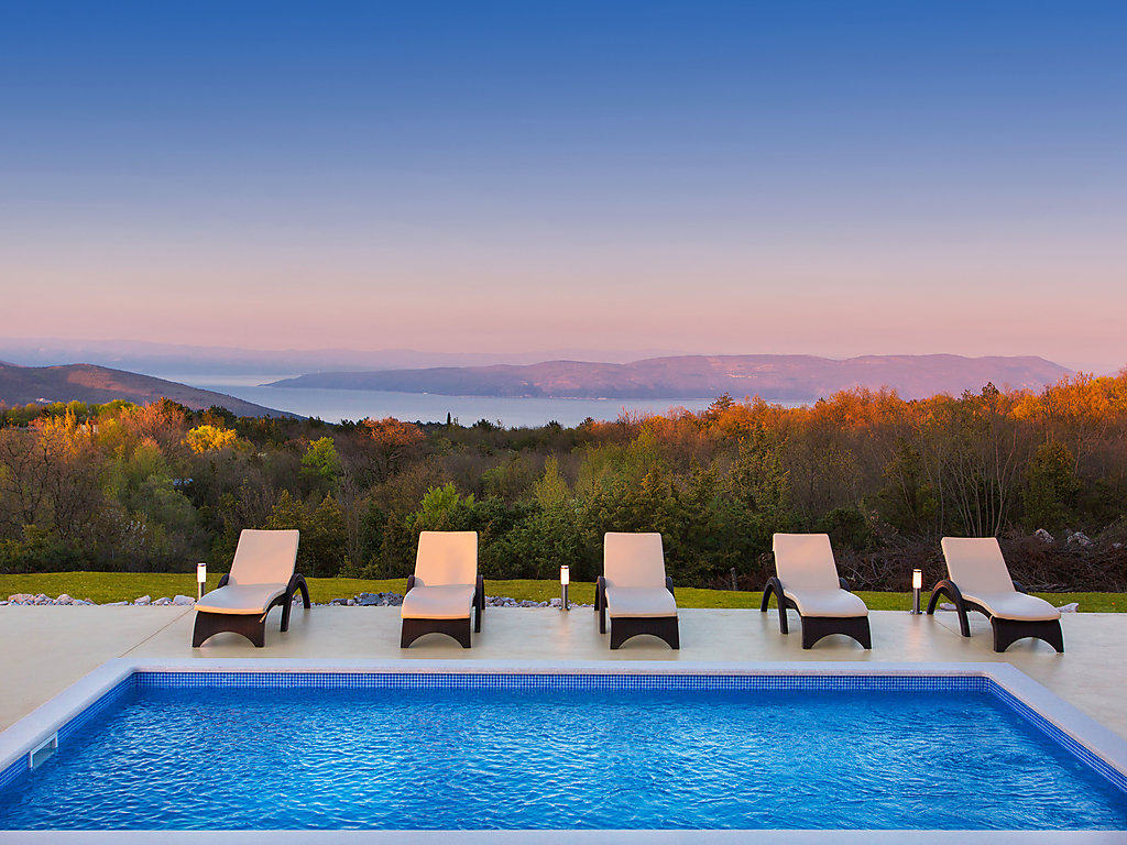 Schönes Einfamilienhaus "Bura", auf 2 Stockwerken. Im Weiler Bartići, 6 km vom Zentrum von Labin, alleinstehende, ruhige, erhöhte Lage, 7 km vom Meer, in einer Sackgasse, im Grünen. Zur Alleinbenutzung: Grundstück 1'280 m2 (eingezäunt), schöner Garten mit Rasen und Pflanzen, Schwimmbad eckig (8 x 4 m, 140 cm tief, 13.04.-26.10.). Aussendusche, Poolhaus mit WC und Kochherd, Terrasse (15 m2), Gartenmöbel, Grill, Kinderspielplatz (Rutschbahn, Schaukel). Im Hause: Internetzugang, Tischfussball, Zentralheizung, Waschmaschine, Wäschetrockner. Parkplatz beim Haus auf dem Grundstück. Einkaufsgeschäft 3 km, Restaurant 2.5 km, Kieselstrand 7 km. Surfschule 8 km, Tennis 8 km, Reitstall 3 km, Wanderwege ab Haus 50 m, Radweg 100 m.