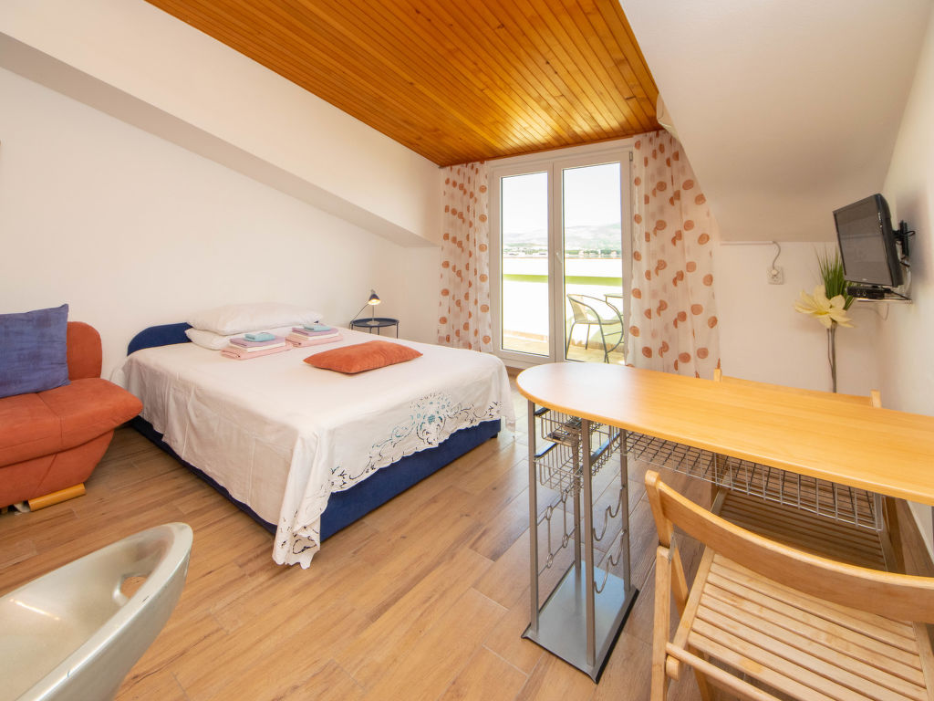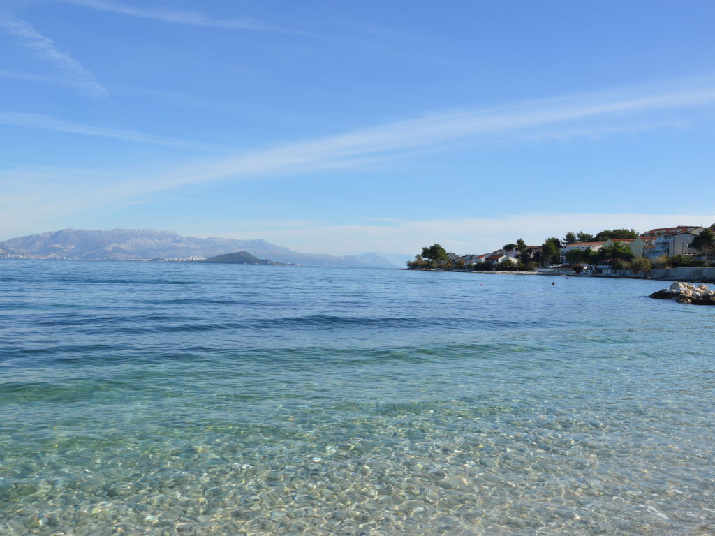 Arbanija (Čiovo) 4 km von Trogir: Appartementhaus "Šarić". 100 m vom Zentrum von Arbanija, sonnige Lage, 30 m vom Meer, 30 m vom Strand. Im Hause: Internetzugang. Öffentliche Parkplätze. Einkaufsgeschäft, Restaurant 50 m, Kieselstrand 30 m. Golfplatz 35 km, Tennis 7 km. Bitte beachten: Flugplatz 10 km vom Haus.