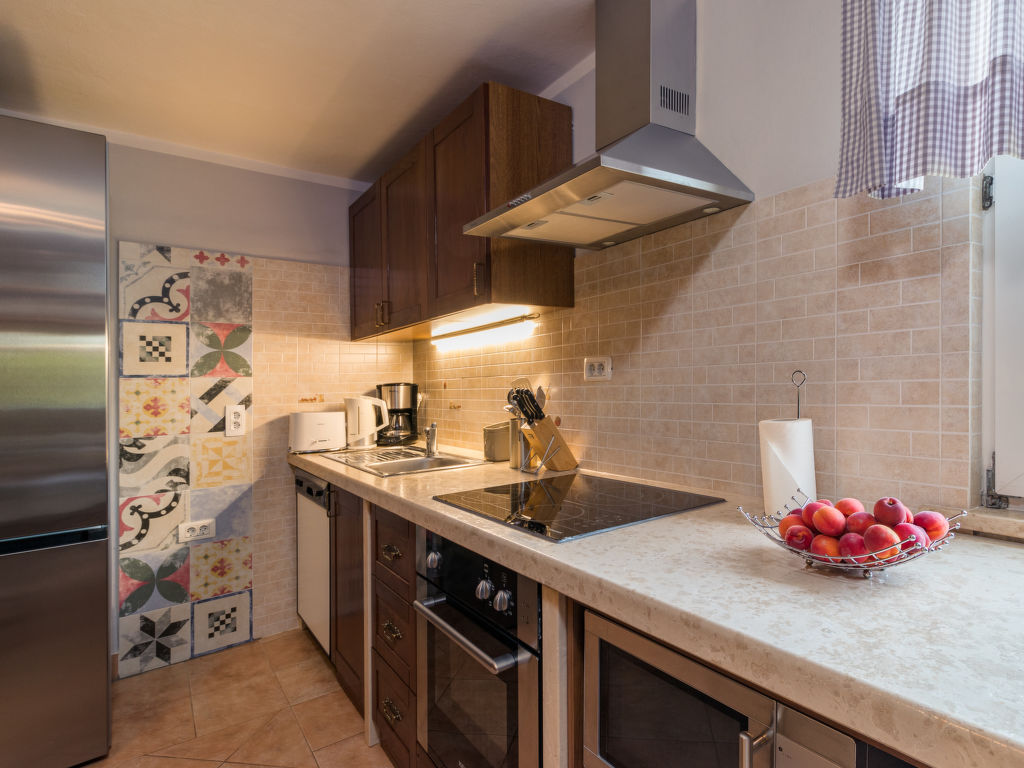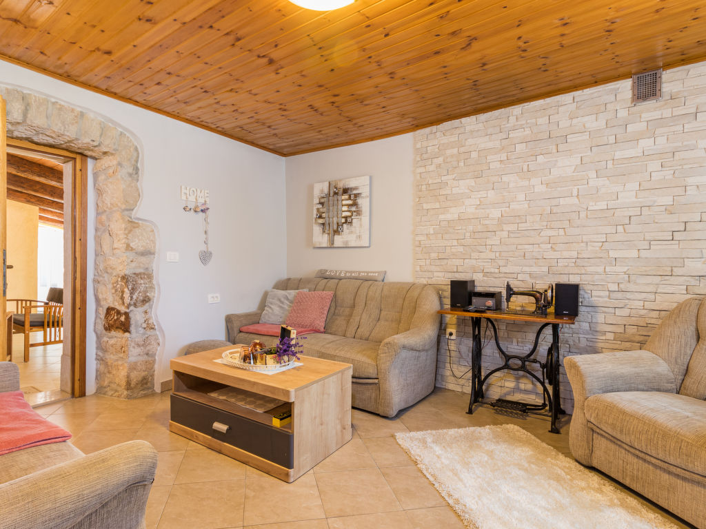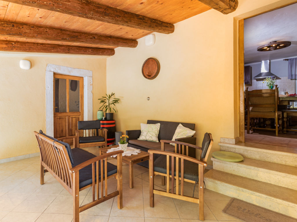 Einfamilienhaus "Mariva (IPC132)". Im Weiler Hajnožići, 2.5 km vom Zentrum von Pićan, 5 km vom Zentrum von Potpićan, 15 km vom Meer. Zur Alleinbenutzung: Grundstück 2'000 m2 mit Rasen und Bäumen, Schwimmbad (6 x 4 m, 135 cm tief, 01.05.-01.10.) mit Innentreppe. WC im Poolbereich, Aussendusche, Tischtennis, Badminton, Terrasse (16 m2), Gartenmöbel (Schaukel). Im Hause: Internetzugang, Waschmaschine. Parkplatz (für 3 Autos) auf dem Grundstück. Supermarkt 5 km, Kieselstrand 21 km. Jacht-Hafen 21 km.