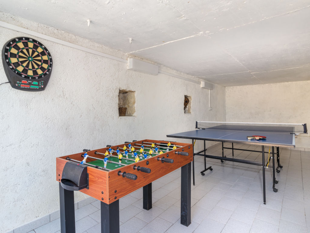 4-Zimmer-Haus 100 m2. Wohnzimmer mit 1 Doppeldiwanbett und offenem Kamin (nur Deko), Sat-TV und Klimaanlage. Ausgang zur Terrasse. 2 Zimmer, jedes Zimmer mit 1 franz. Bett (160 cm, Länge 200 cm), Klimaanlage. 1 Zimmer mit 1 Doppelbett und Klimaanlage. Esszimmer mit TV. Küche (Backofen, Geschirrspüler, 1 Glaskeramikherd Platte, Toaster, Wasserkocher, Mikrowelle, Tiefkühler, elektrische Kaffeemaschine). 2 Duschen/WC. Zur Verfügung: Bügeleisen, Babybett. Internet (Wireless LAN, gratis). Bitte beachten: Nichtraucher-Haus.