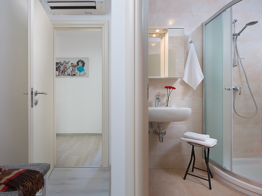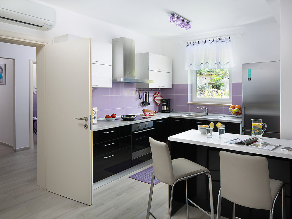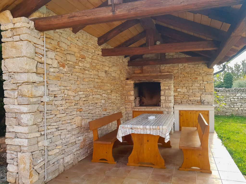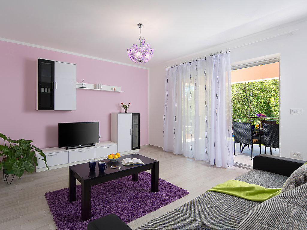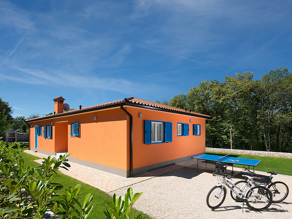 Einfamilienhaus "Ana". Im Weiler Stanje, 1.5 km vom Zentrum von Trget, ruhige, sonnige Lage, 1.5 km vom Meer, 1.5 km vom Strand. Zur Alleinbenutzung: Grundstück 900 m2 (eingezäunt), schöner Garten mit Rasen, Schwimmbad eckig (8 x 4 m, 140 cm tief, 27.04.-12.10.) mit Innentreppe. Aussendusche, Tischtennis, Grill, Kinderspielplatz (Schaukel). Im Hause: Internetzugang, Trampolin, Waschmaschine. Zur Verfügung: Fahrräder (2). Parkplatz beim Haus auf dem Grundstück. Einkaufsgeschäft 1.5 km, Supermarkt 10 km, Restaurant 1.5 km, Kieselstrand 1.5 km, Felsstrand 1.5 km. Wanderwege ab Haus 500 m, Radweg 550 m.