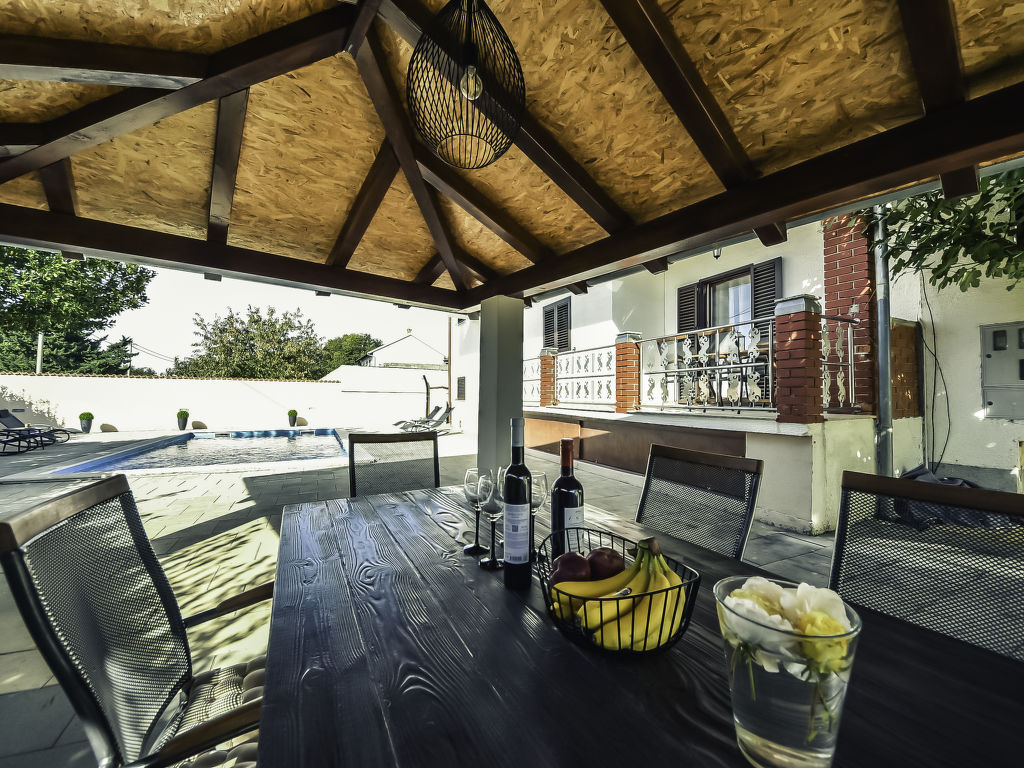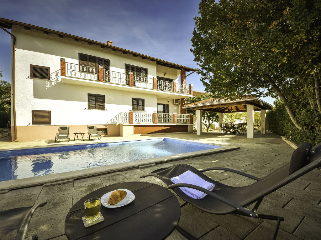 Polača 11 km von Biograd na Moru: Zweifamilienhaus "Tuta". Sonnige Lage, 11 km vom Meer. Zur Alleinbenutzung: Grundstück 250 m2 (eingezäunt), Schwimmbad eckig (8 x 4 m, 150 cm tief, 04.05.-28.09.). Aussendusche, Grillhaus. Im Hause: Internetzugang, Waschmaschine. Parkplatz (für 4 Autos) beim Haus auf dem Grundstück. Einkaufsgeschäft 200 m, Restaurant 11 km, Kieselstrand 11 km. Bekannte Seen in der Umgebung sind gut erreichbar: Vransko jezero 18 km.
