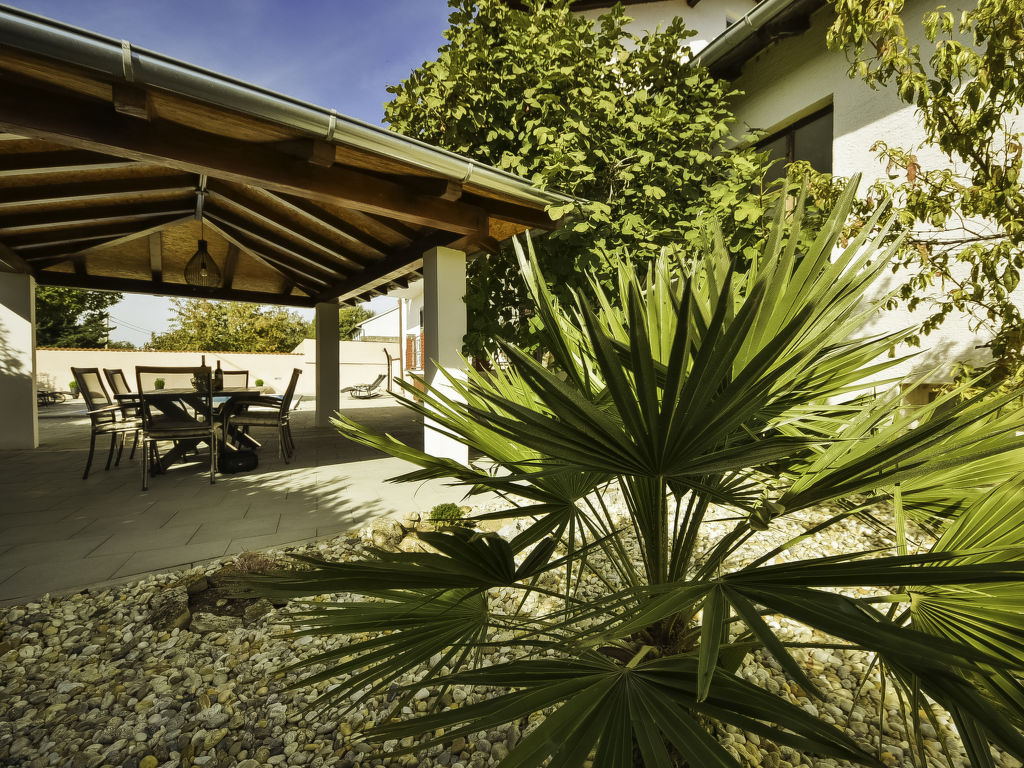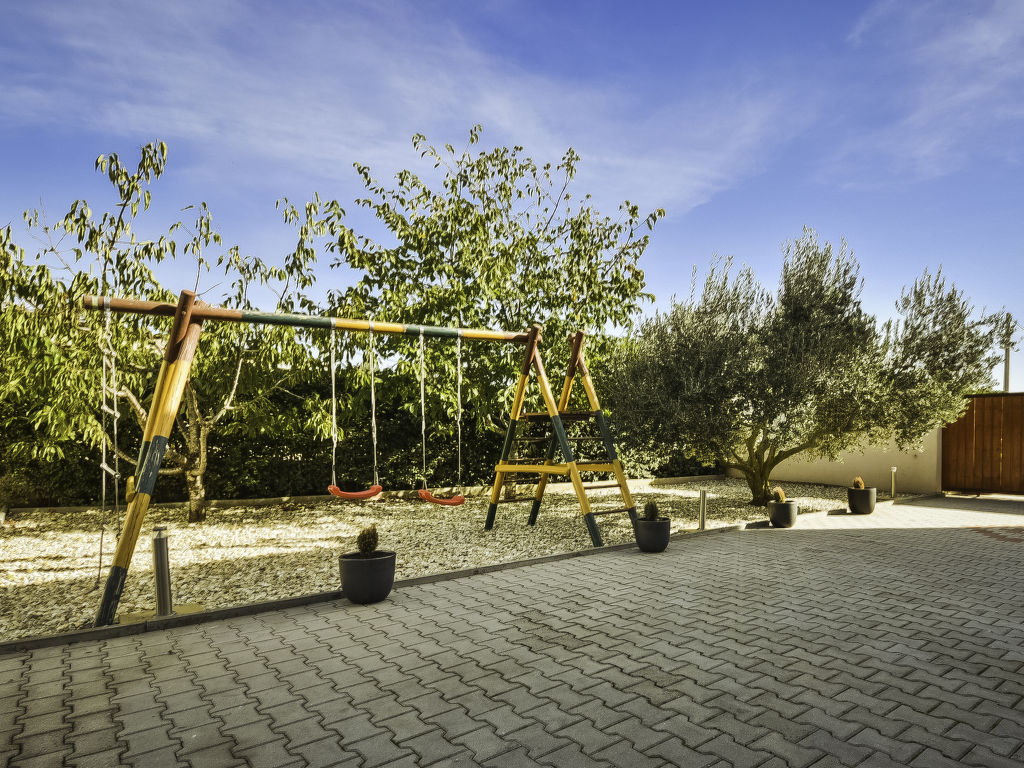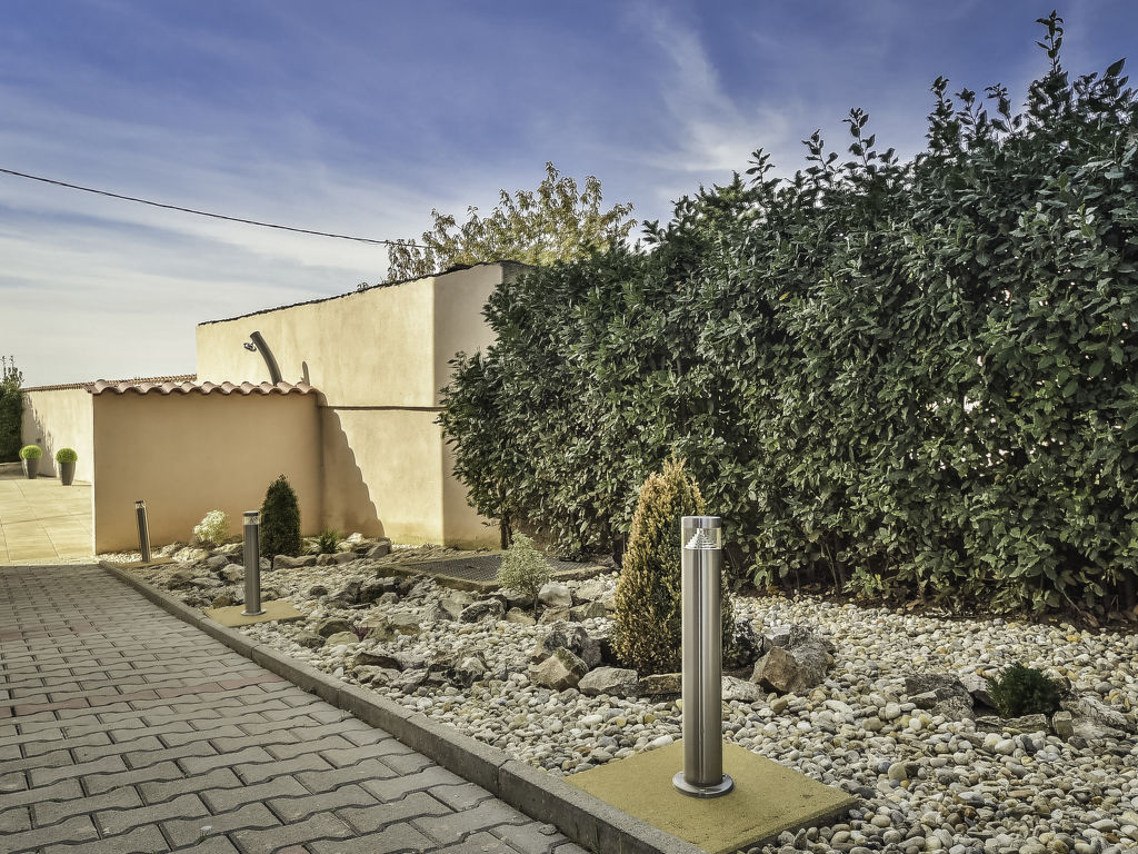 8-Zimmer-Haus 240 m2 auf 2 Stockwerken, Südwestlage. Wohnzimmer 20 m2 mit TV (Flachbildschirm), Klimaanlage. Ausgang zur Terrasse. 3 Zimmer, jedes Zimmer mit 1 Doppelbett (2 x 90 cm, Länge 200 cm). Küche (Backofen, Geschirrspüler, 4 Glaskeramikherd Platten, Tiefkühler) mit Esstisch. Bad/WC, sep. WC. Obergeschoss: Wohn-/Esszimmer 40 m2 mit Sat-TV (Flachbildschirm), Klimaanlage. Ausgang zur Terrasse. 2 Zimmer, jedes Zimmer mit 1 Doppelbett (2 x 90 cm, Länge 200 cm). Ausgang zur Terrasse. 1 Zimmer mit 1 Doppelbett (2 x 90 cm, Länge 200 cm). Offene Küche (Backofen, Geschirrspüler, 4 Glaskeramikherd Platten, Mikrowelle, Tiefkühler, elektrische Kaffeemaschine). Bad/Bidet/WC, Dusche/WC, sep. WC. 2 Terrassen 10 m2, überdacht. Terrassenmöbel, Liegestühle. Sicht auf das Schwimmbad. Zur Verfügung: Internet (Wireless LAN, gratis).