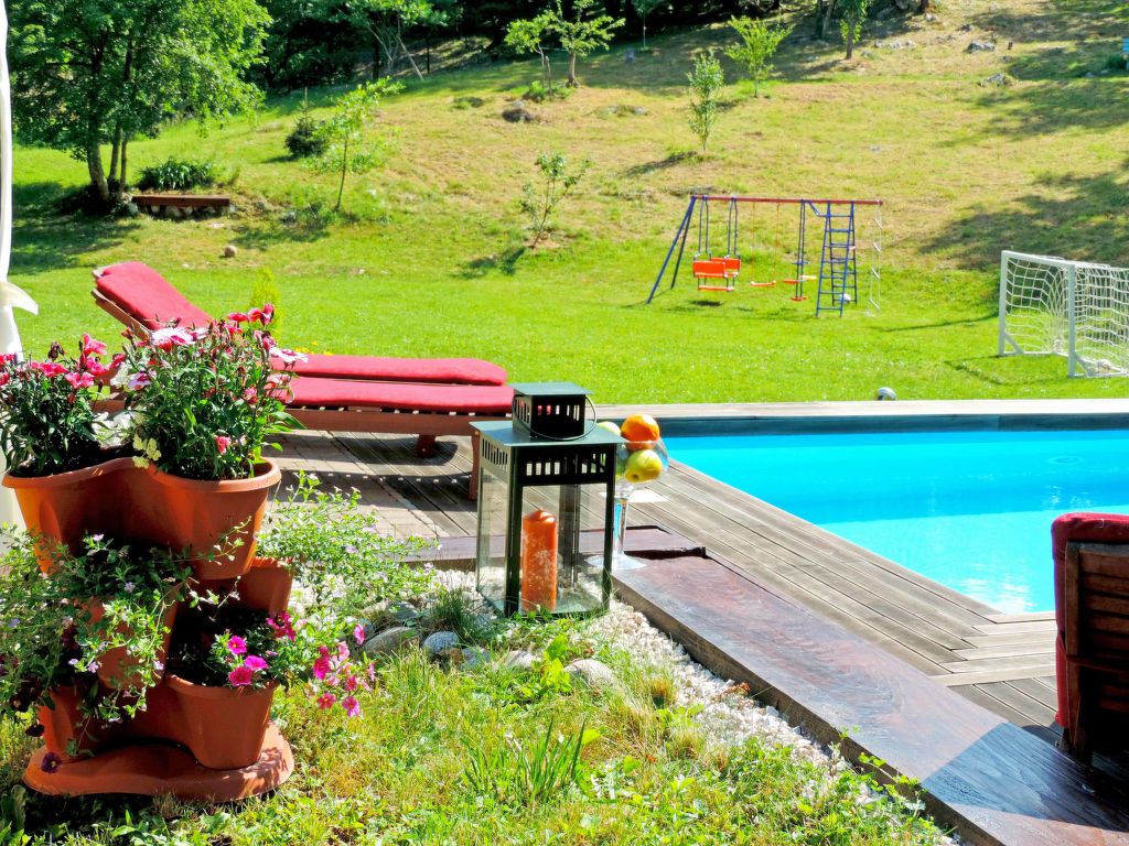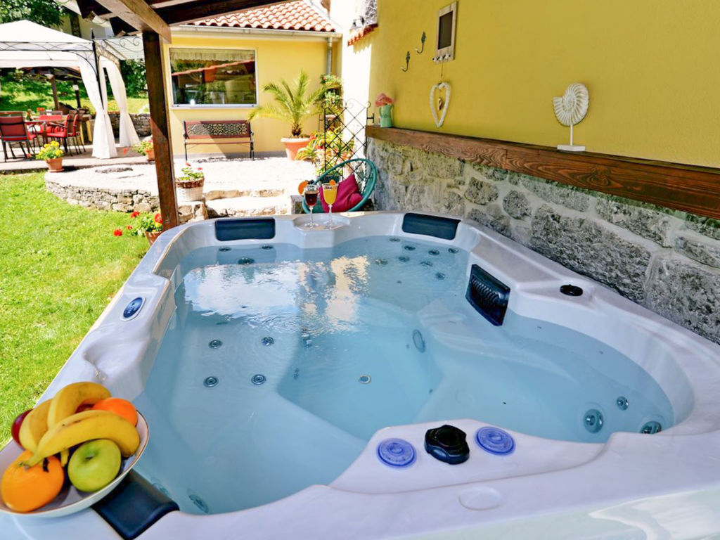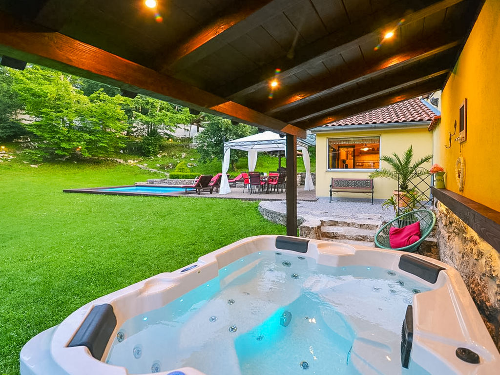 Jurdani: Einfamilienhaus "Škalniški", auf 2 Stockwerken, Baujahr 1896, renoviert im Jahre 2006. Im Weiler Škalniški mit 6 Häusern, 4 km vom Zentrum von Jurdani, 8.5 km vom Zentrum von Matulji, 12 km vom Zentrum von Opatija, ruhige Lage, 12 km vom Meer, in einer Sackgasse, im Grünen, im Wald. Zur Alleinbenutzung: Grundstück 1'000 m2, Rasen 250 m2, Bäumen, Schwimmbad eckig (6 x 4 m, 140 cm tief, 25.04.-10.10.). Sprudelbad, Laube, Terrasse (18 m2), Grill, Kinderspielplatz (Schaukel). Im Hause: Internetzugang, Waschmaschine. Zufahrt bis zum Haus (1.7 km Naturweg). Parkplatz (für 2 Autos, überdacht) beim Haus auf dem Grundstück. Einkaufsgeschäft 3.5 km, Restaurant 3 km, Kieselstrand 12 km, betonierter Strand 12 km. Bitte beachten: geeignet für Familien. Die Nachbarschaft ist sehr lärmempfindlich. Ruhe und gutes Benehmen wird erwartet. Das veranstalten von Partys ist nicht gestattet.