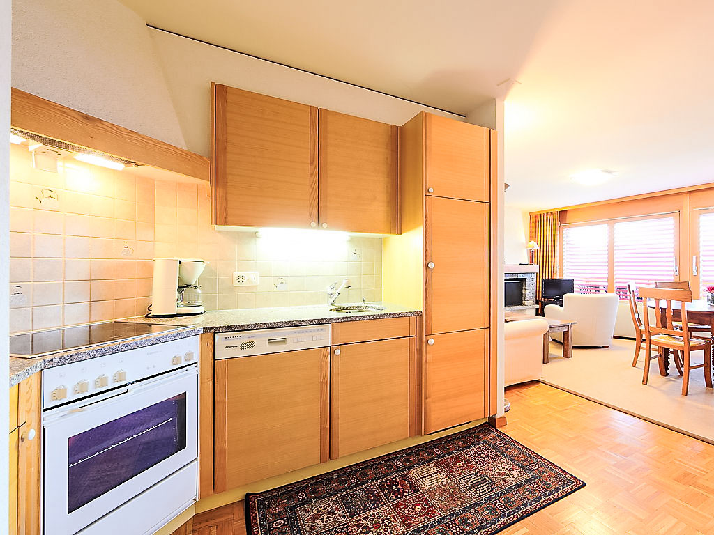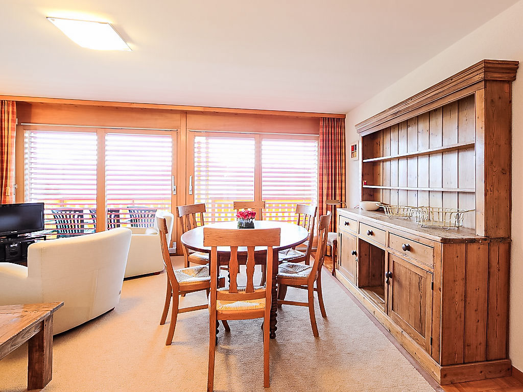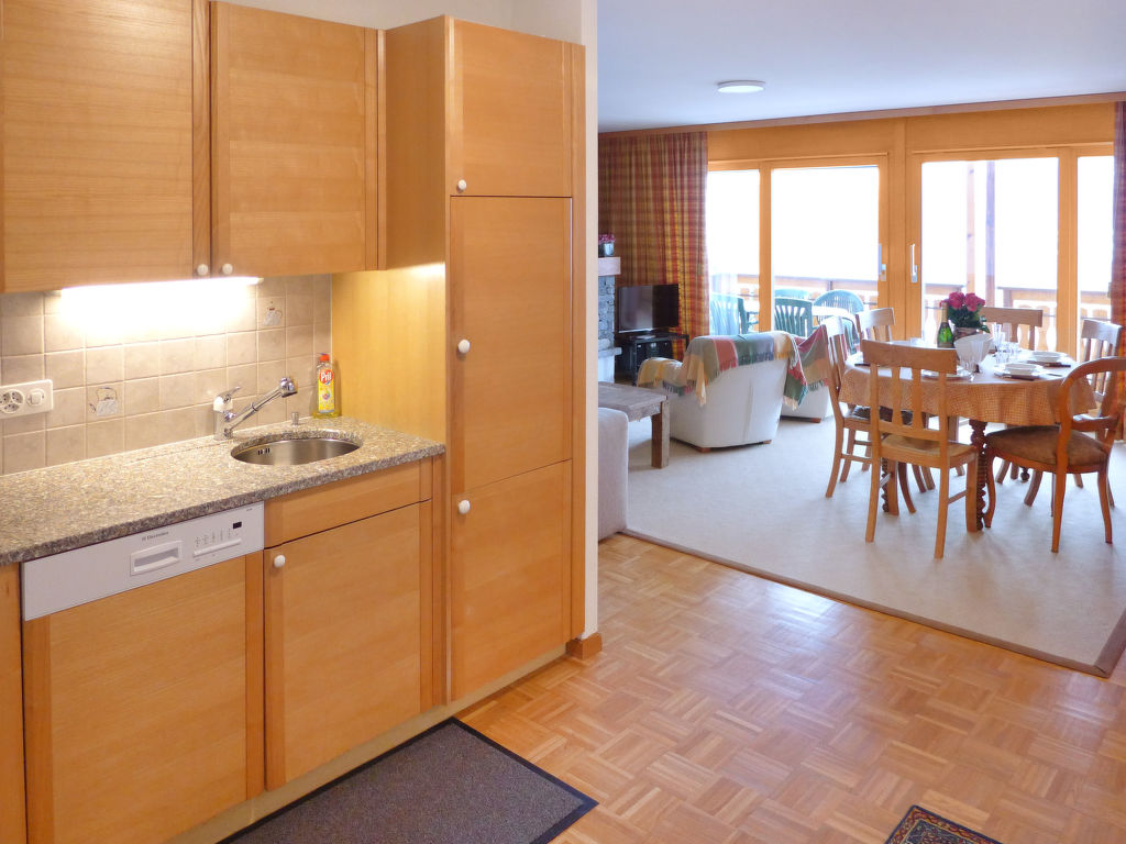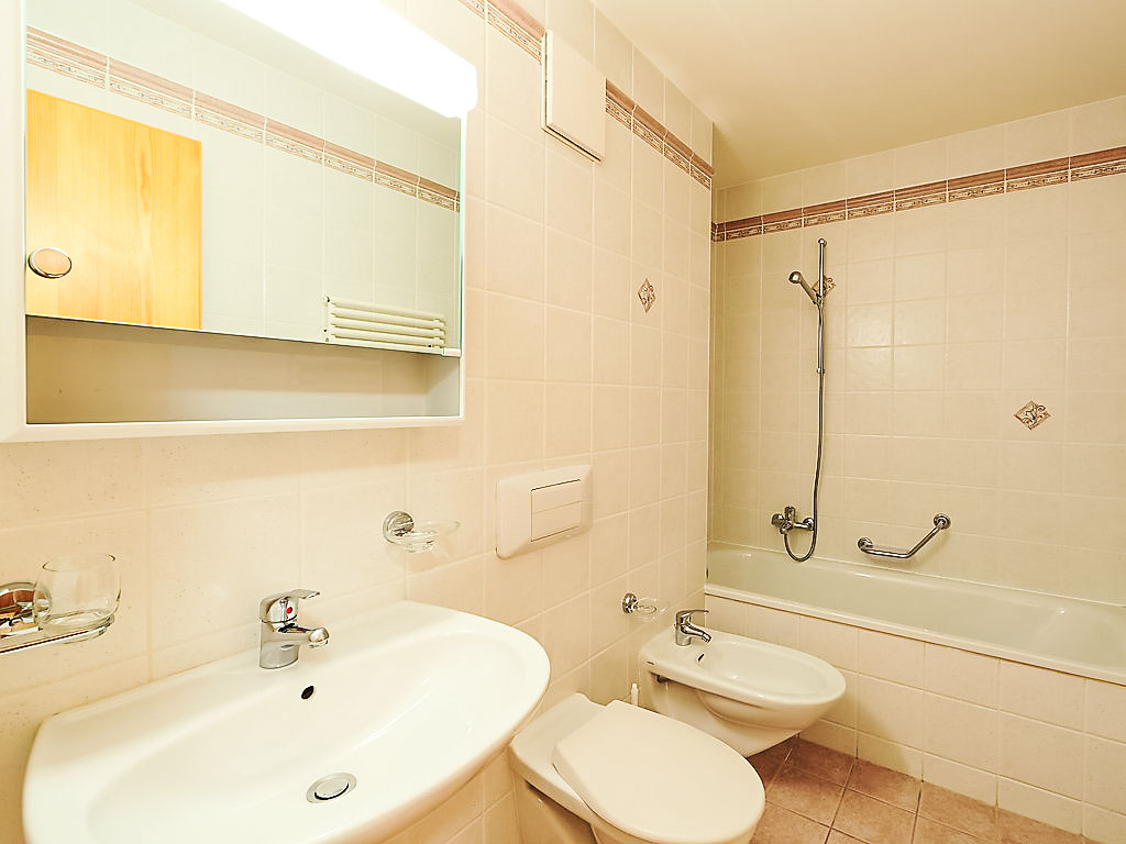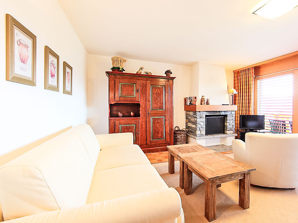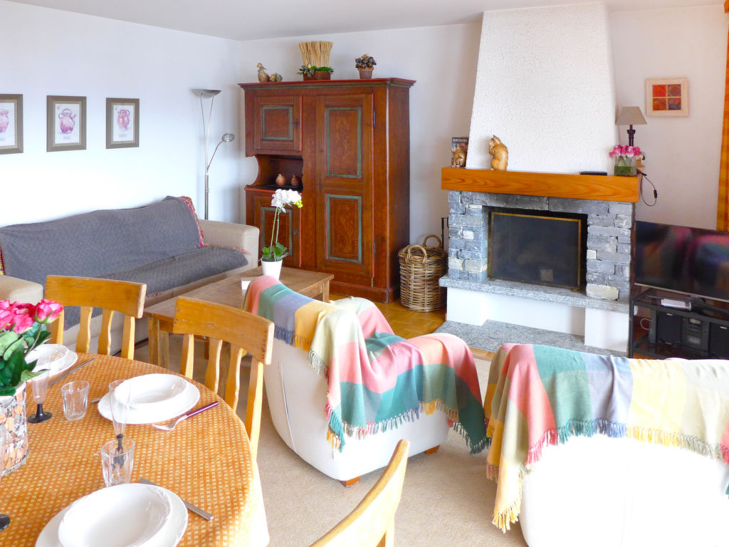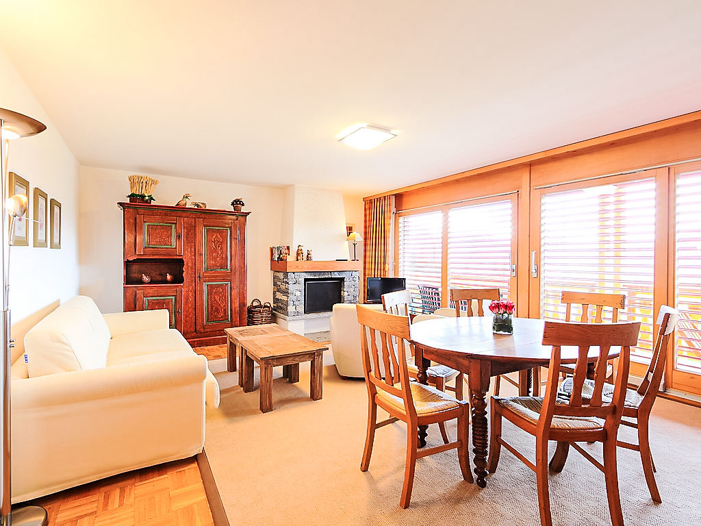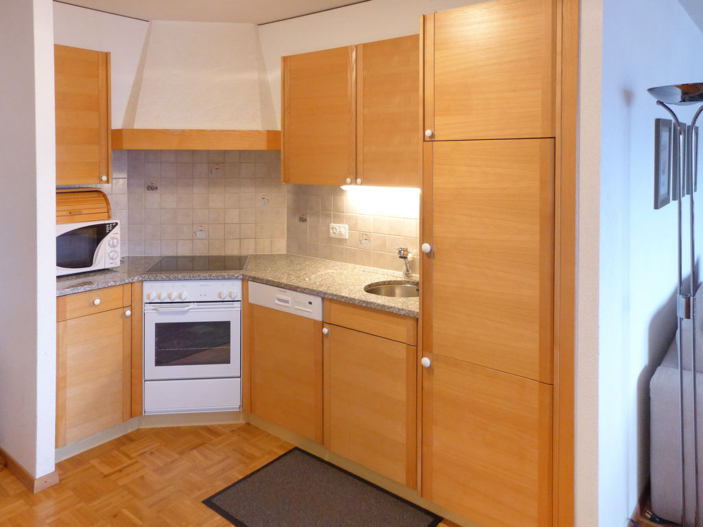 3-Zimmer-Wohnung 84 m2 im 1. Stock. Sehr komfortabel eingerichtet: grosses Wohn-/Esszimmer mit offenem Kamin und Kabel-TV (Flachbildschirm), Stereoanlage. 1 Zimmer mit 1 Doppelbett (2 x 90 cm, Länge 200 cm). 1 Zimmer mit 2 x 2 Etagenbetten (90 cm, Länge 200 cm). Kochnische (Backofen, Geschirrspüler, 4 Glaskeramikherd Platten, Toaster, Wasserkocher, Mikrowelle, Tiefkühler, elektrische Kaffeemaschine, Kapseln für die Kaffeemaschine (NESPRESSO), Fondue Set (Käse)). Bad/Bidet/WC, Dusche/WC. Terrasse 25 m2, Südlage. Terrassenmöbel. Herrliche Sicht auf die Berge und das Tal. Zur Verfügung: Haartrockner. Internet (Wireless LAN, gratis). Garage Nr. 5, Höhe 200 cm, Breite 220 cm. Bitte beachten: Nichtraucher-Unterkunft.