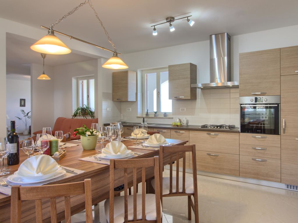 Einfamilienhaus "Marevista". Im Weiler Brovinje, 15 km vom Zentrum von Labin, sonnige, erhöhte Lage, 2 km vom Meer, 2 km vom Strand. Zur Alleinbenutzung: Grundstück 1'000 m2 (eingezäunt), Garten mit Rasen und Pflanzen, Schwimmbad (33 m2, 70 - 140 cm tief, 04.05.-26.10.) mit Innentreppe. Ungleichmässige Schwimmbadform, Aussendusche, Tischtennis, Grill, Kinderspielplatz (Schaukel). Im Hause: Internetzugang, Billard, Tischfussball, Waschmaschine. Parkplatz beim Haus auf dem Grundstück. Einkaufsgeschäft 2 km, Restaurant 2 km, Kieselstrand 2 km, Felsstrand 2 km. Surfschule 10 km, Tennis 18 km, Wanderwege ab Haus 50 m, Radweg 100 m. Der Eigentümer kann die Lieferung von vorbereiteten Gerichten, Lebensmitteln und anderen Haushaltsgegenständen arrangieren (auf Anfrage, gegen Aufpreis). Desinfektionsmittel sind in der Unterkunft erhältlich.