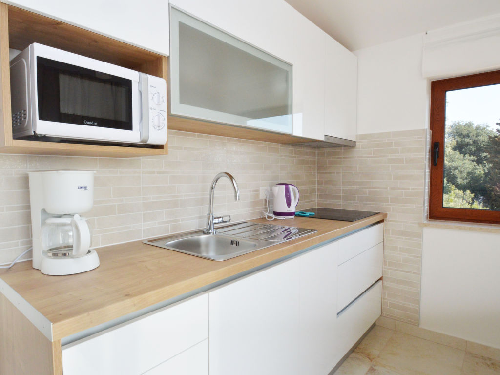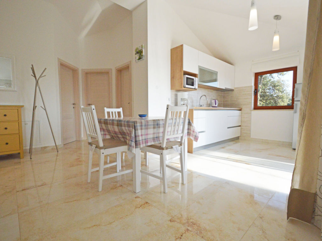 Savudrija 7 km von Umag: Mehrfamilienhaus "Elia". Sonnige Lage, 800 m vom Meer, 800 m vom Strand. Zur Mitbenutzung: Grundstück 600 m2 (eingezäunt), Schwimmbad eckig (7 x 3 m, 24 m2, 140 cm tief, saisonale Verfügbarkeit: 30.Mar.-19.Okt.) mit Innentreppe. Aussendusche, Terrasse (25 m2), Gartenmöbel, Grill. Im Hause: Internetzugang. Parkplatz beim Haus auf dem Grundstück. Einkaufsgeschäft 1.2 km, Restaurant 1.2 km, Steinstrand 1 km, Felsstrand 800 m. Golfplatz 1.5 km, Tennis 2 km, Wanderwege ab Haus 500 m.