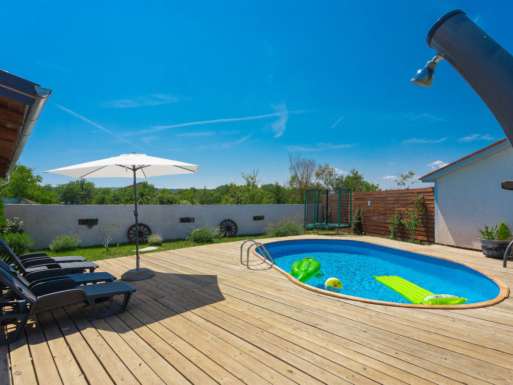 Salakovci 4 km von Labin: Schönes Doppelhaus "Stefanina", auf 2 Stockwerken, Baujahr 1930, renoviert im Jahre 2017. In einem Weiler mit 4 Häusern, ruhige, sonnige Lage, 7 km vom Meer. Zur Alleinbenutzung: Grundstück 150 m2 (eingezäunt), kleiner Garten mit Rasen, Schwimmbad (6 x 4 m, 120 cm tief, 01.06.-28.09.). Aussendusche, Grill, Kinderspielplatz (Rutschbahn, Schaukel). Im Hause: Internetzugang, Waschmaschine. Parkplatz (für 2 Autos) beim Haus auf dem Grundstück. Einkaufsgeschäft 6 km, Restaurant 5 km, Kieselstrand 7 km. Tennis 11 km, Wanderwege ab Haus 100 m, Radweg 150 m.