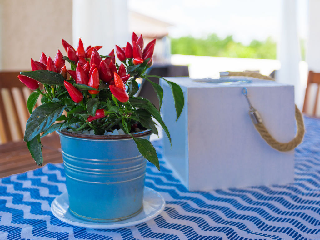 3-Zimmer-Doppelhaushälfte 82 m2 auf 2 Stockwerken. Wohn-/Esszimmer mit 1 Diwanbett (90 cm, Länge 200 cm), Sat-TV (Flachbildschirm), Klimaanlage. Ausgang zur Terrasse. Offene Küche (4 Kochplatten, Backofen, Geschirrspüler, Mikrowelle, Tiefkühler, elektrische Kaffeemaschine). Dusche/WC, Doppelwaschbecken. Obergeschoss: (Wendeltreppe) 1 abgeschrägtes Zimmer, Deckenhöhe 150 - 280 cm mit 2 Betten (80 cm, Länge 190 cm), Sat-TV (Flachbildschirm), Klimaanlage. Ausgang zur Terrasse. 1 Zimmer mit 2 Betten (80 cm, Länge 190 cm), Sat-TV (Flachbildschirm), Klimaanlage. Dusche/WC. Heizung (extra). Terrasse 28 m2, überdacht, Terrasse 10 m2. Terrassenmöbel, Liegestühle. Schöne Panoramasicht auf die Landschaft. Zur Verfügung: Safe, Kinderhochstuhl, Babybett, Haartrockner. Internet (Wireless LAN, gratis). 1 kleines Haustier/Hund erlaubt.