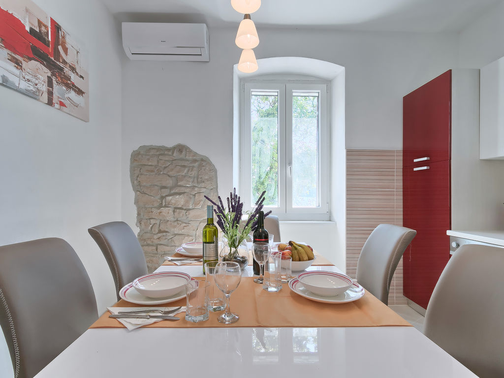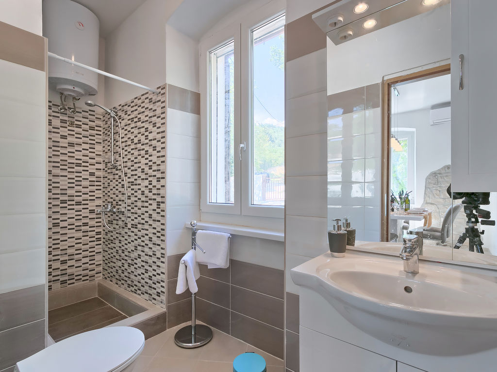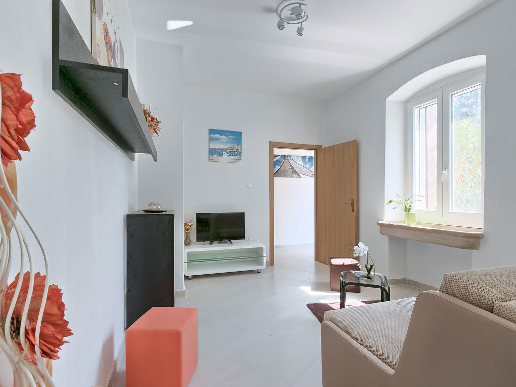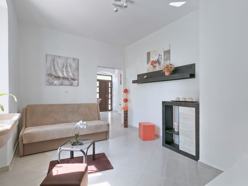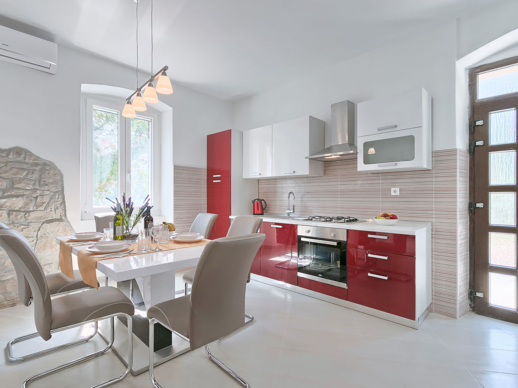 4-Zimmer-Haus 90 m2. Wohn-/Esszimmer mit 1 Doppeldiwanbett (140 cm, Länge 190 cm), Sat-TV (Flachbildschirm), Klimaanlage. Eingang mit Klimaanlage. 1 Zimmer mit 1 franz. Bett (180 cm, Länge 200 cm). 2 Zimmer, jedes Zimmer mit 1 franz. Bett (160 cm, Länge 200 cm). Offene Küche (4 Kochplatten, Backofen, Geschirrspüler, Tiefkühler, elektrische Kaffeemaschine). 2 Duschen/WC. Liegestühle. Schöne Sicht auf das Meer. Zur Verfügung: Safe, Kinderhochstuhl, Babybett, Haartrockner. Internet (Wireless LAN, gratis). 1 kleines Haustier/Hund erlaubt.