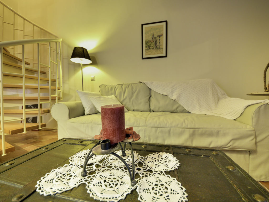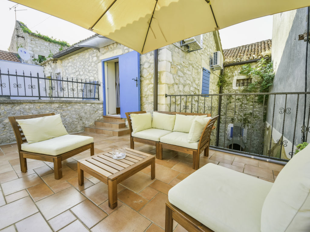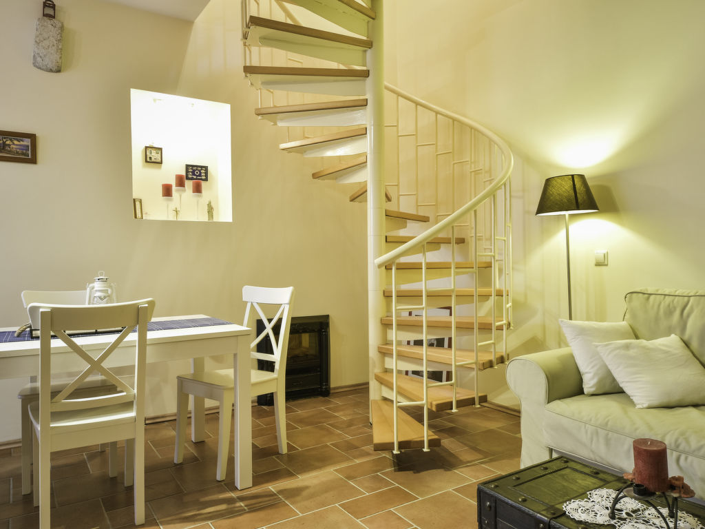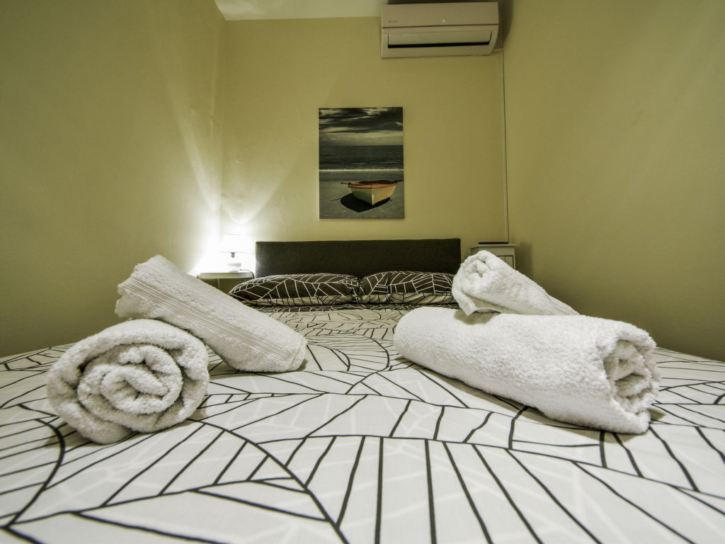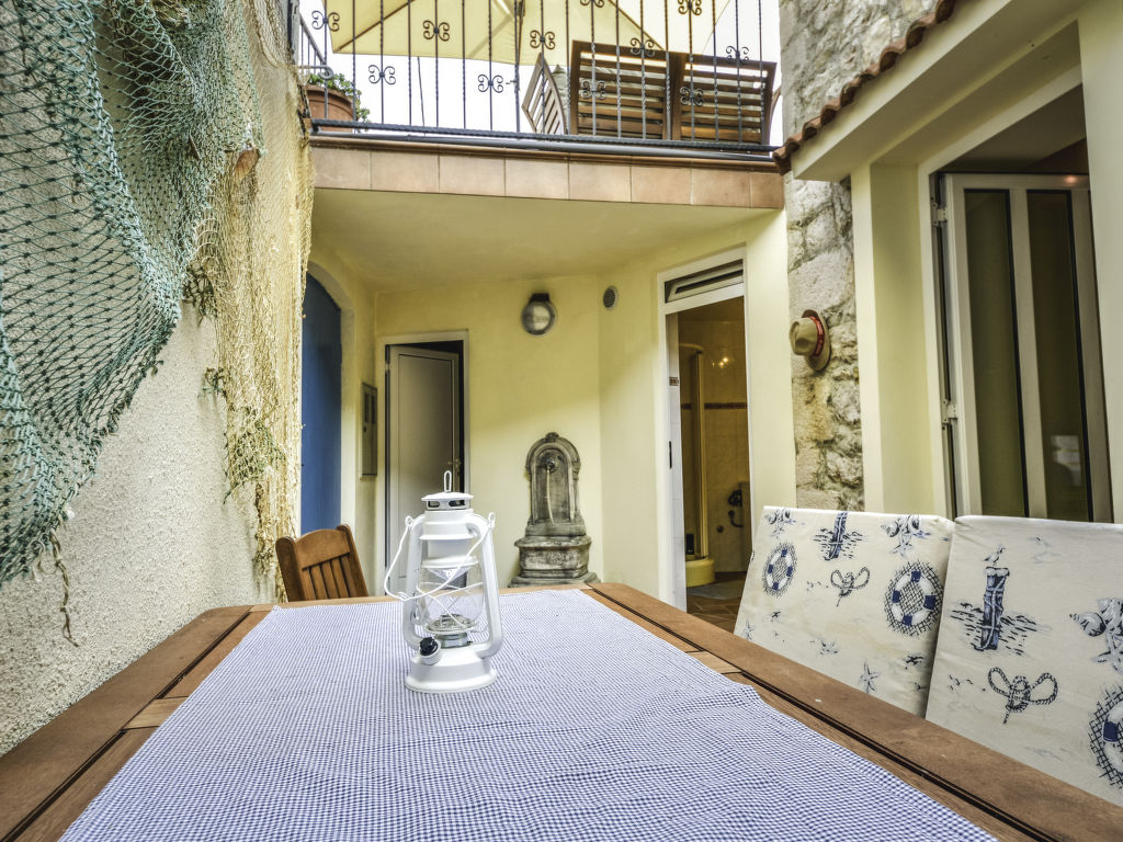 3-Zimmer-Doppelhaushälfte 50 m2 auf 2 Stockwerken, Südwestlage. Wohn-/Esszimmer 23 m2 mit 1 Doppeldiwanbett (140 cm, Länge 190 cm), Sat-TV (Flachbildschirm). Ausgang zur Terrasse. Offene Küche (4 Kochplatten, Backofen, Tiefkühler, elektrische Kaffeemaschine). Dusche/WC. Obergeschoss: (Wendeltreppe) 1 Zimmer mit 1 franz. Bett (140 cm, Länge 200 cm), Klimaanlage. 1 Zimmer mit 1 franz. Bett (160 cm, Länge 200 cm), Klimaanlage. Ausgang zur Terrasse. Sep. WC. Klimaanlage (extra). Terrasse 15 m2. Terrassenmöbel. Zur Verfügung: Haartrockner. Internet (Wireless LAN, gratis). Zugang zur Dusche/Toilette im Erdgeschoss nur von aussen, durch die Terasse.