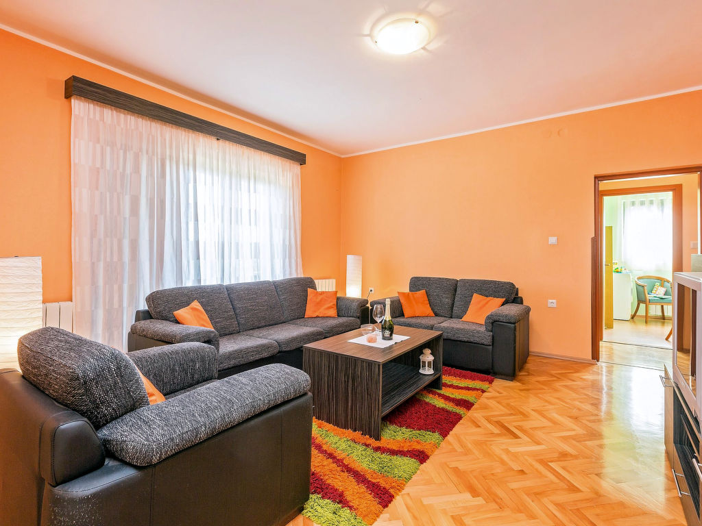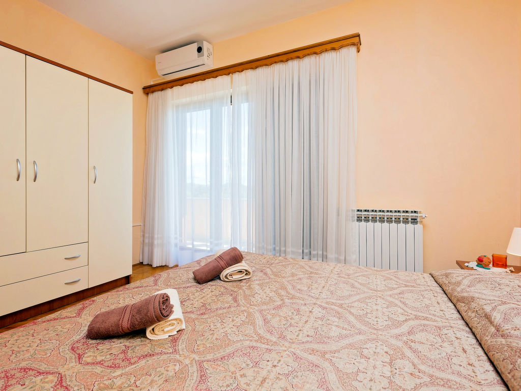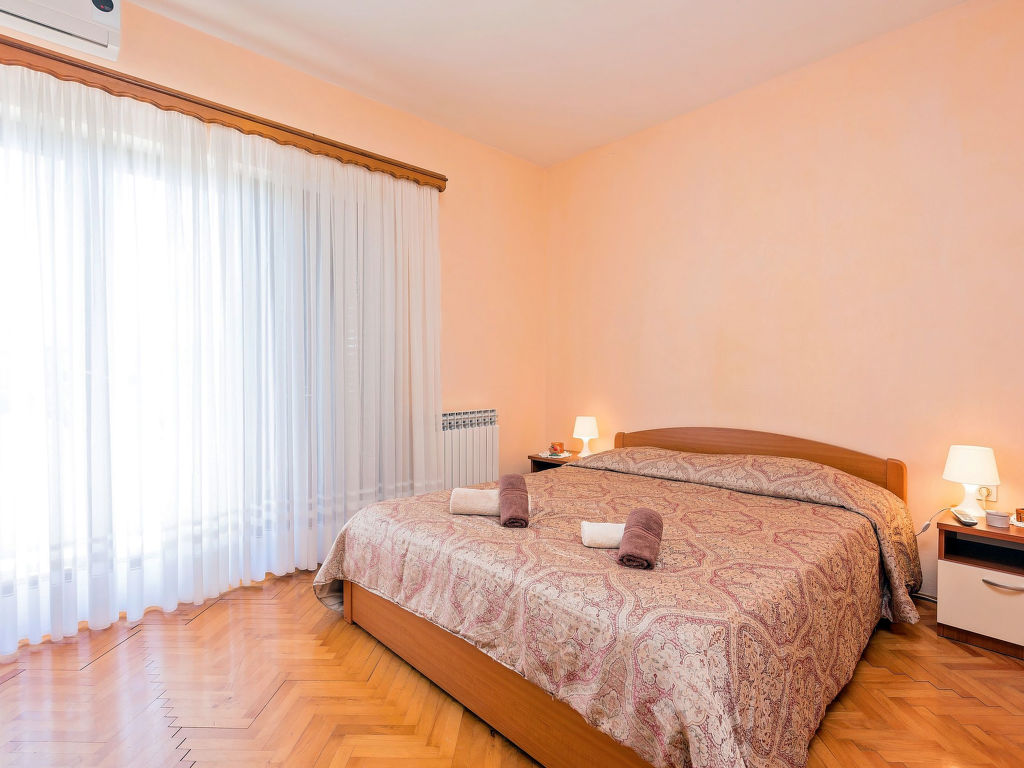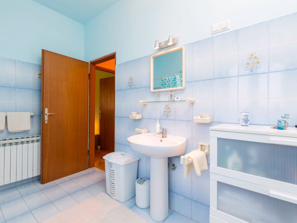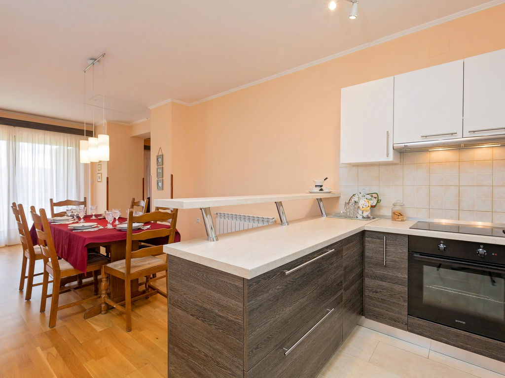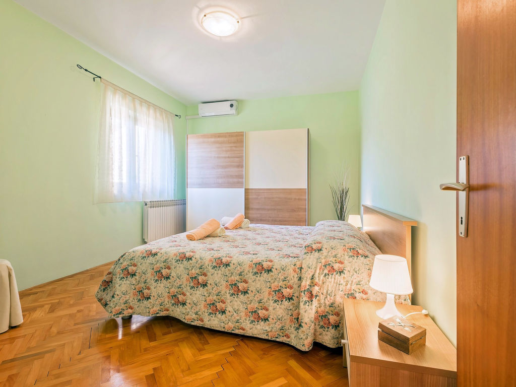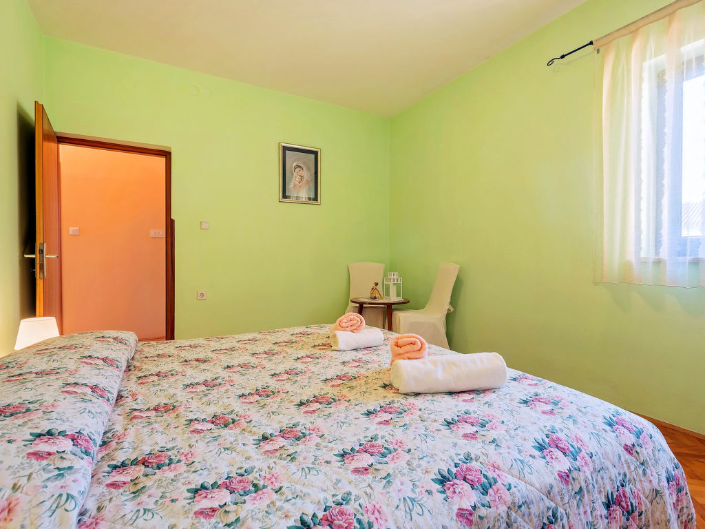 4-Zimmer-Wohnung 100 m2 im 1. Stock. Renoviert im Jahre 2017: Wohn-/Esszimmer mit 1 Diwanbett, Sat-TV und Klimaanlage. Ausgang zur Terrasse. 1 Zimmer mit 1 franz. Bett (180 cm, Länge 200 cm), Klimaanlage. Ausgang zur Terrasse. 1 Zimmer mit 1 franz. Bett (160 cm, Länge 200 cm), Klimaanlage. 1 Zimmer mit 1 Bett. Offene Küche (Backofen, Geschirrspüler, 4 Glaskeramikherd Platten, Toaster, Mikrowelle, Tiefkühler, elektrische Kaffeemaschine). Bad/Bidet/WC. Ölheizung, Klimaanlage, Warmluftheizung. Terrasse 30 m2. Terrassenmöbel. Zur Verfügung: Waschmaschine, Bügeleisen, Kinderhochstuhl, Babybett (extra). Internet (Wireless LAN, gratis). Bitte beachten: Nichtraucher-Haus. Maximal 1 Haustier/Hund erlaubt. Eigener Eingang.