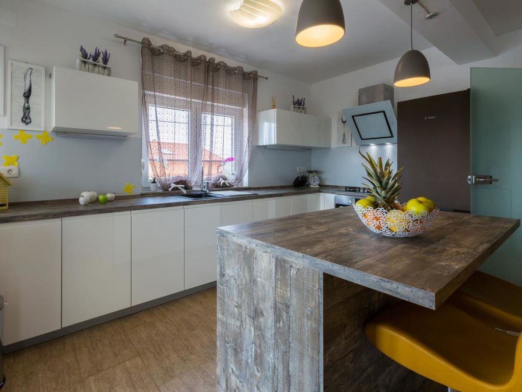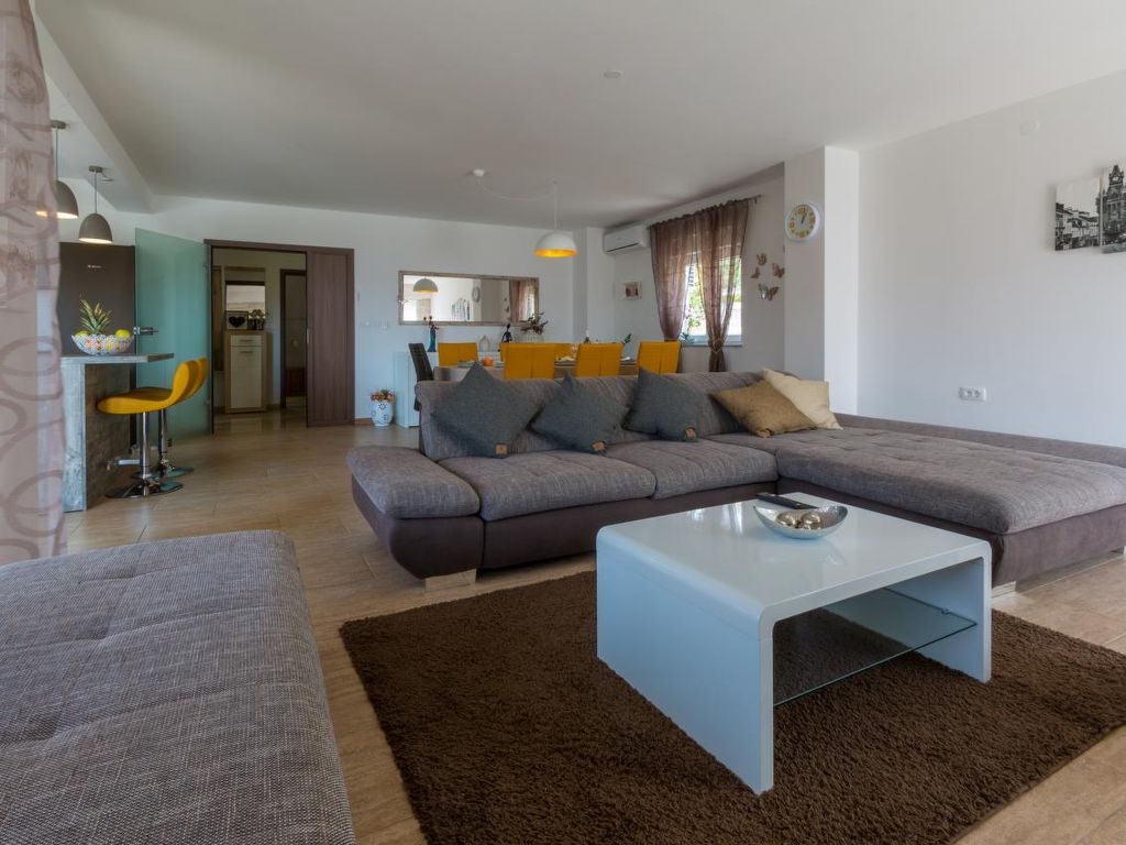 Neue, moderne, komfortable Villa "Kuca Ujdenica". Hausausstattung: Klimaanlage, Waschmaschine (zur Alleinbenutzung). Zufahrt & Parkmöglichkeiten: Parkplatz beim Haus, reservierter Parkplatz. Ganzjährig Zufahrt bis zum Haus möglich. Lage: im Ortsteil Grižane, ausserhalb von Crikvenica, ruhige Lage. Aussicht von der Wohnung auf die Ortschaft. Umgebung des Hauses: Grundstück (zur Alleinbenutzung, eingezäunt), Swimming Pool (zur Alleinbenutzung, Länge 7 m x Breite 4 m), Aussendusche (zur Alleinbenutzung), Tischtennis (zur Alleinbenutzung), Grill (zur Alleinbenutzung). Infrastruktur und Distanzen: Einkaufsgeschäft 4.5 km, Restaurant 4.5 km, Steinstrand 4.9 km, Sandstrand 5.3 km, Kieselstrand 5.4 km, Felsstrand 5.5 km, Tennis 5.5 km. Bitte beachten, in der Nähe befindet sich eine Autobahn in 25 km und ein Flughafen/Flugplatz in 30 km.