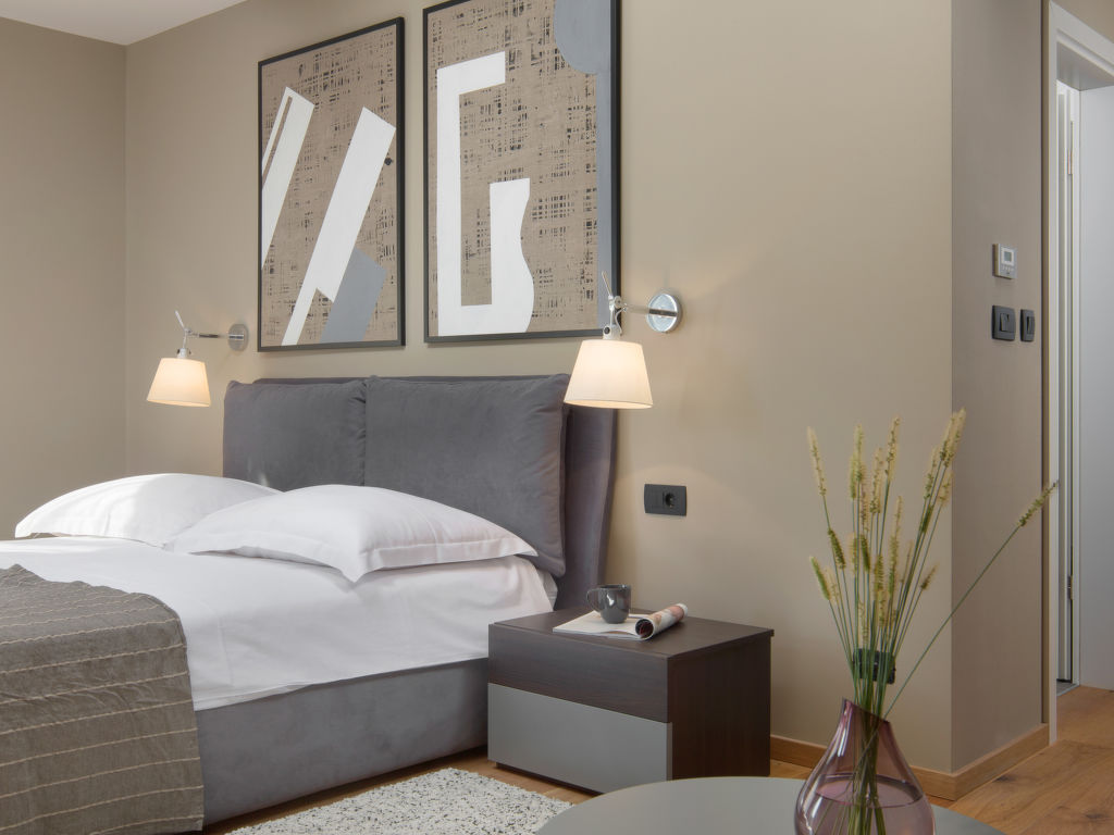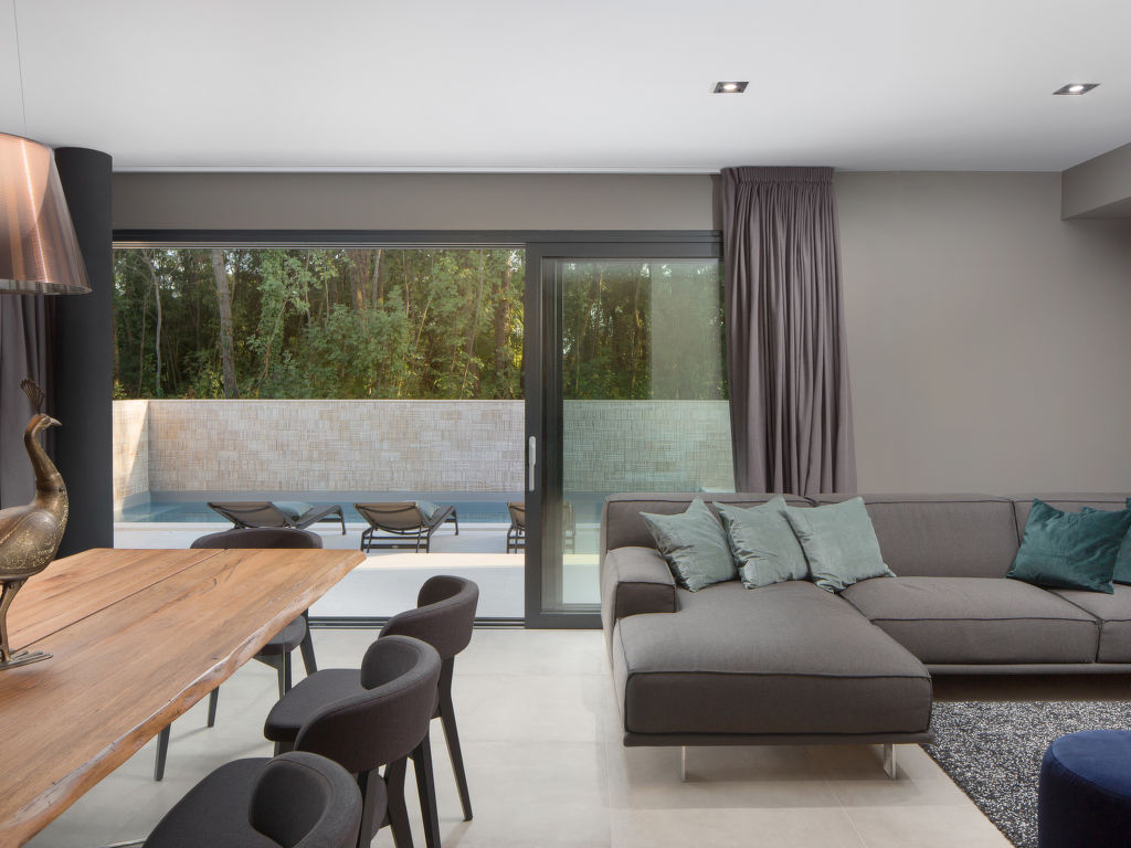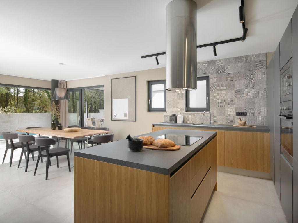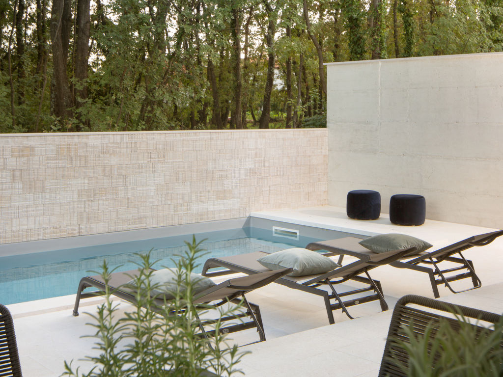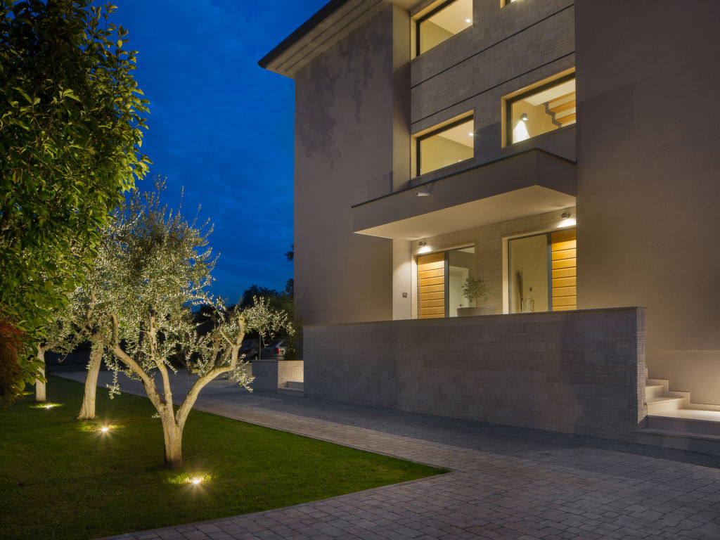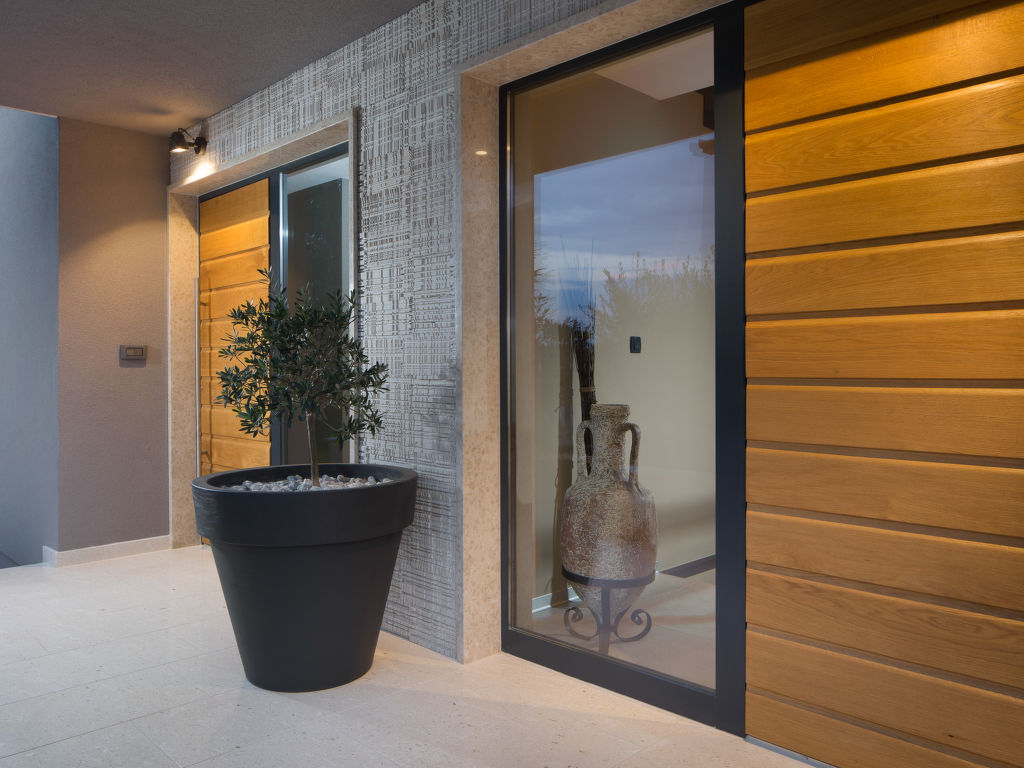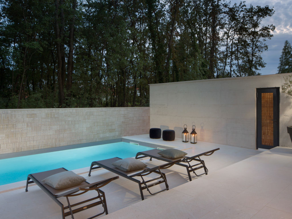 Moderne Villa "Oliva", auf 4 Stockwerken, Baujahr 2017. Im Weiler Križine, 4 km vom Zentrum von Umag, ruhige, sonnige Lage, 200 m vom Meer, 200 m vom Strand. Zur Mitbenutzung: Grundstück 2'000 m2 (eingezäunt), schöner Garten mit Rasen und Pflanzen. Zur Alleinbenutzung: Grundstück 200 m2 (eingezäunt), 2 Schwimmbäder eckig, beheizt (8 x 4 m, 140 cm tief, 01.01.-31.12.) mit Innentreppe. Aussendusche, Kinderspielplatz (Rutschbahn, Schaukel). Im Hause: Internetzugang, Billard, Tischfussball, Zentralheizung, Waschmaschine, Wäschetrockner. Parkplatz (für 4 Autos) beim Haus auf dem Grundstück. Einkaufsgeschäft 300 m, Supermarkt 3 km, Restaurant 300 m, Kieselstrand, Felsstrand 200 m. Golfplatz 10 km, Tennis 4 km, Reitstall 5 km, Wanderwege ab Haus 100 m, Radweg 150 m. Keine Vermietung an Jugendgruppen. Die Anlage besteht aus zwei Häusern welche nur zusammen vermietet werden. Schwimmbad beheizt (extra).
