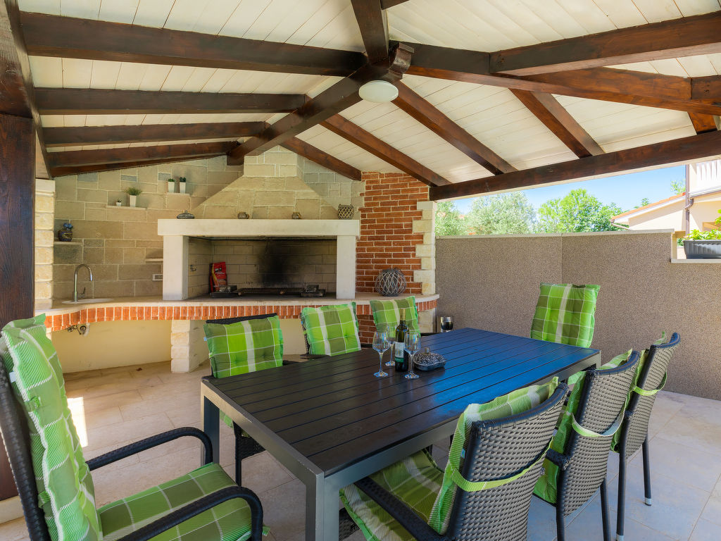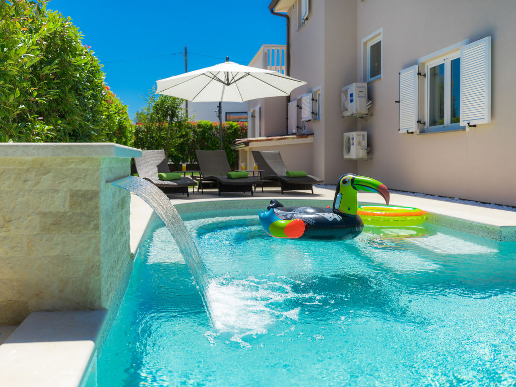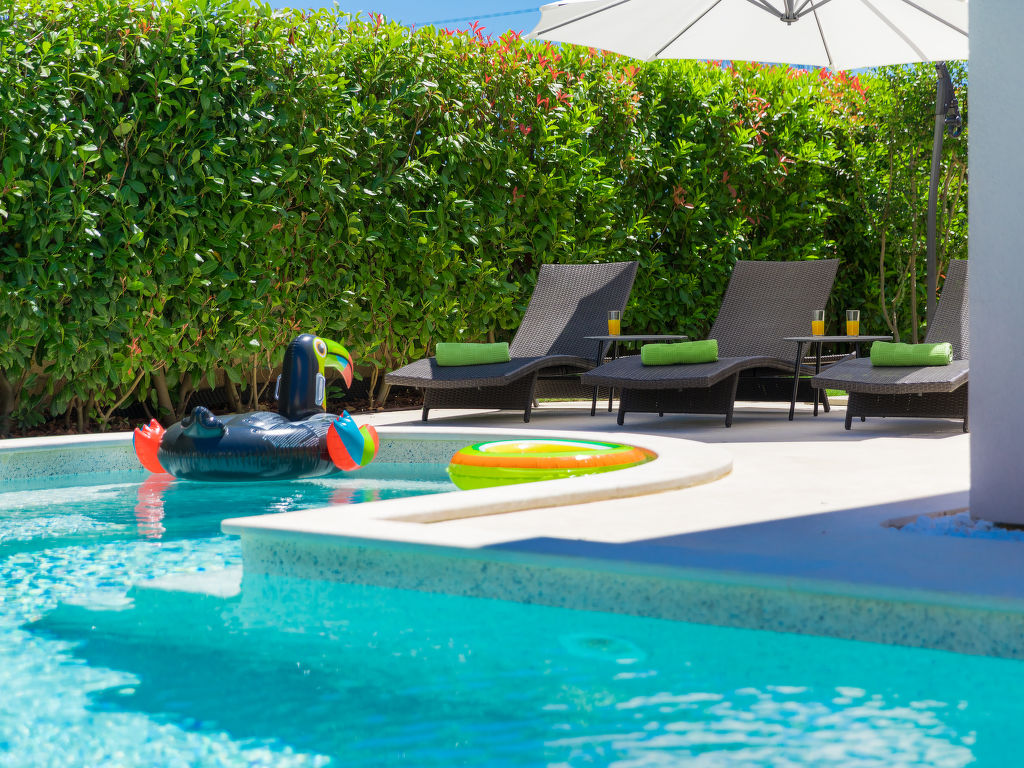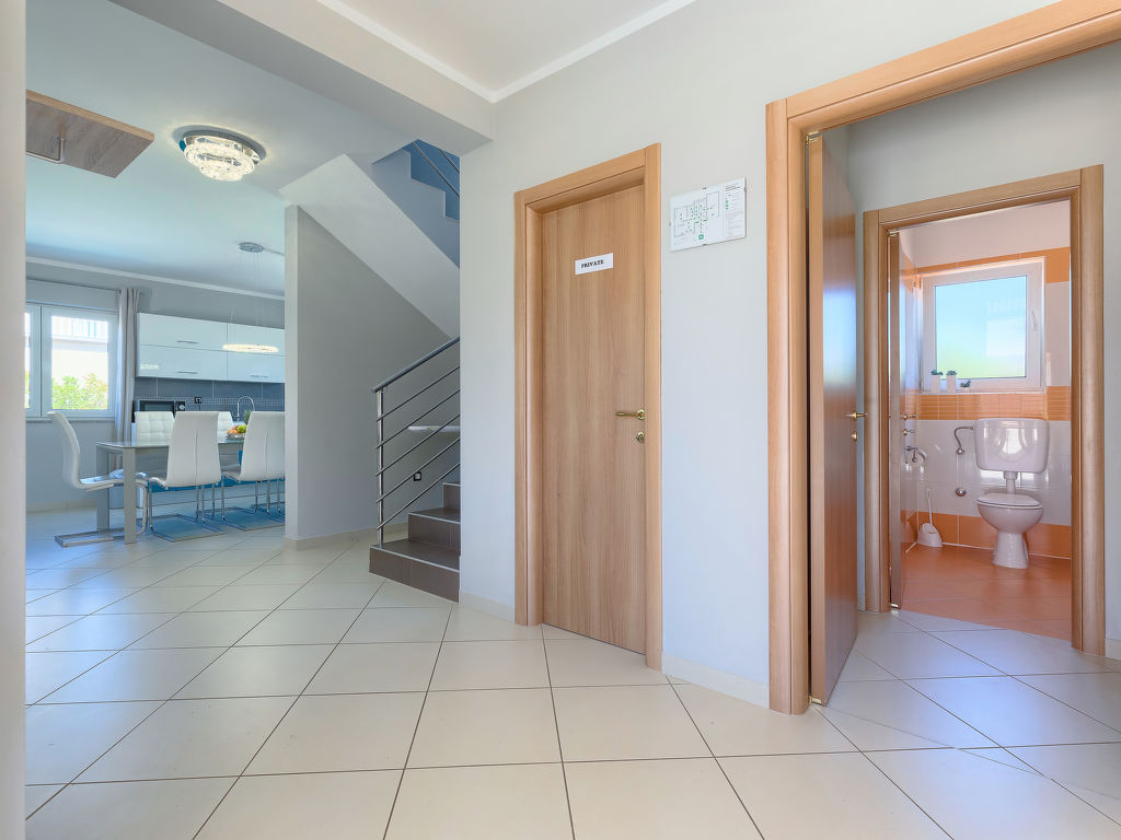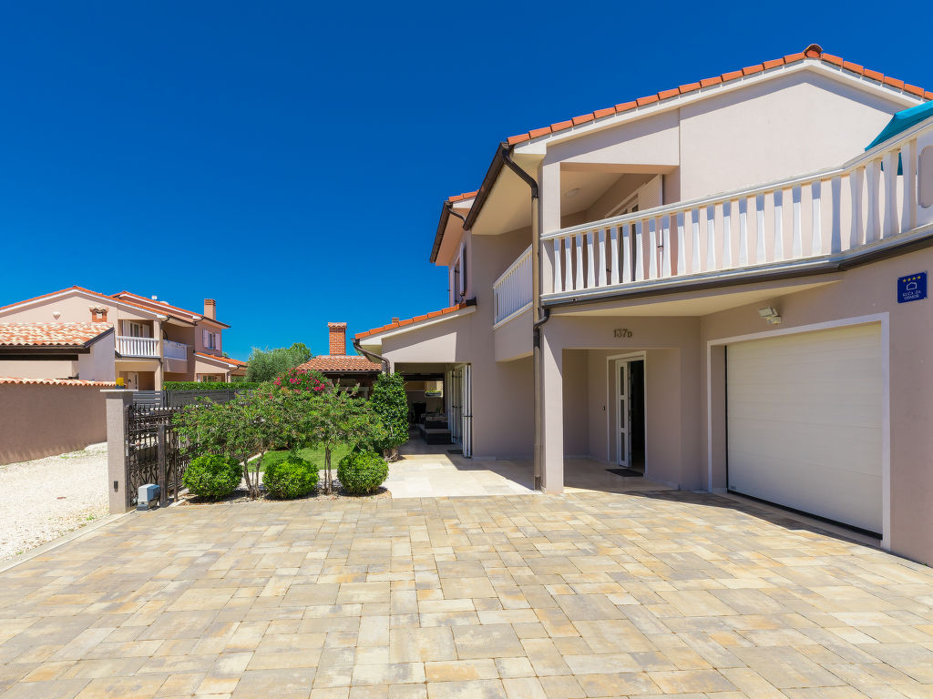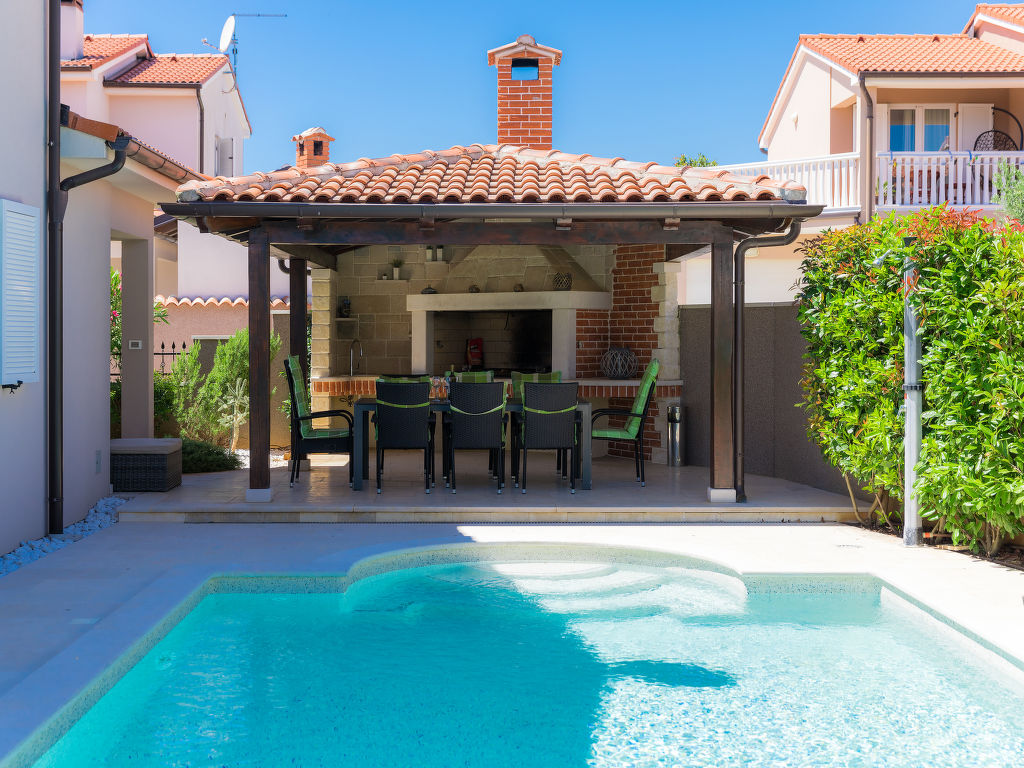 Schönes Einfamilienhaus "Villa Valentina", auf 2 Stockwerken. Im Weiler Loborika, 6 km vom Zentrum von Pula, ruhige, sonnige Lage, 7 km vom Meer, 8 km vom Strand. Zur Alleinbenutzung: Grundstück 400 m2 (eingezäunt), kleiner Garten mit Rasen und Pflanzen, Schwimmbad (32 m2, 135 cm tief, 02.05.-26.09.) mit Innentreppe. Ungleichmässige Schwimmbadform, Aussendusche, Terrasse (20 m2), Gartenmöbel, Grill. Im Hause: Internetzugang, Waschmaschine, Wäschetrockner. Parkplatz beim Haus auf dem Grundstück, Einzelgarage. Einkaufsgeschäft 250 m, Restaurant 350 m, Sandstrand 11 km, Kieselstrand 8 km. Surfschule 13 km, Tennis 11 km, Reitstall 13 km, Wanderwege ab Haus 100 m, Radweg 150 m. Nahe gelegene Sehenswürdigkeiten: Amphitheater 7 km. Schwimmbad mit Hydromassage. Keine Vermietung an Jugendgruppen.
