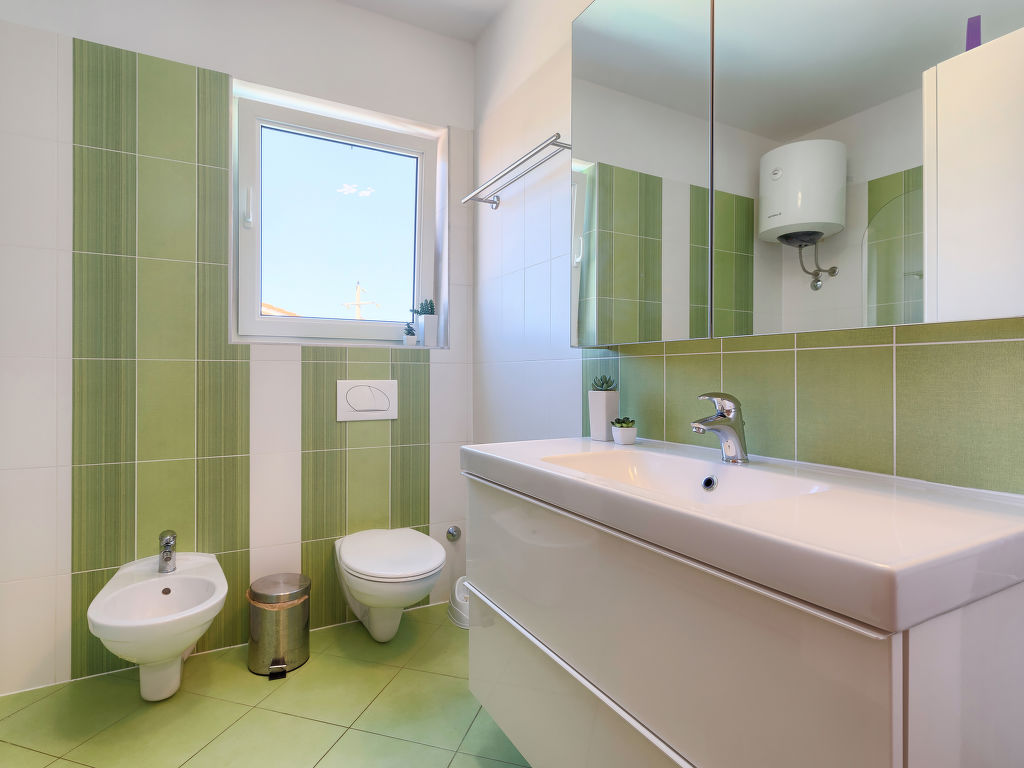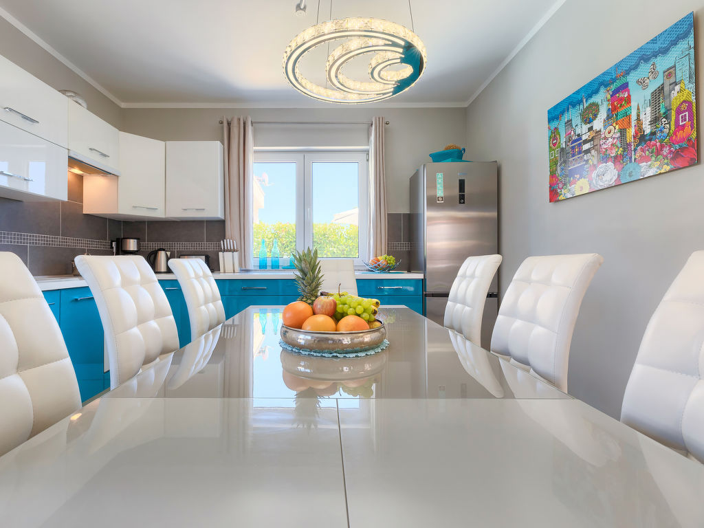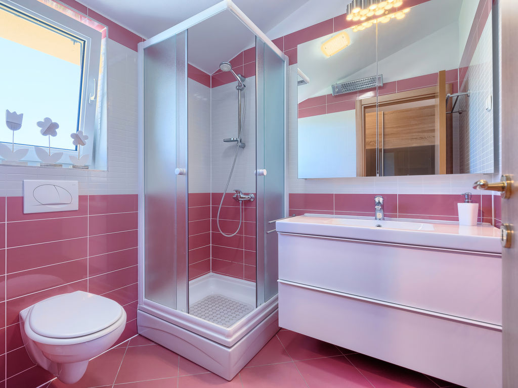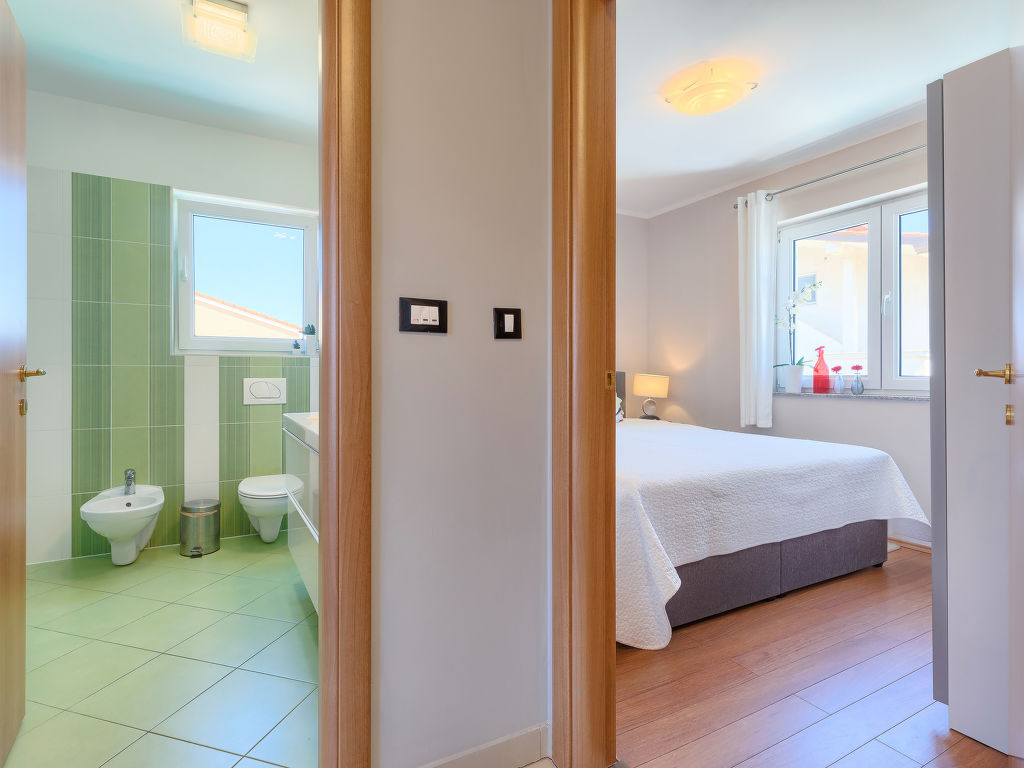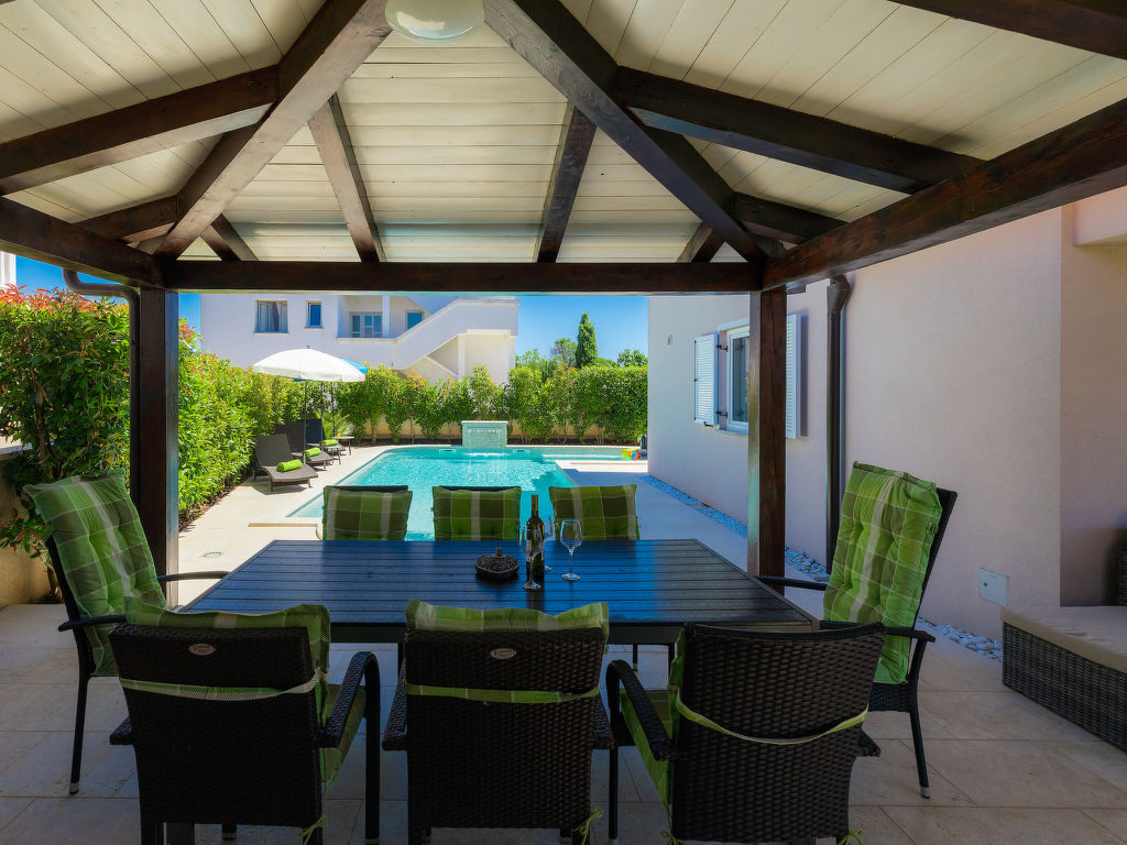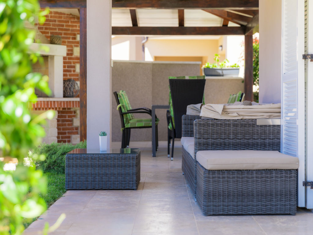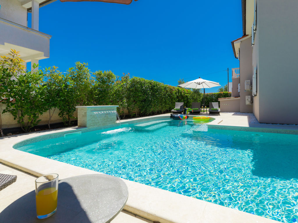Schönes Einfamilienhaus "Villa Valentina", auf 2 Stockwerken. Im Weiler Loborika, 6 km vom Zentrum von Pula, ruhige, sonnige Lage, 7 km vom Meer, 8 km vom Strand. Zur Alleinbenutzung: Grundstück 400 m2 (eingezäunt), kleiner Garten mit Rasen und Pflanzen, Schwimmbad (32 m2, 135 cm tief, 02.05.-26.09.) mit Innentreppe. Ungleichmässige Schwimmbadform, Aussendusche, Terrasse (20 m2), Gartenmöbel, Grill. Im Hause: Internetzugang, Waschmaschine, Wäschetrockner. Parkplatz beim Haus auf dem Grundstück, Einzelgarage. Einkaufsgeschäft 250 m, Restaurant 350 m, Sandstrand 11 km, Kieselstrand 8 km. Surfschule 13 km, Tennis 11 km, Reitstall 13 km, Wanderwege ab Haus 100 m, Radweg 150 m. Nahe gelegene Sehenswürdigkeiten: Amphitheater 7 km. Schwimmbad mit Hydromassage. Keine Vermietung an Jugendgruppen.