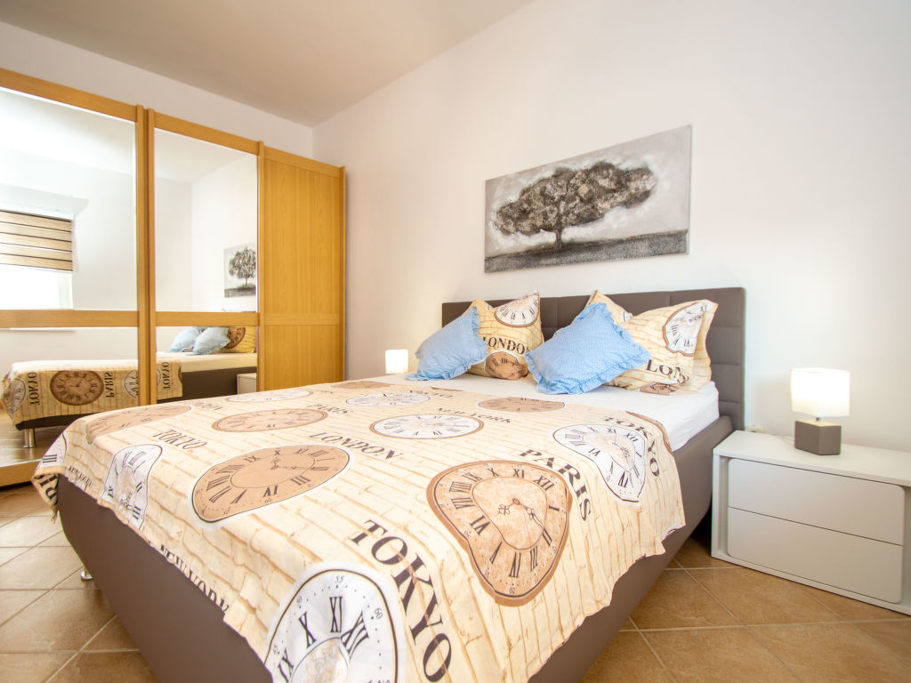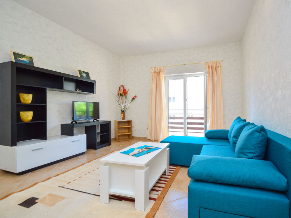 3-Zimmer-Wohnung 60 m2 im 1. Stock, Südwestlage. Wohn-/Esszimmer mit Sat-TV (Flachbildschirm). Ausgang zum Balkon. Eingang mit Klimaanlage. 1 Zimmer 20 m2 mit 1 Doppelbett (2 x 90 cm, Länge 190 cm). Ausgang zum Balkon. 1 Zimmer mit 1 Doppelbett (2 x 90 cm, Länge 200 cm). Offene Küche (Backofen, 4 Glaskeramikherd Platten, Mikrowelle, Tiefkühler, elektrische Kaffeemaschine). Bad/WC. Balkon 10 m2. Balkonmöbel. Zur Verfügung: Internet (Wireless LAN, gratis). Parkplatz (eingezäunt).