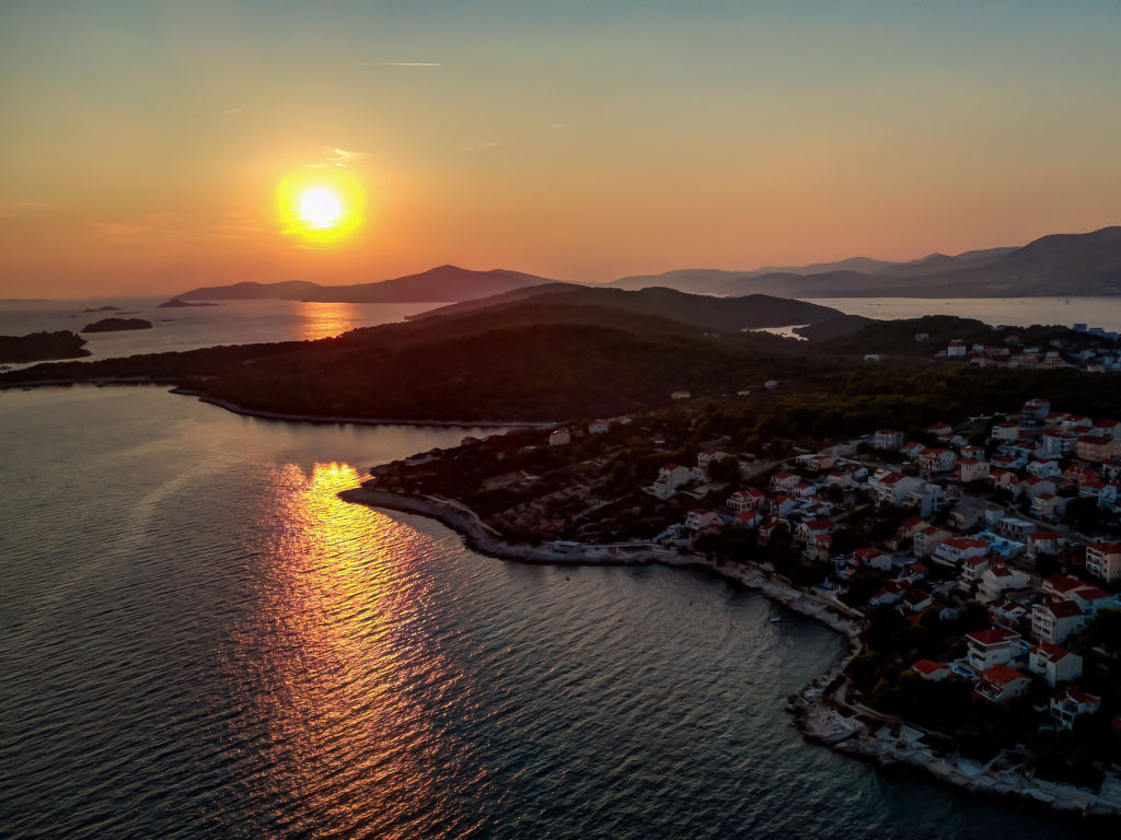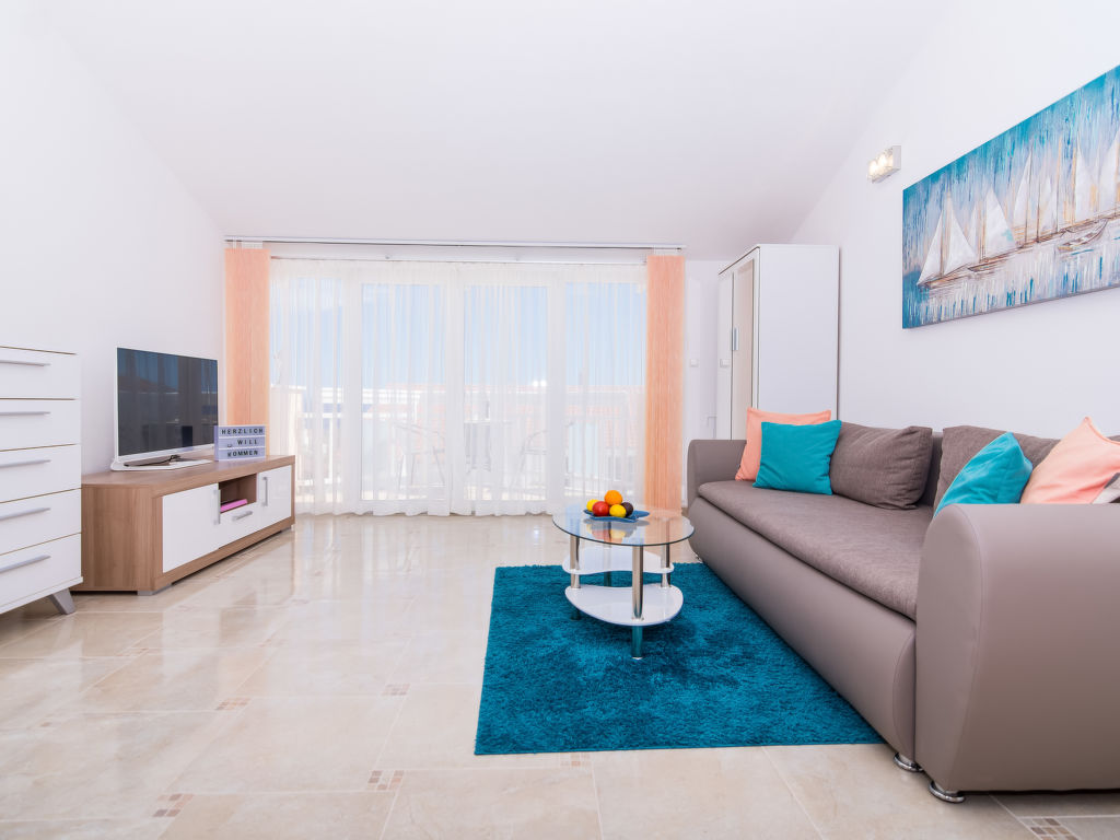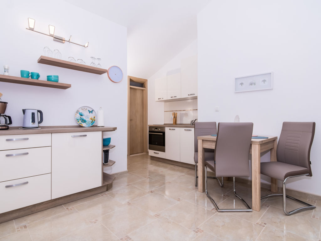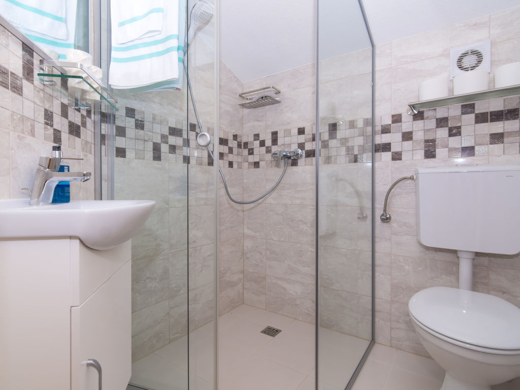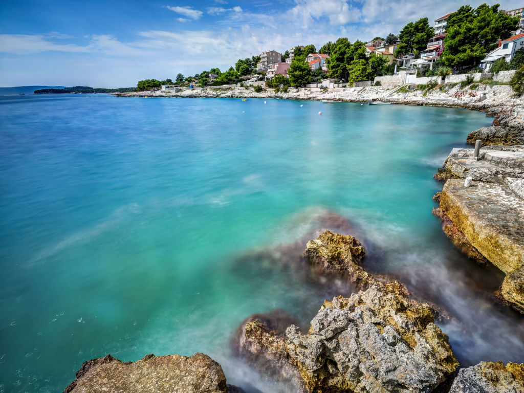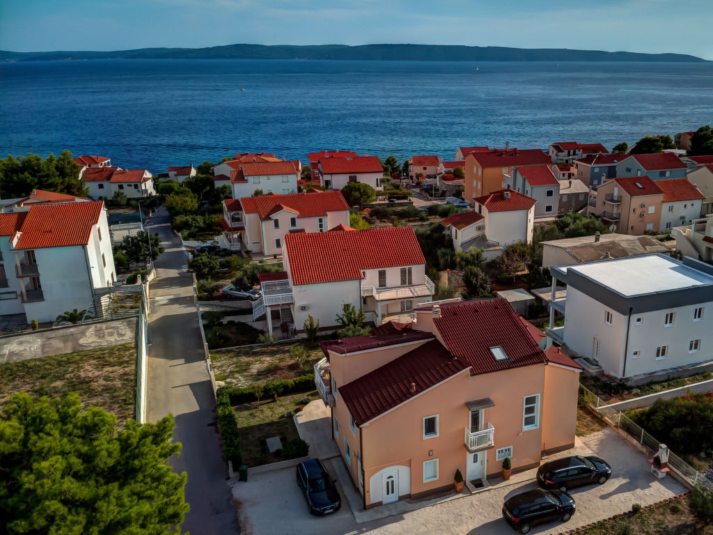 Okrug Gornji (Čiovo) 6 km von Trogir: Schönes Mehrfamilienhaus "Villa Nikaroni". 1.5 km vom Zentrum von Okrug Gornji, ruhige, sonnige Lage, 250 m vom Meer, 250 m vom Strand. Zur Mitbenutzung: Grundstück 1'000 m2, Garten mit Rasen. Grill. Im Hause: Internetzugang. Parkplatz beim Haus auf dem Grundstück. Einkaufsgeschäft, Restaurant 650 m, Felsstrand 250 m.