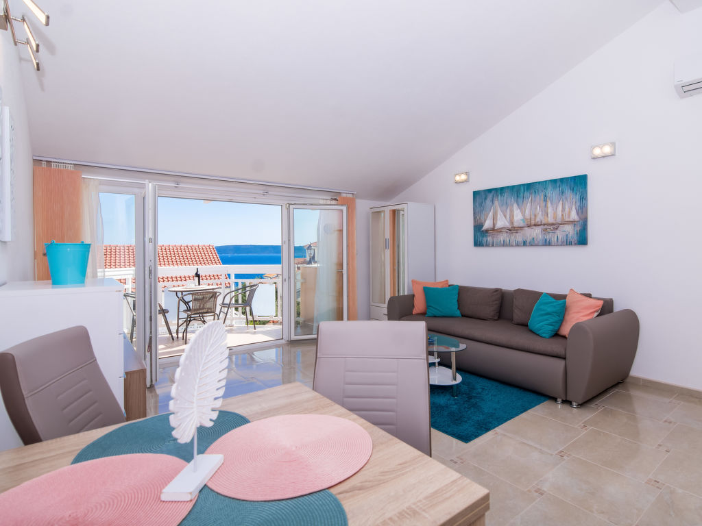 2-Zimmer-Wohnung 35 m2 im 2. Stock, Südlage. Schön und gemütlich eingerichtet: Wohn-/Esszimmer mit 1 Diwanbett (150 cm, Länge 200 cm), Sat-TV (Flachbildschirm), Klimaanlage. Ausgang zum Balkon. 1 abgeschrägtes Zimmer, Deckenhöhe 170 - 230 cm mit Dachfenster mit 2 Betten (90 cm, Länge 200 cm). Offene Küche (Backofen, 2 Glaskeramikherd Platten, elektrische Kaffeemaschine). Dusche/WC. Balkon 5 m2. Balkonmöbel. Zur Verfügung: Haartrockner. Internet (Wireless LAN, gratis).