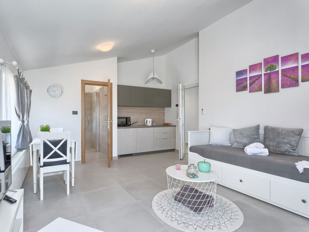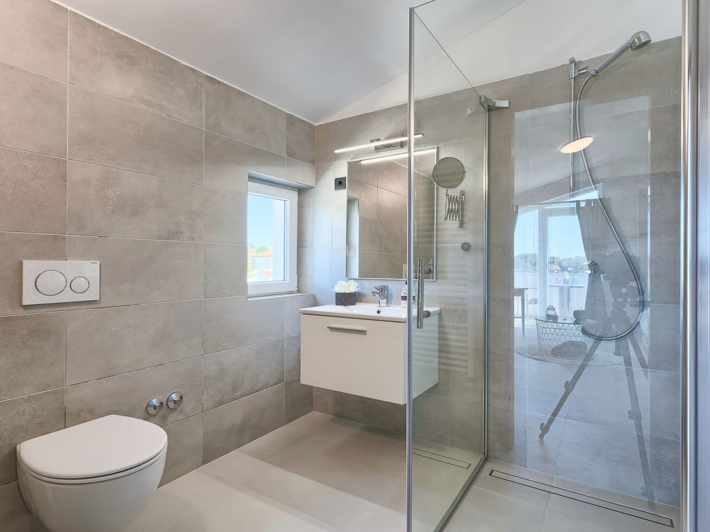 Schönes Mehrfamilienhaus "La Mer". Im Ortsteil Veli Vrh, 3 km vom Zentrum von Pula, sonnige Lage, 3 km vom Meer, in einer Sackgasse. Zur Mitbenutzung: Grundstück 2'000 m2 (eingezäunt), Garten 300 m2 mit Rasen und Pflanzen, Hallenbad eckig beheizt (6 x 5 m, 140 cm tief, saisonale Verfügbarkeit: 01.Jan.-31.Dez.) mit Innentreppe. Tischtennis, Terrasse (40 m2), Gartenmöbel, Grill, Kinderspielplatz (Rutschbahn). Im Hause: Internetzugang, Sauna (extra). Sprudelbad, Ruheraum, Wellnessbereich, Tischfussball, Zentralheizung. Parkplatz beim Haus auf dem Grundstück. Einkaufsgeschäft 1 km, Supermarkt 2.5 km, Restaurant 1 km, Kieselstrand 4.5 km, Felsstrand 4.5 km. Tennis 5 km, Wanderwege ab Haus 200 m, Radweg 250 m. Nahe gelegene Sehenswürdigkeiten: Amphitheater 3 km, NP Brijuni 6 km. Schwimmbad mit Gegenstromanlage. Zur Mitbenutzung (enthalten): Terrasse (50 m2), Fussballplatz, Tischfussball, Flipper, Darts. Sauna, Massage (auf Anfrage, alles extra).
