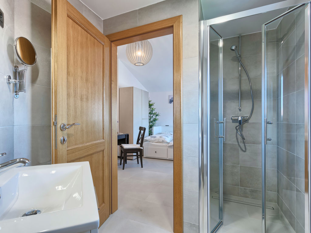 Schönes Mehrfamilienhaus "La Mer". Im Ortsteil Veli Vrh, 3 km vom Zentrum von Pula, sonnige Lage, 3 km vom Meer, in einer Sackgasse. Zur Mitbenutzung: Grundstück 2'000 m2 (eingezäunt), Garten 300 m2 mit Rasen und Pflanzen, Hallenbad eckig beheizt (6 x 5 m, 140 cm tief, saisonale Verfügbarkeit: 01.Jan.-31.Dez.) mit Innentreppe. Tischtennis, Terrasse (40 m2), Gartenmöbel, Grill, Kinderspielplatz (Rutschbahn). Im Hause: Internetzugang, Sauna (extra). Sprudelbad, Ruheraum, Wellnessbereich, Tischfussball, Zentralheizung. Parkplatz beim Haus auf dem Grundstück. Einkaufsgeschäft 1 km, Supermarkt 2.5 km, Restaurant 1 km, Kieselstrand 4.5 km, Felsstrand 4.5 km. Tennis 5 km, Wanderwege ab Haus 200 m, Radweg 250 m. Nahe gelegene Sehenswürdigkeiten: Amphitheater 3 km, NP Brijuni 6 km. Schwimmbad mit Gegenstromanlage. Zur Mitbenutzung (enthalten): Terrasse (50 m2), Fussballplatz, Tischfussball, Flipper, Darts. Sauna, Massage (auf Anfrage, alles extra).