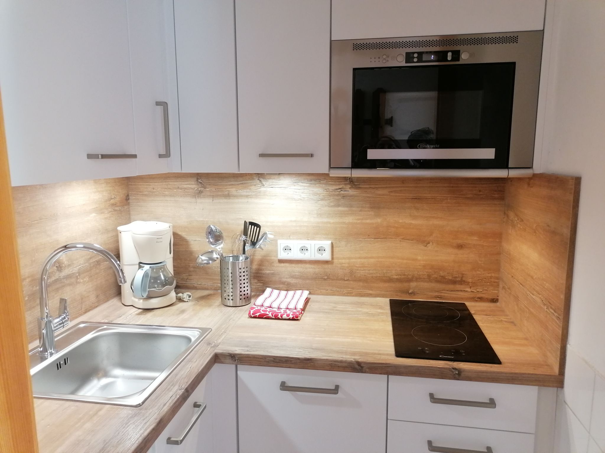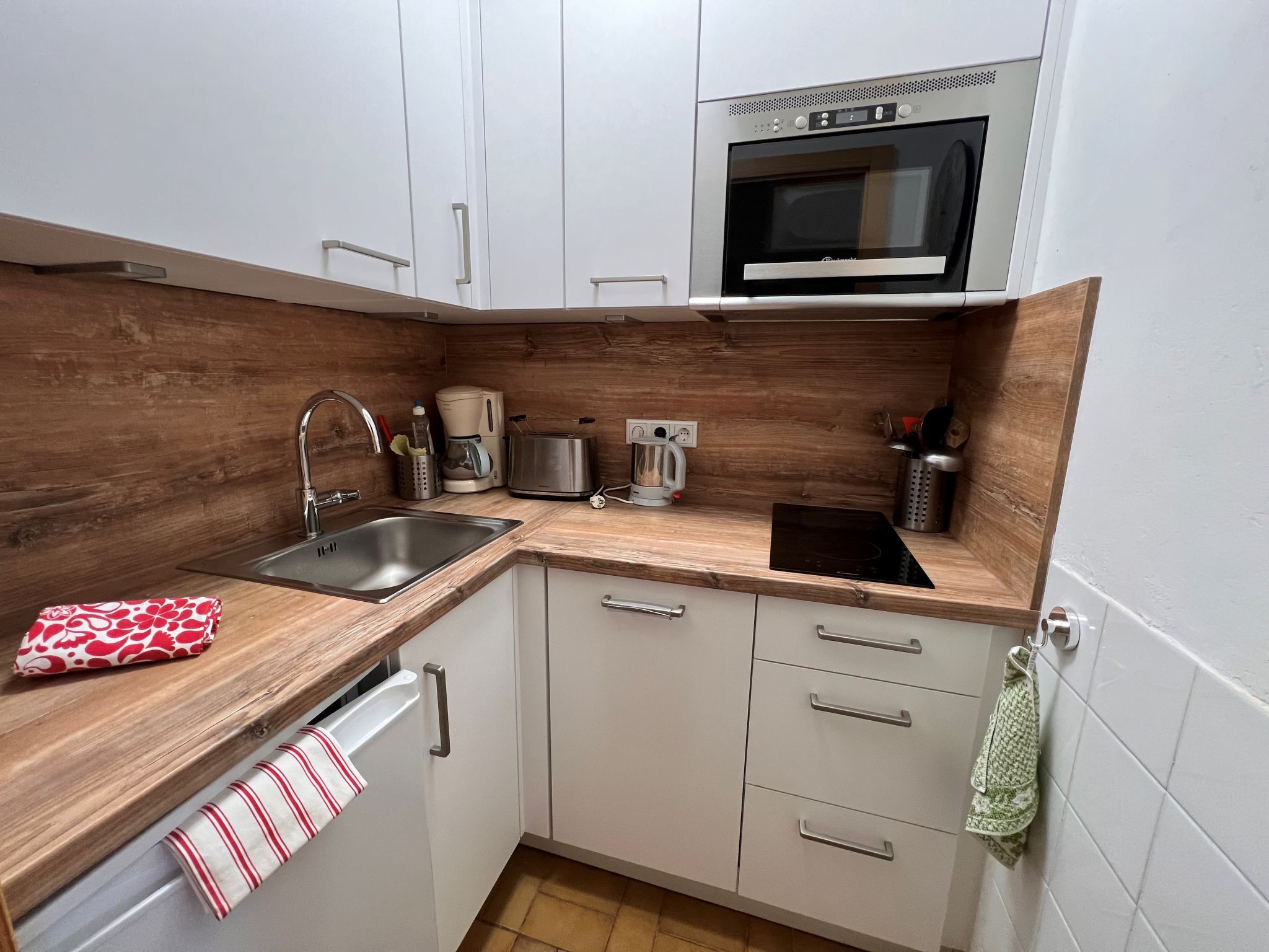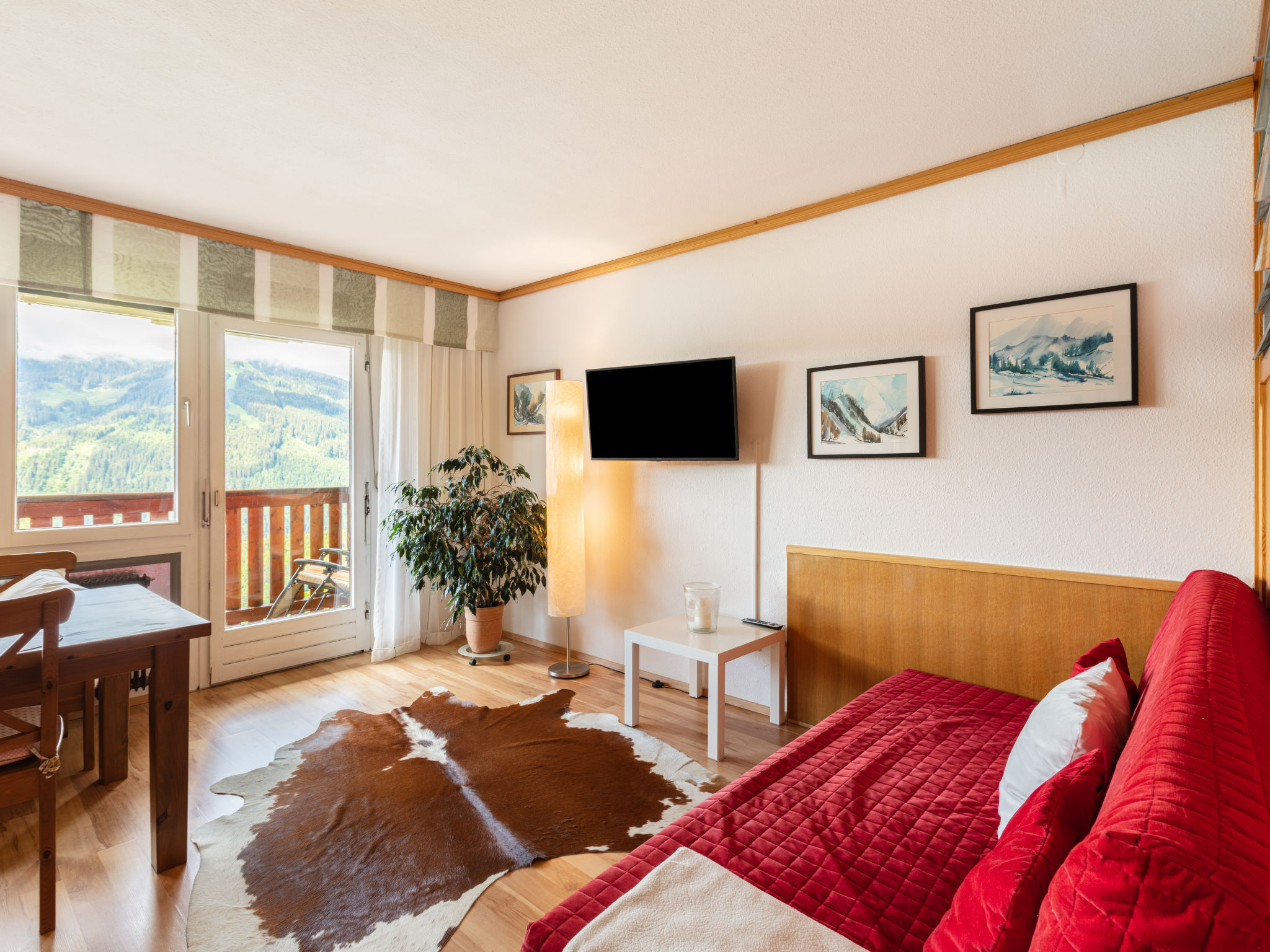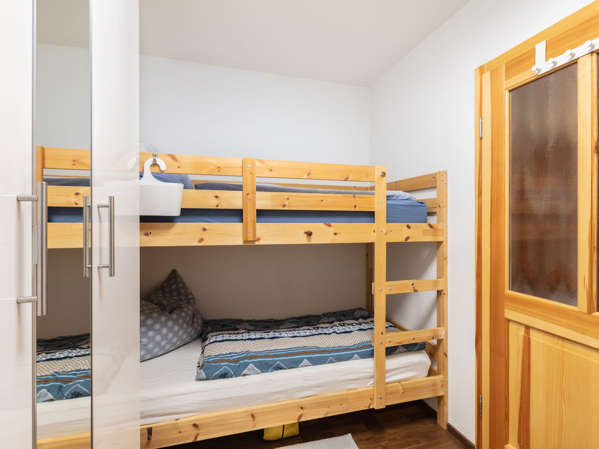 2-Zimmer-Wohnung 39 m2 im 4. Stock. Hell, schön und gemütlich eingerichtet: Eingang. Wohn-/Schlafzimmer mit 1 Doppeldiwanbett und Sat-TV (Flachbildschirm), Radio. Ausgang zum Balkon. 1 Zimmer mit 2 x 2 Etagenbetten (90 cm, Länge 190 cm). Kleine Küche (3 Kochplatten, Backofen, elektrische Kaffeemaschine). Dusche/WC. Balkon. Balkonmöbel. Sehr schöne Sicht auf die Berge und die Landschaft. Parkplatz (1 Auto). Bitte beachten: geeignet für Familien. Nichtraucher-Unterkunft. 1 Haustier/Hund erlaubt. Feuerlöscher. 50415-006726-2020