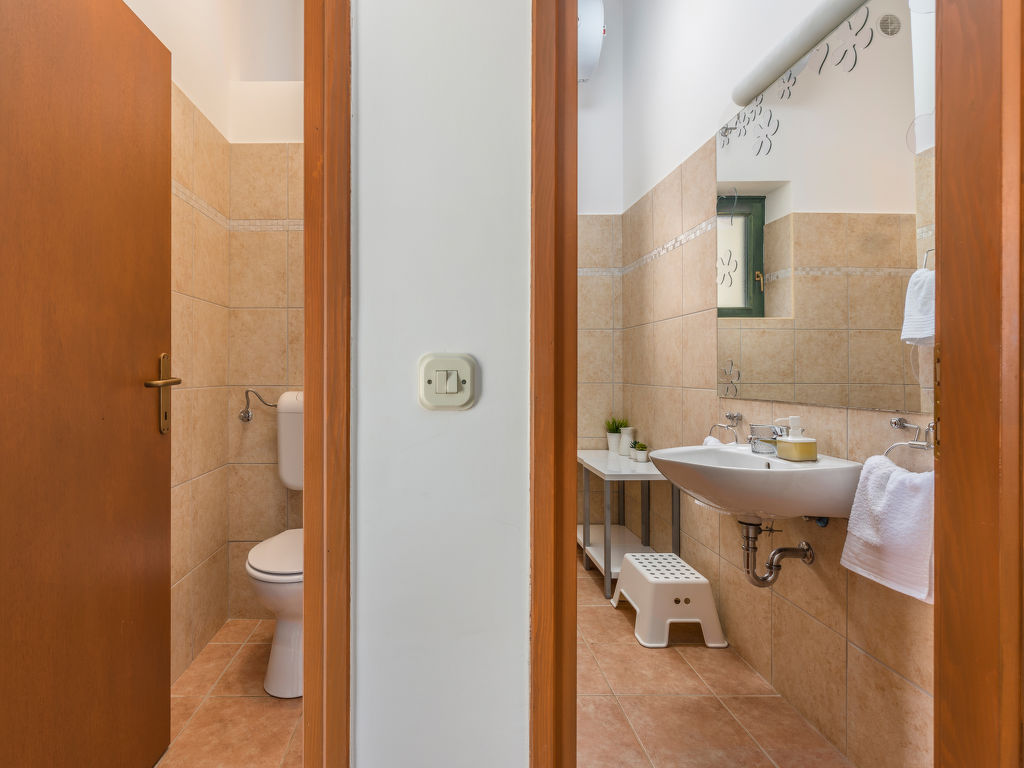 Altes Einfamilienhaus "Villa Ana Rita", auf 2 Stockwerken, renoviert im Jahre 2018. 900 m vom Zentrum von Kanfanar, ruhige, sonnige Lage, 8 km vom Meer, in einer Sackgasse. Zur Alleinbenutzung: Grundstück 400 m2 (eingezäunt), Garten mit Rasen, Schwimmbad eckig, beheizt (8 x 3 m, 26 m2, 150 cm tief, 01.05.-31.10.) mit Innentreppe. Aussendusche, Sprudelbad, Tischtennis, Terrasse (25 m2), Gartenmöbel, Grill. Im Hause: Internetzugang, Einstellraum für Fahrräder, Waschmaschine. Parkplatz (für 4 Autos) beim Haus auf dem Grundstück. Einkaufsgeschäft 900 m, Supermarkt 1 km, Restaurant 1 km, Kieselstrand 18 km. Surfschule 18 km, Segelschule 18 km, Tennis 5 km, Reitstall 5 km, Wanderwege ab Haus 20 m, Radweg 40 m. Es ist notwendig 7 Tage im Voraus bekannt zu geben, ob die Schwimmbadheizung eingeschaltet werden soll.