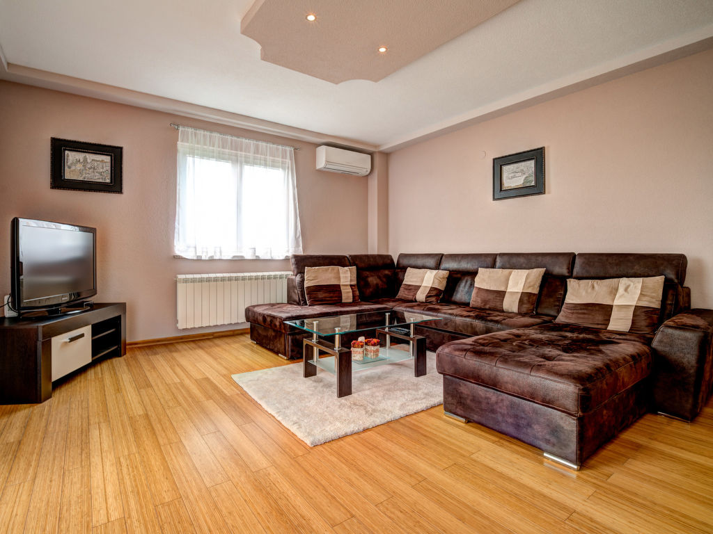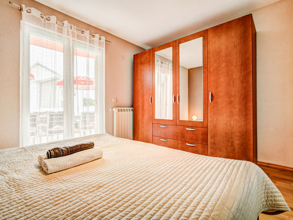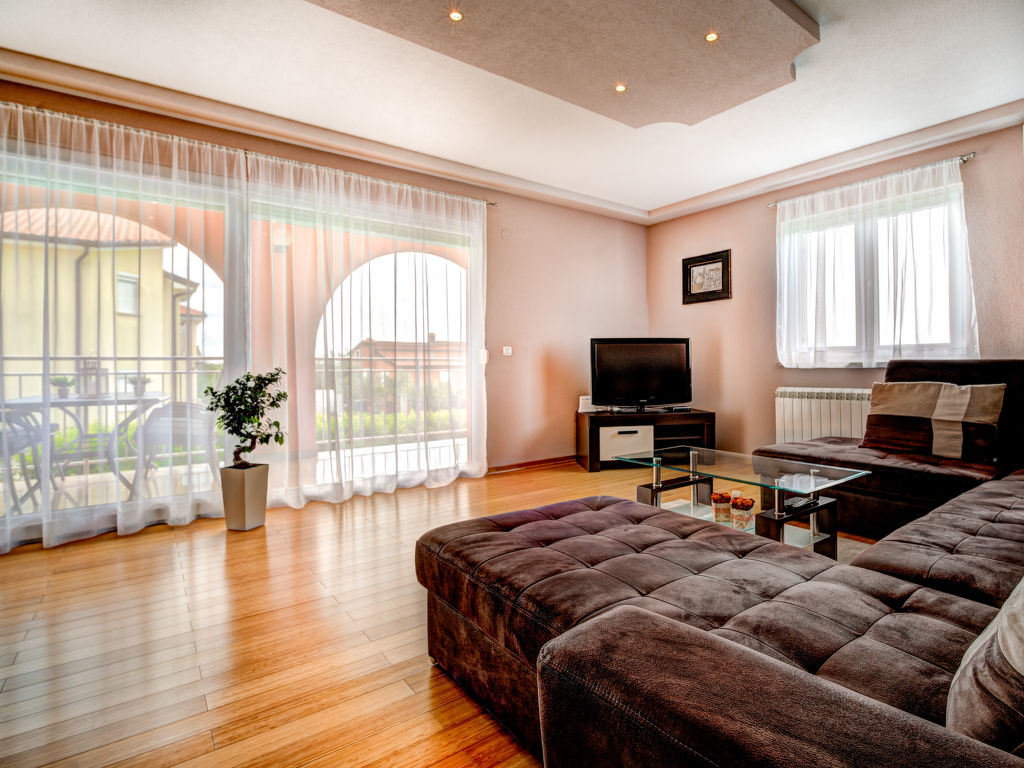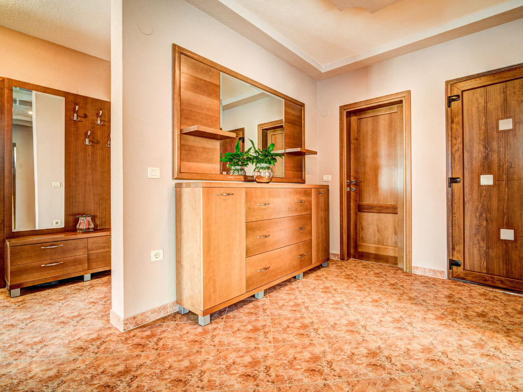 3-Zimmer-Wohnung 130 m2, im erhöhten Erdgeschoss. Schön und geschmackvoll eingerichtet: Wohnzimmer mit Sat-TV (Flachbildschirm), Klimaanlage. Ausgang zur Terrasse. 2 Zimmer, jedes Zimmer mit 1 Doppelbett (2 x 90 cm, Länge 200 cm). Ausgang zur Terrasse. Esszimmer. Ausgang zur Terrasse. Offene Küche (Backofen, Geschirrspüler, 4 Glaskeramikherd Platten, Mikrowelle, Tiefkühler, elektrische Kaffeemaschine). Sep. WC, Bad/Dusche/Bidet/WC, Doppelwaschbecken, Whirlbadewanne. Heizung (extra). Terrasse 25 m2, überdacht, Terrasse 16 m2, überdacht. Terrassenmöbel. Eingeschränkte Fernsicht auf das Meer. Zur Verfügung: Internet (Wireless LAN, gratis). Bitte beachten: Feuerlöscher.
