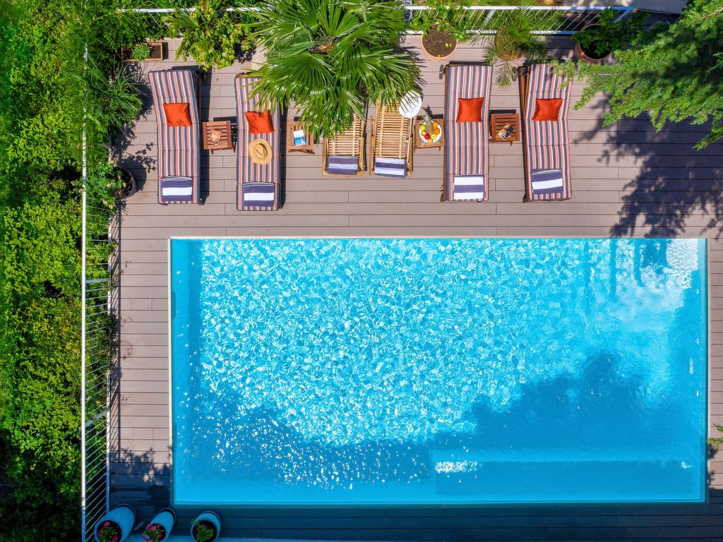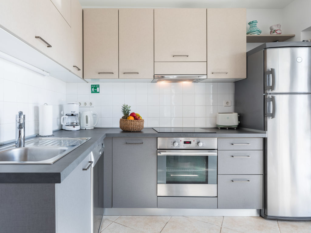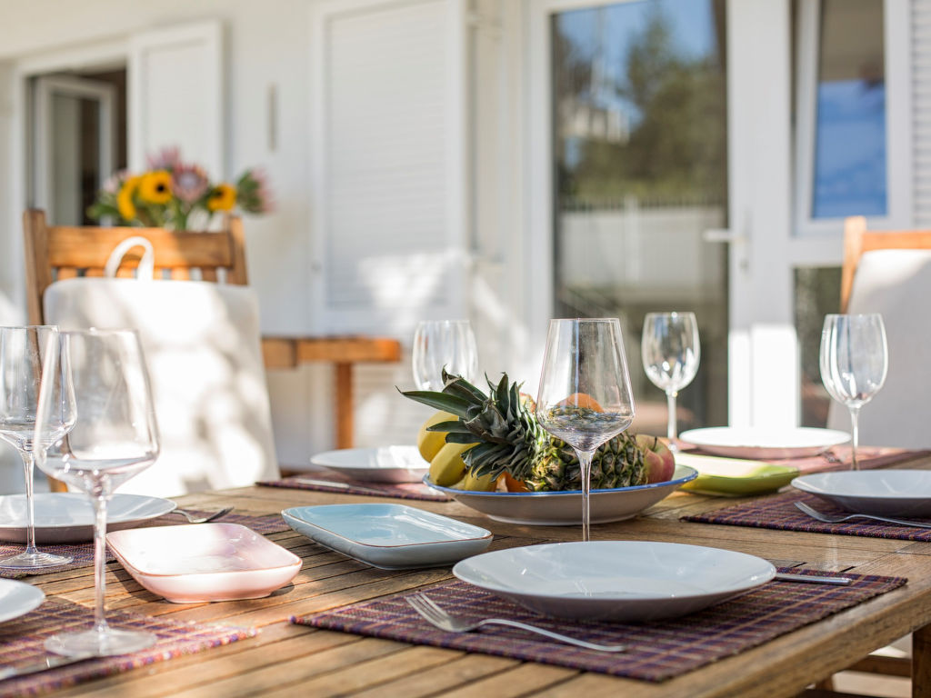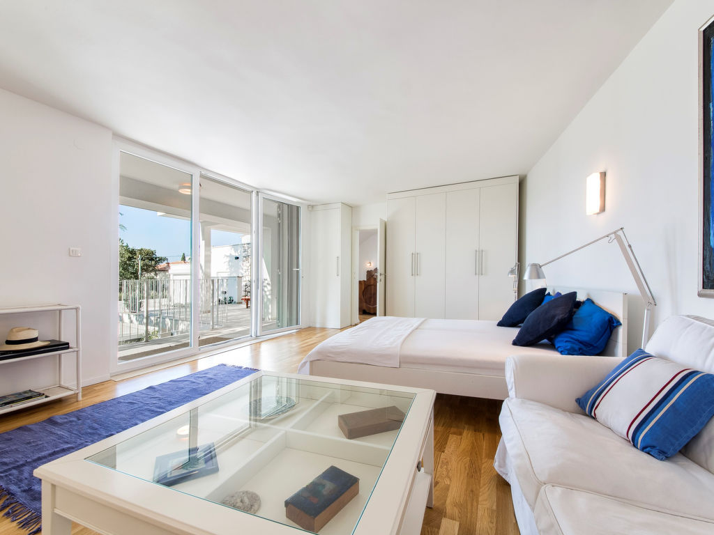 5-Zimmer-Haus 165 m2 auf 2 Stockwerken, Südlage. Wohn-/Esszimmer 30 m2 mit Sat-TV (Flachbildschirm), Klimaanlage. Ausgang zur Terrasse. 1 Zimmer mit 2 Betten (90 cm, Länge 200 cm). Ausgang zur Terrasse. Offene Küche (Backofen, Geschirrspüler, 4 Glaskeramikherd Platten, Tiefkühler, elektrische Kaffeemaschine). Dusche/WC. Obergeschoss: (Aussentreppe) 1 grosses Zimmer 30 m2 mit 1 Doppelbett (2 x 90 cm, Länge 200 cm), Dusche/WC und Sat-TV (Flachbildschirm), Klimaanlage. Ausgang zur Terrasse. 1 Zimmer mit 1 franz. Bett (160 cm, Länge 200 cm), Dusche/WC und Klimaanlage. Ausgang zur Terrasse. 1 Zimmer mit 1 x 2 Etagenbetten (90 cm, Länge 190 cm), Dusche/WC und Klimaanlage. Ausgang zur Terrasse. Terrasse 60 m2 teilweise überdacht, Terrasse 30 m2 teilweise überdacht. Terrassenmöbel, Liegestühle. Sicht auf das Schwimmbad. Zur Verfügung: Babybett. Internet (Wireless LAN, gratis).
