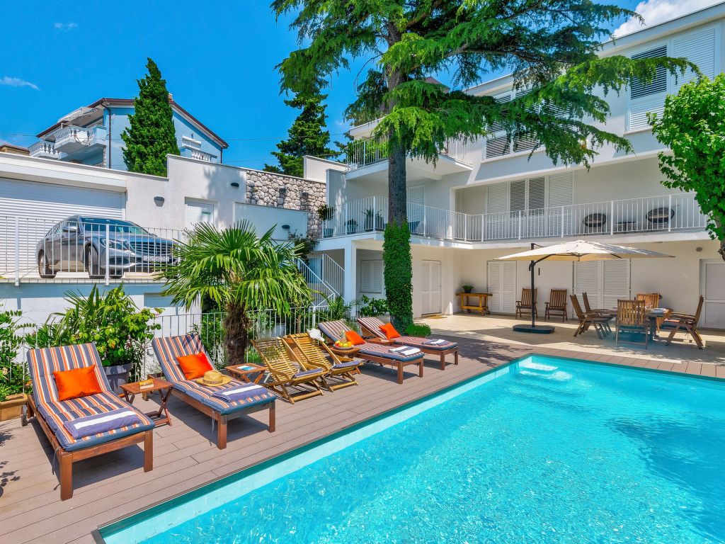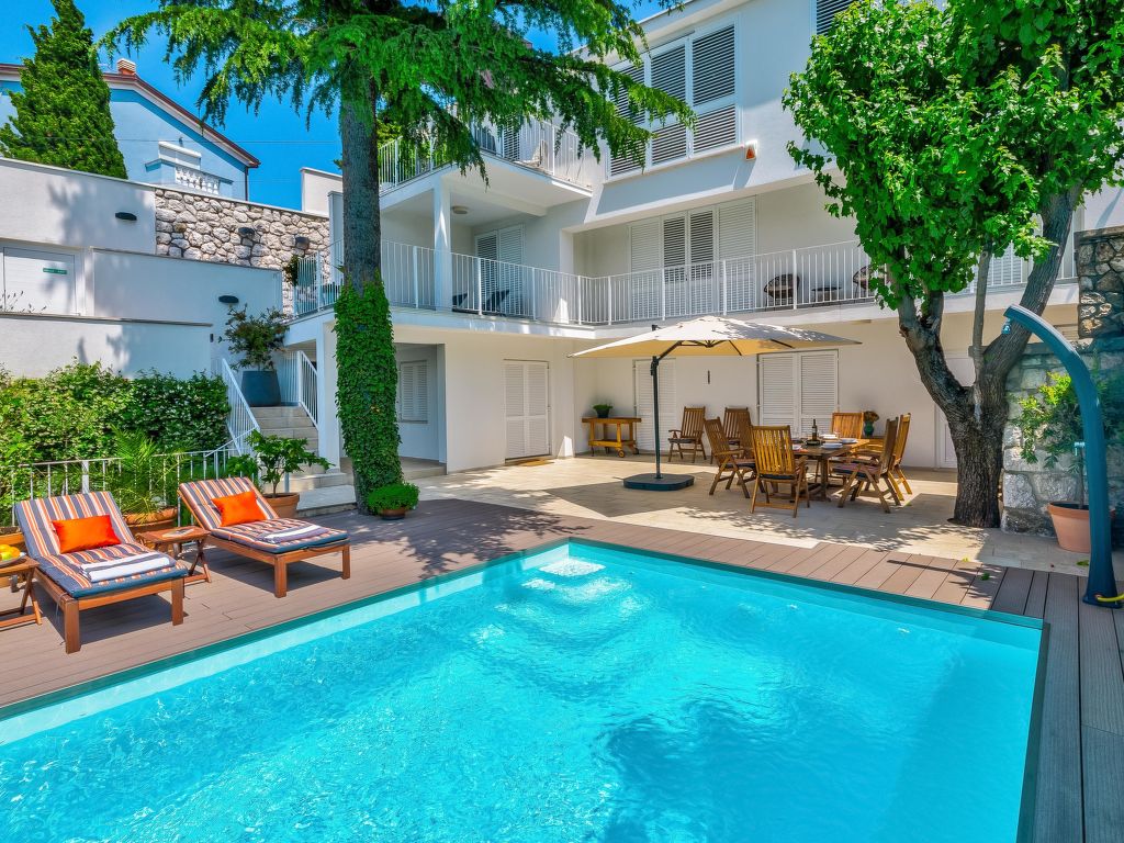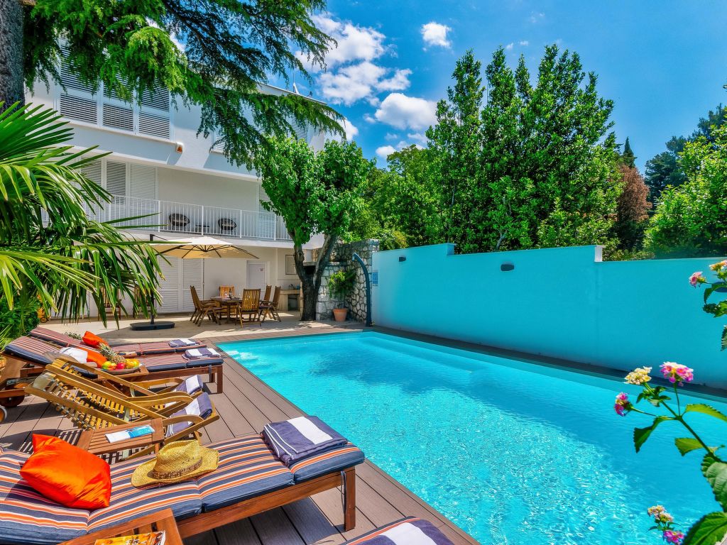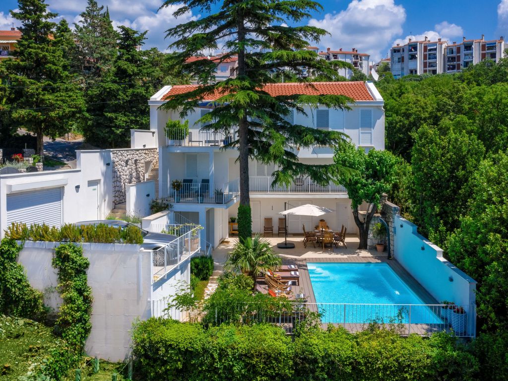 Einfamilienhaus "Aurora", auf 2 Stockwerken. 850 m vom Zentrum von Crikvenica, sonnige Lage, 60 m vom Meer, 60 m vom Strand. Zur Alleinbenutzung: Grundstück 300 m2 (eingezäunt), Pflanzen und Bäumen, Schwimmbad eckig (8 x 4 m, 150 cm tief, 01.05.-15.10.) mit Innentreppe. Dusche/WC im Poolbereich, Grill. Im Hause: Internetzugang, Waschmaschine. Parkplatz beim Haus auf dem Grundstück, öffentliche Parkplätze auf der Strasse. Einkaufsgeschäft 1 km, Supermarkt 1 km, Restaurant 300 m, Kieselstrand, Felsstrand 60 m. Keine Vermietung an Jugendgruppen. Die zweite Etage ist geschlossen und nicht belegt.