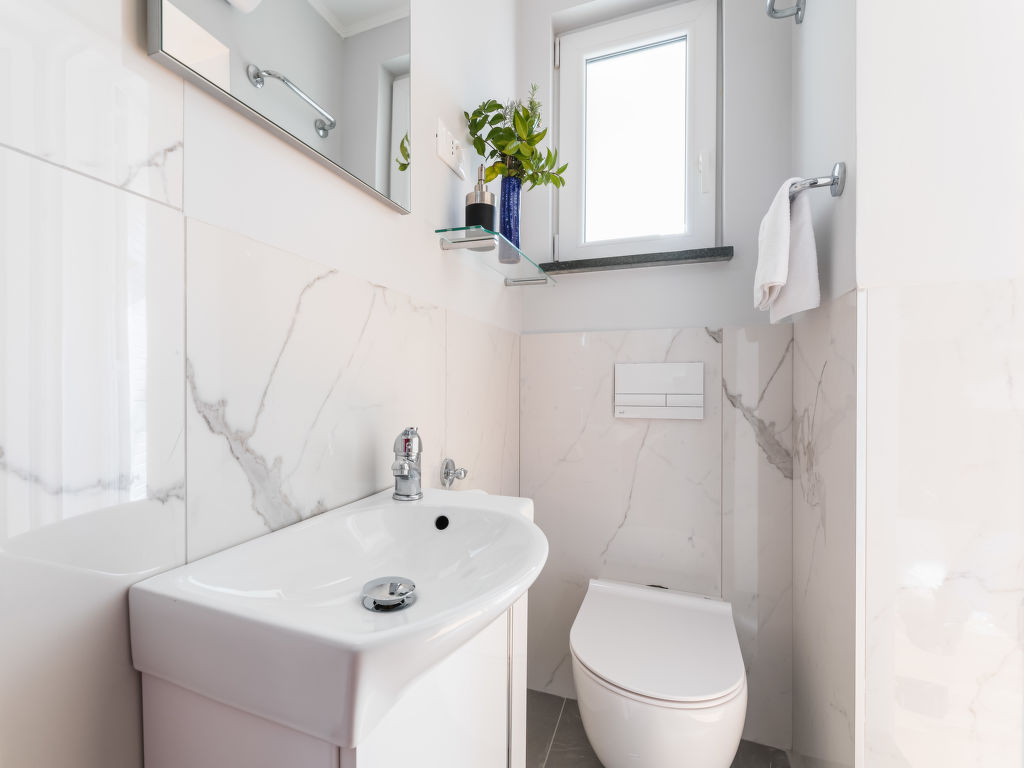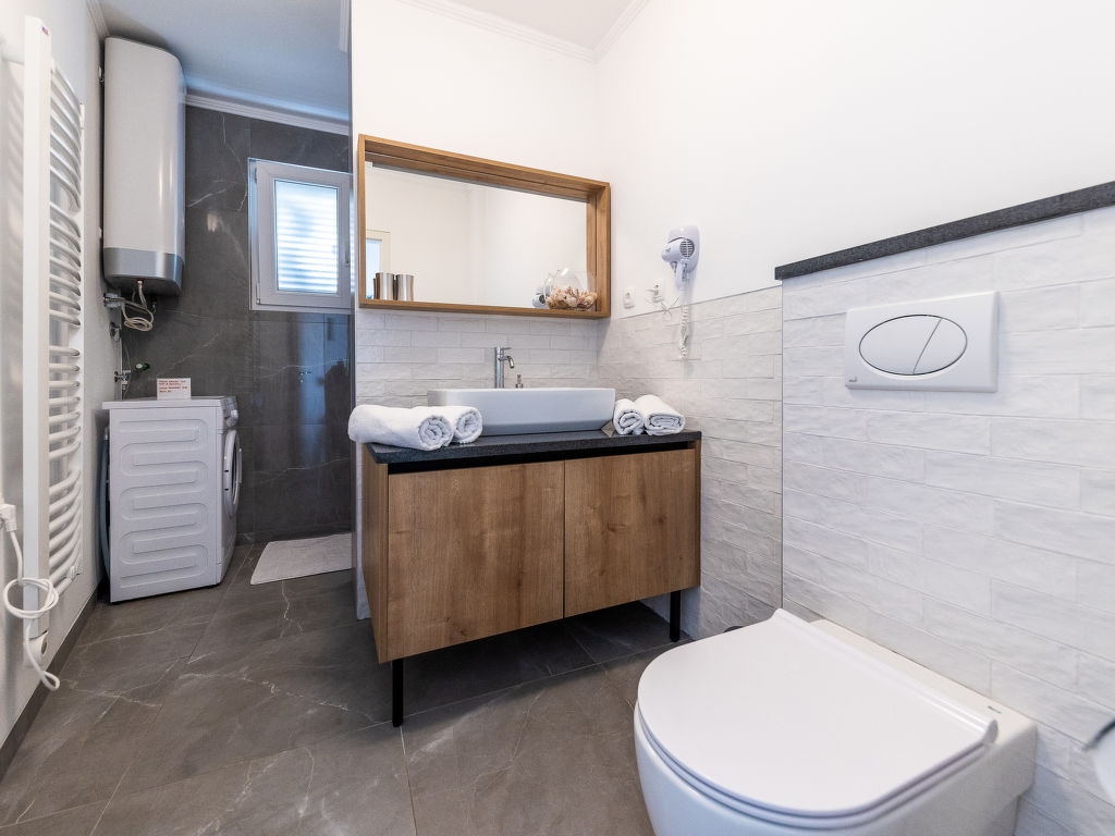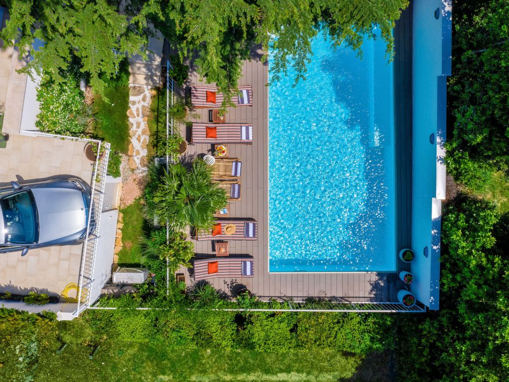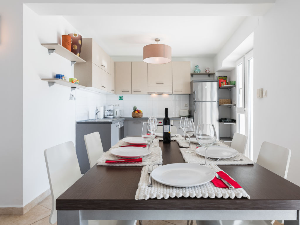 Einfamilienhaus "Aurora", auf 2 Stockwerken. 850 m vom Zentrum von Crikvenica, sonnige Lage, 60 m vom Meer, 60 m vom Strand. Zur Alleinbenutzung: Grundstück 300 m2 (eingezäunt), Pflanzen und Bäumen, Schwimmbad eckig (8 x 4 m, 150 cm tief, 01.05.-15.10.) mit Innentreppe. Dusche/WC im Poolbereich, Grill. Im Hause: Internetzugang, Waschmaschine. Parkplatz beim Haus auf dem Grundstück, öffentliche Parkplätze auf der Strasse. Einkaufsgeschäft 1 km, Supermarkt 1 km, Restaurant 300 m, Kieselstrand, Felsstrand 60 m. Keine Vermietung an Jugendgruppen. Die zweite Etage ist geschlossen und nicht belegt.
