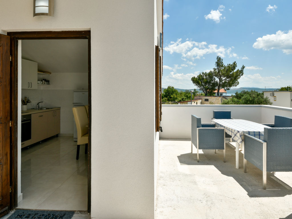 3-Zimmer-Wohnung 66 m2, im Dachgeschoss, Südwestlage. Abgeschrägtes Wohn-/Esszimmer 24 m2, Deckenhöhe 190 - 280 cm mit 1 Doppeldiwanbett (140 cm, Länge 190 cm), Sat-TV (Flachbildschirm), Klimaanlage. Ausgang zur Terrasse. 1 abgeschrägtes Zimmer, Deckenhöhe 190 - 280 cm mit 2 Betten (90 cm, Länge 200 cm). 1 abgeschrägtes Zimmer, Deckenhöhe 190 - 280 cm mit 1 franz. Bett (160 cm, Länge 200 cm). Abgeschrägte, offene Küche (Backofen, Geschirrspüler, 4 Glaskeramikherd Platten, Mikrowelle, Tiefkühler, elektrische Kaffeemaschine), Deckenhöhe 190 - 280 cm. Dusche/WC. Terrasse 22 m2 teilweise überdacht. Terrassenmöbel. Eingeschränkte Fernsicht auf das Meer. Zur Verfügung: Haartrockner. Internet (Wireless LAN, gratis).