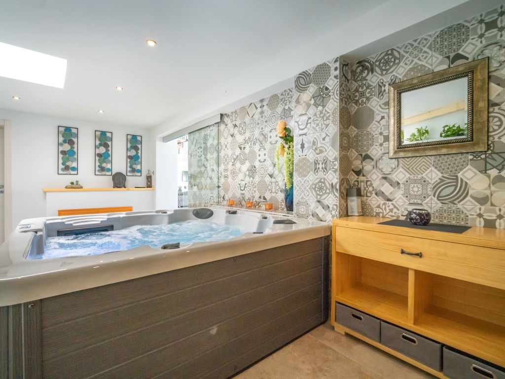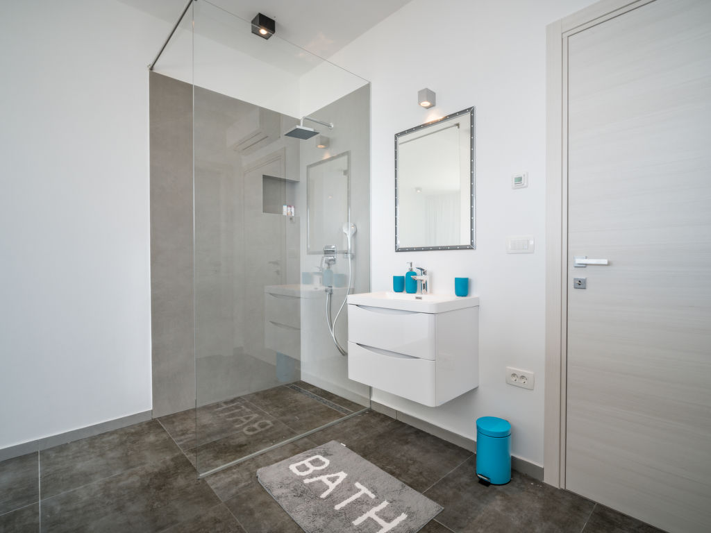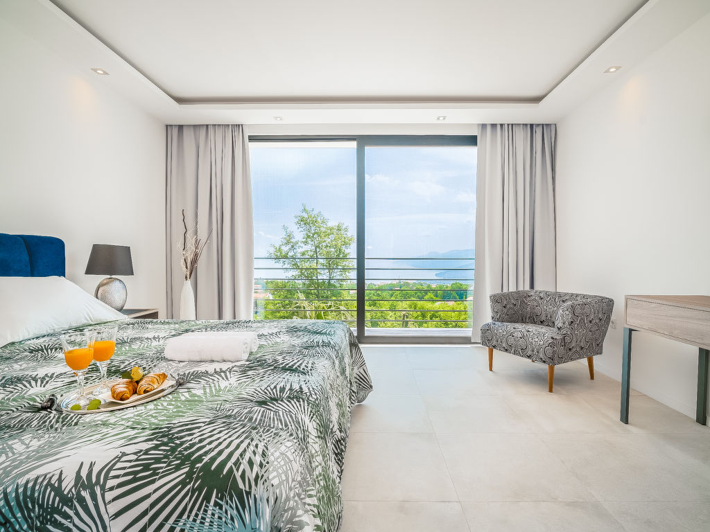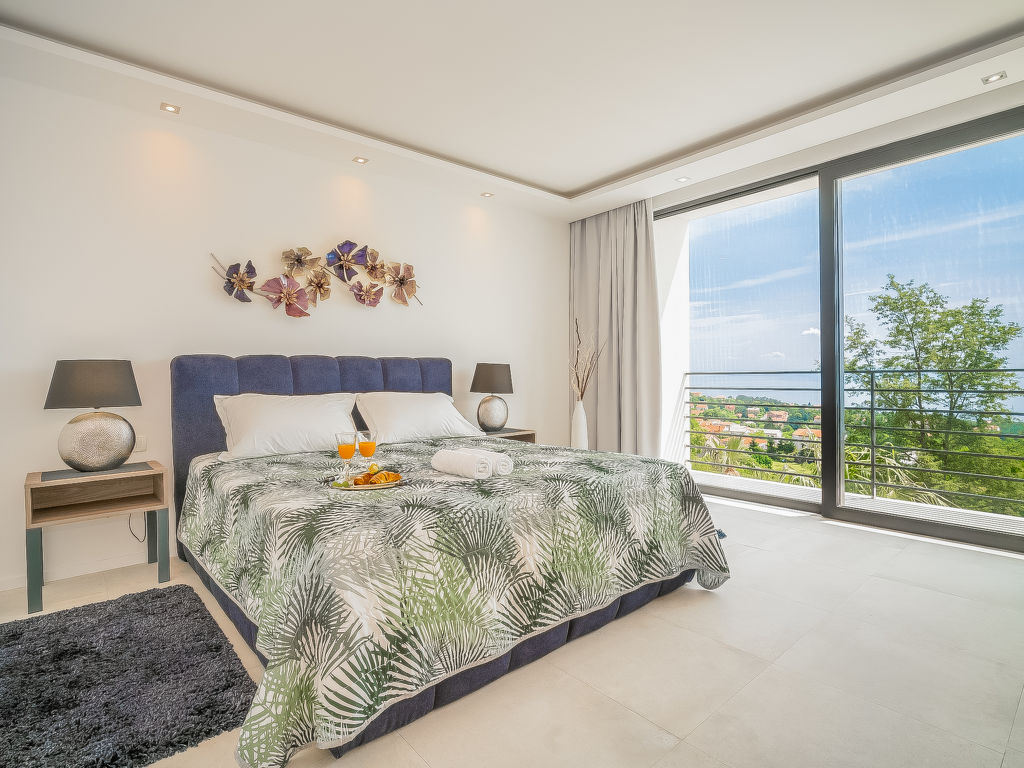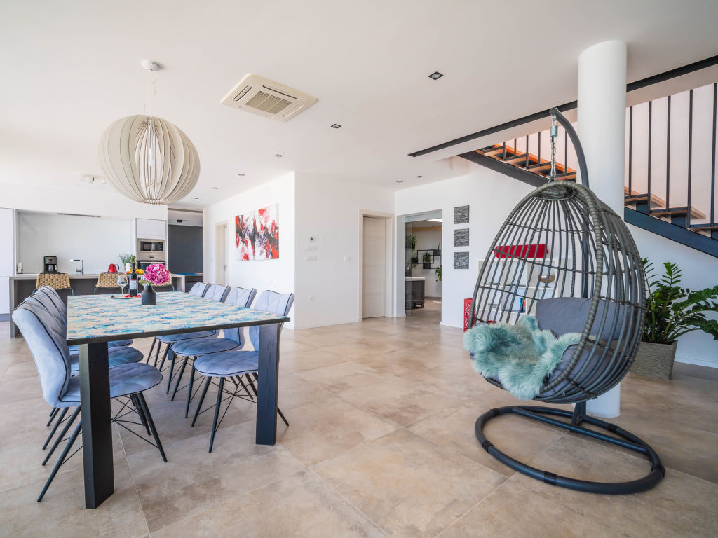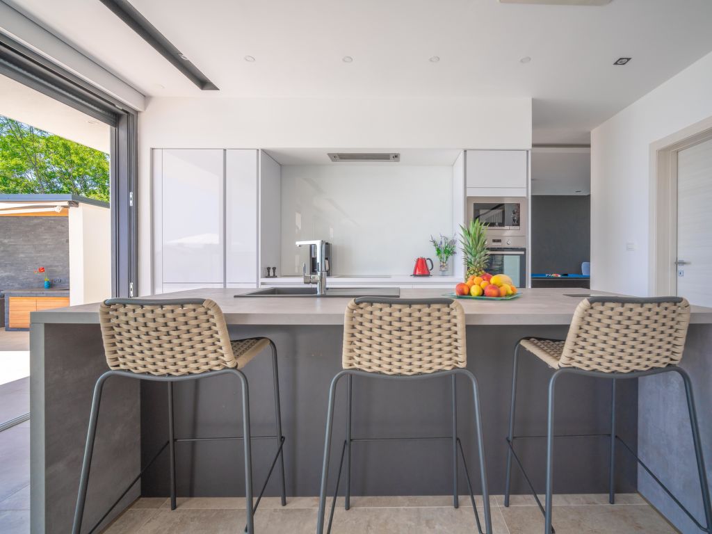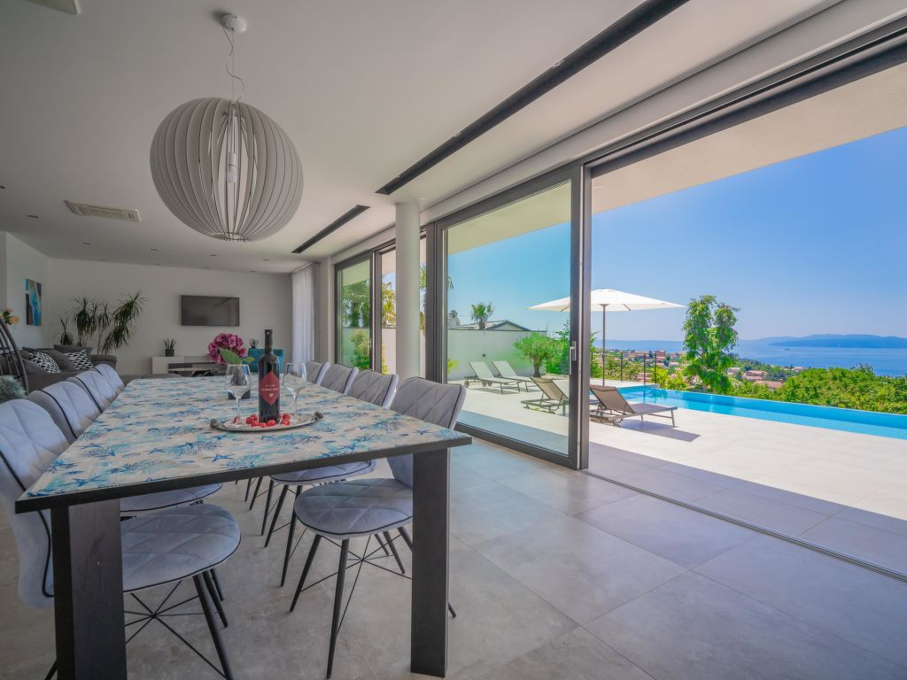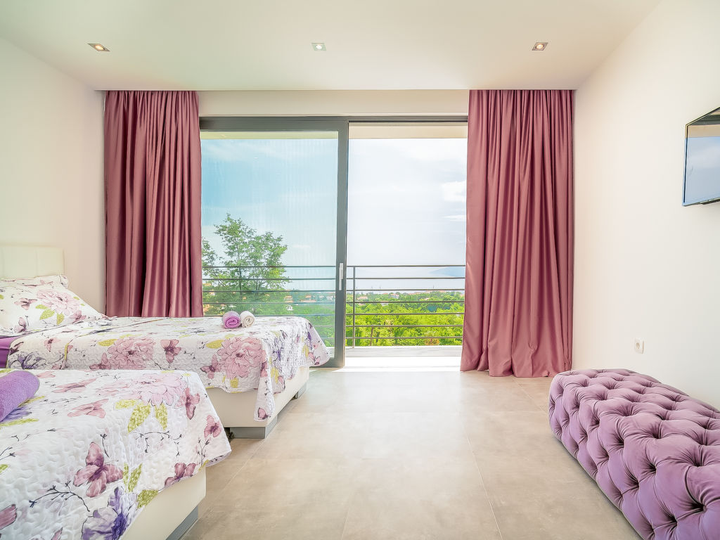 Matulji: Modernes Einfamilienhaus "Villa Minimal", auf 2 Stockwerken, Baujahr 2018. Im Weiler Spinčići, 1.5 km vom Zentrum von Matulji, 6 km vom Zentrum von Opatija, ruhige, sonnige, erhöhte Lage, 4 km vom Meer, 4 km vom Strand, in einer Sackgasse, im Grünen. Zur Alleinbenutzung: Grundstück 1'300 m2 (eingezäunt), Schwimmbad eckig, beheizt (10 x 4 m, 150 cm tief, 01.04.-30.10.) mit Innentreppe. Aussendusche, Tischtennis, Basketball, Terrasse (130 m2), Grill. Im Hause: Internetzugang, Sauna, Sprudelbad, Billard, Klimaanlage, Waschmaschine. Parkplatz (für 3 Autos) beim Haus auf dem Grundstück. Einkaufsgeschäft 350 m, Restaurant 1 km, Kieselstrand 4 km, betonierter Strand 4 km. Schwimmbad mit Hydromassage. Schwimmbad beheizt (extra).