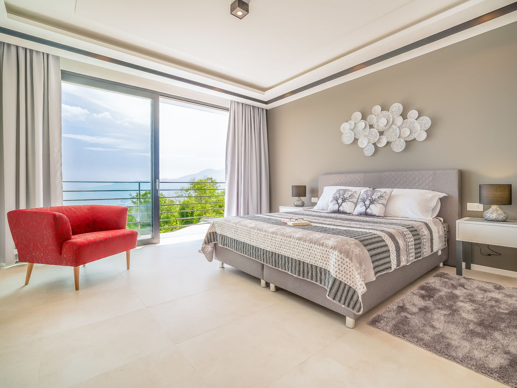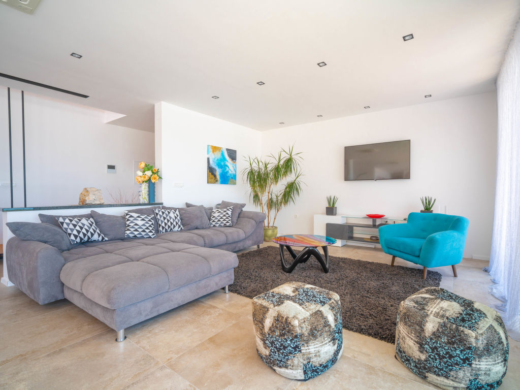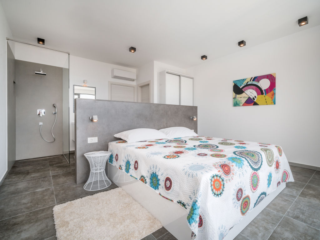 5-Zimmer-Haus 300 m2 auf 2 Stockwerken, Südlage. Schön und modern eingerichtet: grosses Wohn-/Esszimmer 120 m2 mit Panoramafenster mit Sat-TV (Flachbildschirm). Ausgang zur Terrasse, zum Schwimmbad. Offene Küche (Backofen, Geschirrspüler, 4 Glaskeramikherd Platten, Mikrowelle, Tiefkühler, elektrische Kaffeemaschine). Dusche, sep. WC. Obergeschoss: 2 Zimmer mit Panoramafenster, jedes Zimmer mit 1 franz. Bett (180 cm, Länge 200 cm), Dusche/WC und Sat-TV (Flachbildschirm). Ausgang zur Terrasse. 1 Zimmer mit Panoramafenster mit 2 Betten (90 cm, Länge 200 cm), Dusche/WC und Sat-TV (Flachbildschirm). Ausgang zur Terrasse. 1 Zimmer mit Panoramafenster mit 1 franz. Bett (180 cm, Länge 200 cm), Bad/WC, Doppelwaschbecken und Sat-TV (Flachbildschirm). Ausgang zur Terrasse. Bodenheizung. Terrasse 110 m2, Terrasse 65 m2 teilweise überdacht. Terrassenmöbel, Gartengrill (mobil), Liegestühle, Abstellkammer. Schöne Sicht auf das Meer und das Schwimmbad. Zur Verfügung: Safe, Haartrockner. Internet (Wireless LAN, gratis). Garage (2 Autos).