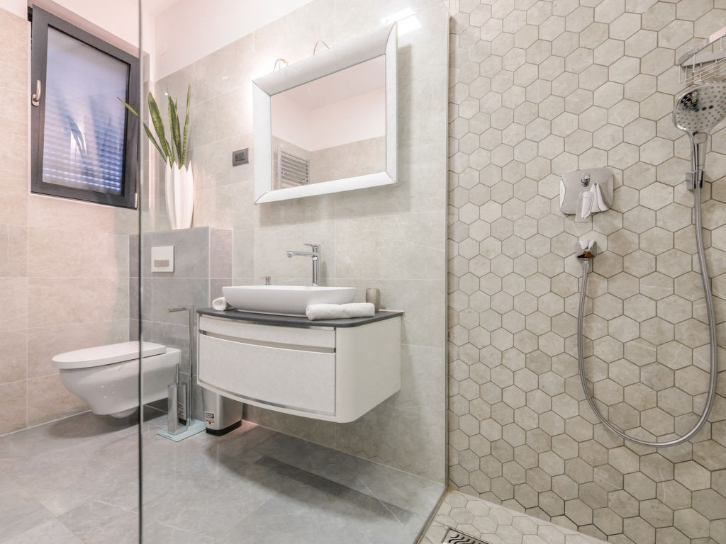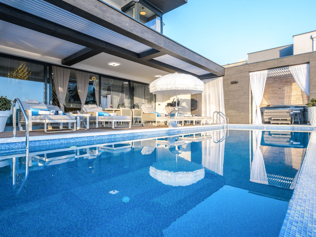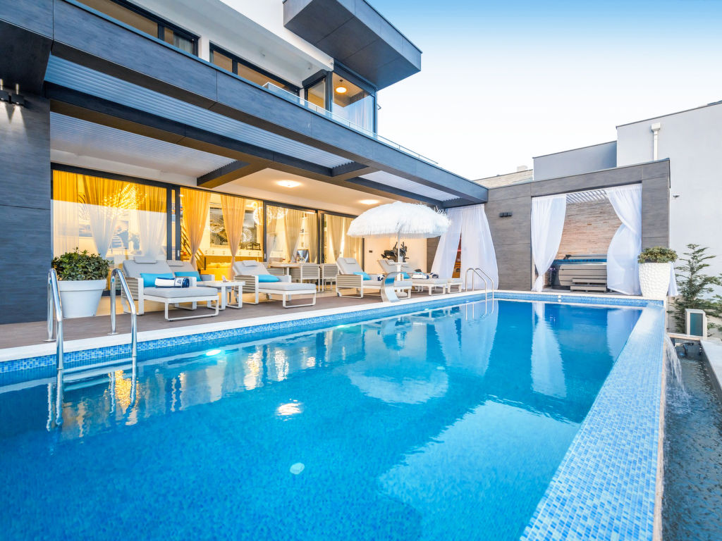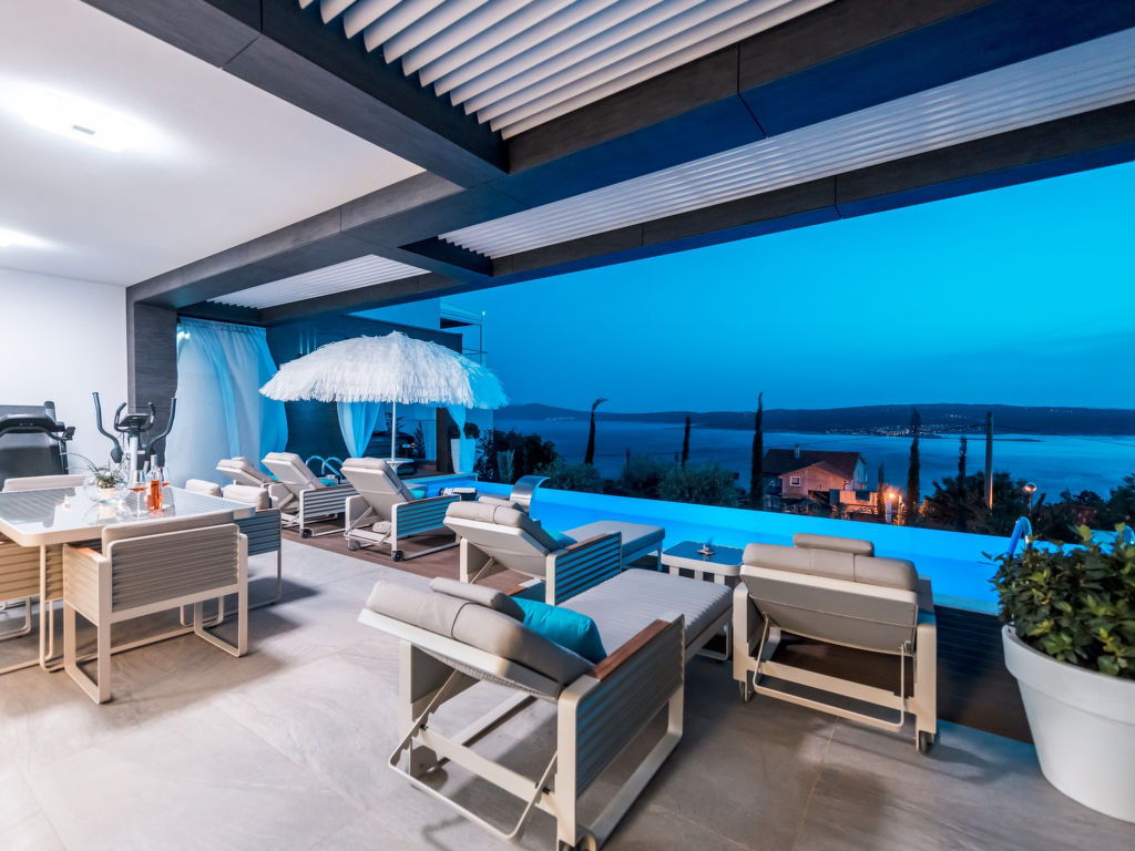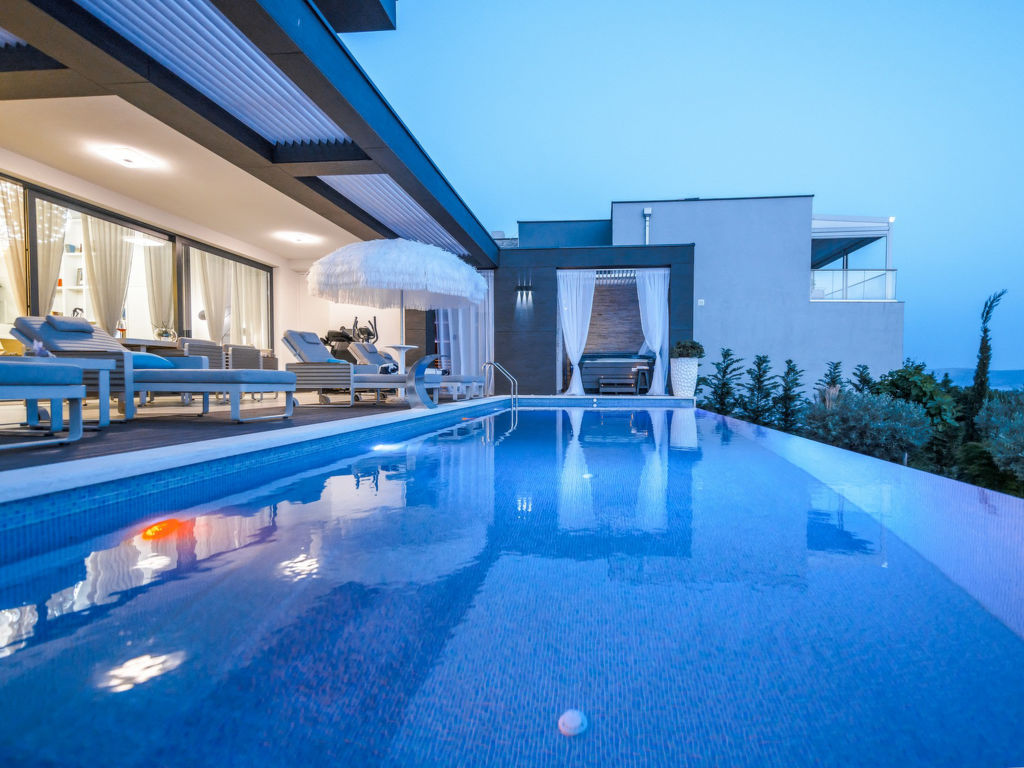 Modernes Einfamilienhaus "Villa Panorama", auf 3 Stockwerken. 2 km vom Zentrum von Crikvenica, sonnige, erhöhte Lage, 2 km vom Meer, 2 km vom Strand. Zur Alleinbenutzung: Grundstück 650 m2 (eingezäunt) mit Pflanzen, Schwimmbad eckig, beheizt (11 x 4 m, 150 cm tief, 01.04.-30.10.). Dusche/WC im Poolbereich, Terrasse (60 m2), Gartenmöbel. Im Hause: Internetzugang, Sauna, Sprudelbad, Klimaanlage, Waschmaschine, Wäschetrockner. Zur Verfügung: Fahrräder. Parkplatz beim Haus auf dem Grundstück. Einkaufsgeschäft 500 m, Supermarkt 1 km, Restaurant 500 m, Kieselstrand 2 km, Strandbad 3 km, betonierter Strand 2 km. Videoüberwachung der Immobilie. Zur Verfügung:Laufband,Orbitrek. Das Veranstalten von Partys ist nicht gestattet.