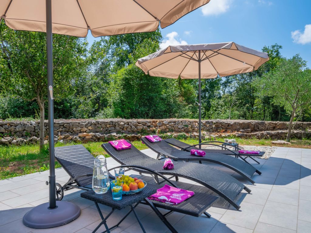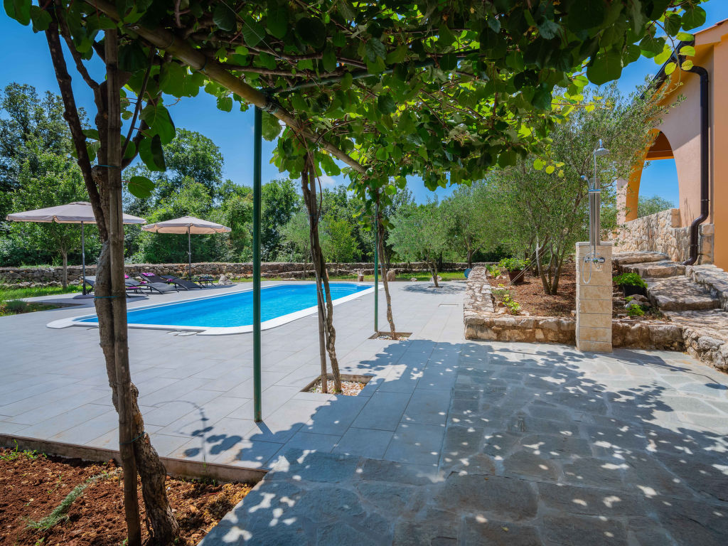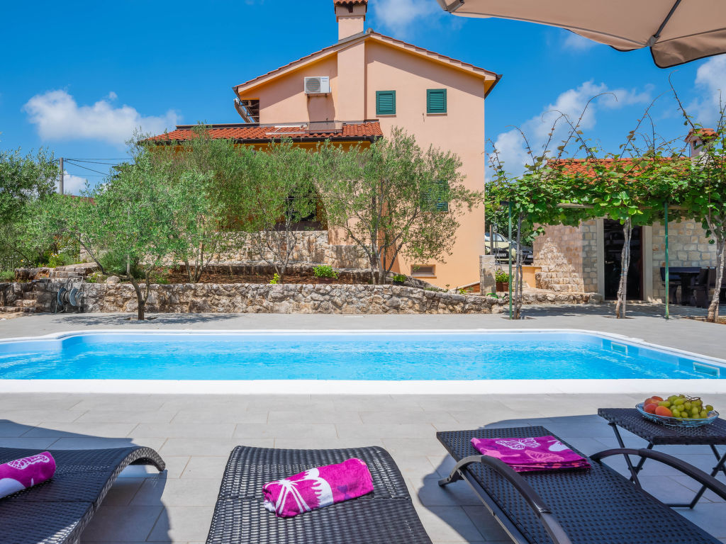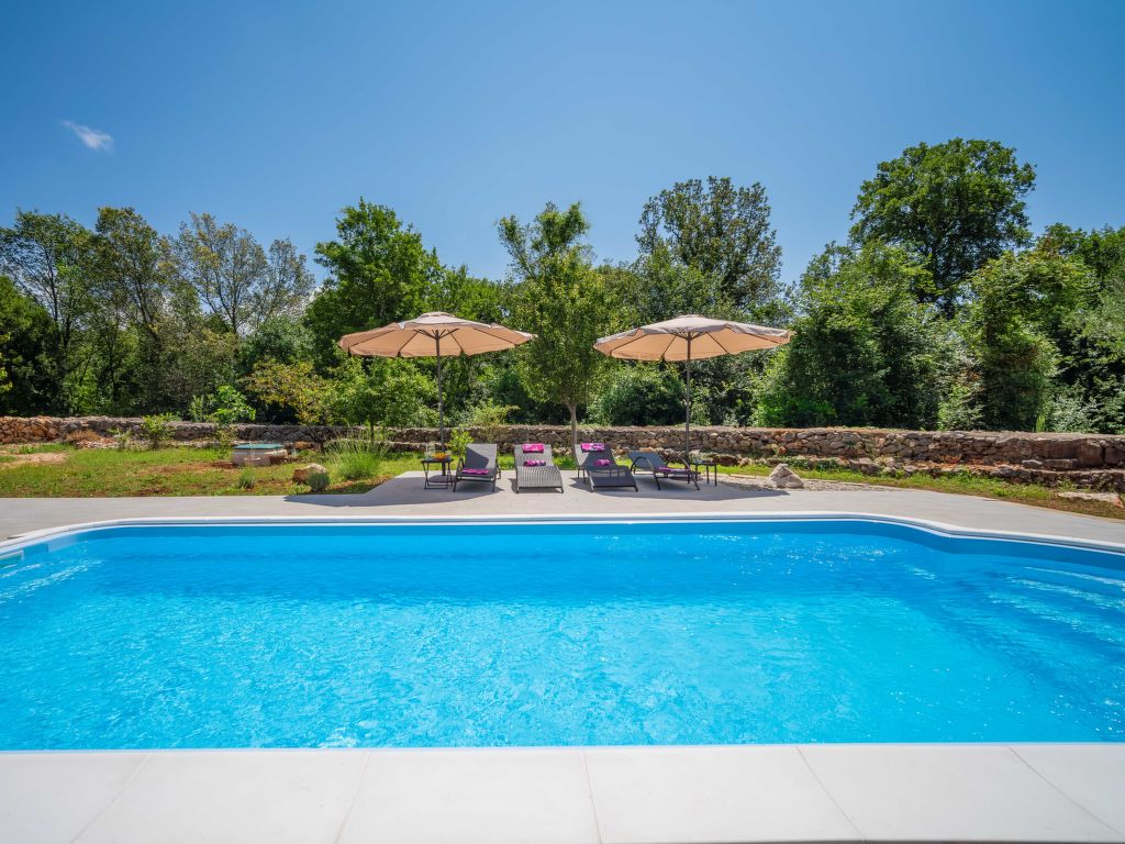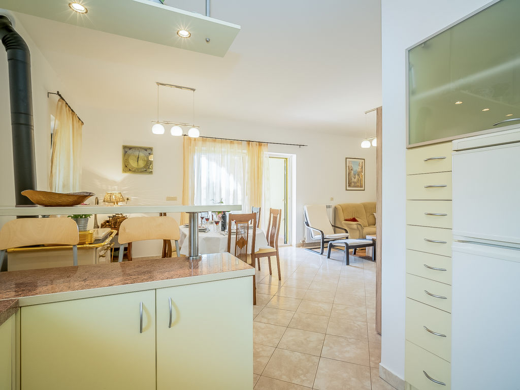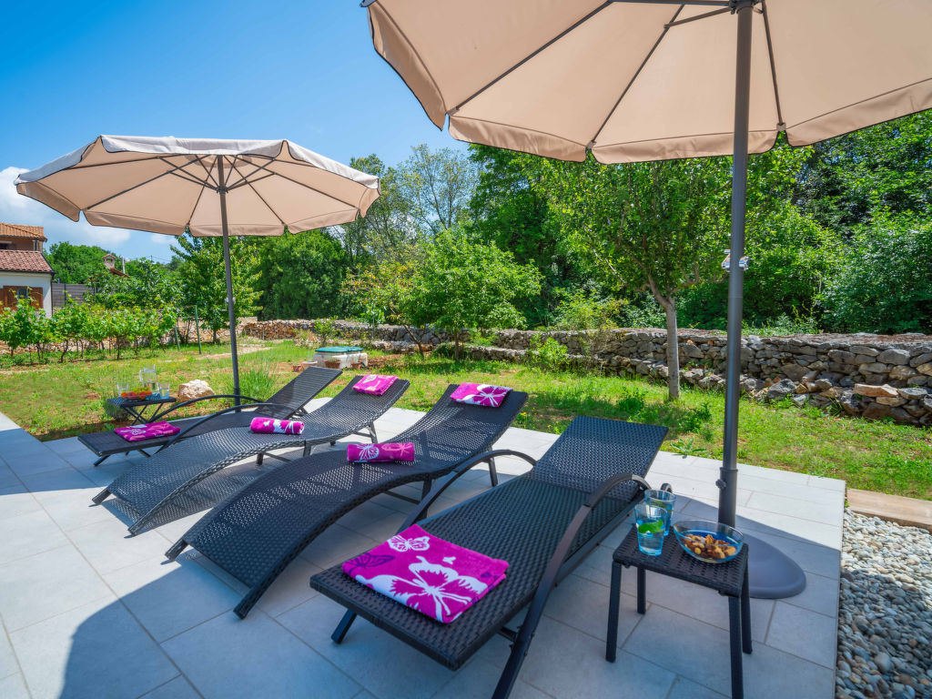 Kras: Einfamilienhaus "Mila", auf 2 Stockwerken. 3.5 km vom Zentrum von Dobrinj, 9 km vom Zentrum von Malinska, 11 km vom Zentrum von Krk, ruhige, sonnige Lage, 8.5 km vom Meer, im Grünen. Zur Alleinbenutzung: Grundstück 1'400 m2, Rasen 400 m2, Bäumen, Schwimmbad eckig (8 x 4 m, 140 cm tief, 01.05.-15.10.) mit Innentreppe. Aussendusche, Terrasse (24 m2), Gartenmöbel, Grill. Im Hause: Internetzugang, Waschmaschine. Parkplatz (für 4 Autos) beim Haus auf dem Grundstück. Einkaufsgeschäft 700 m, Supermarkt 8.5 km, Restaurant 3.5 km, Kieselstrand 8.5 km, betonierter Strand 8.5 km. Jugendgruppen nur auf Anfrage. Von Gruppen junger Leute wird ein doppeltes Pfand verlangt bei der Ankunft.
