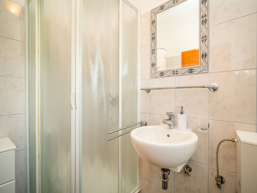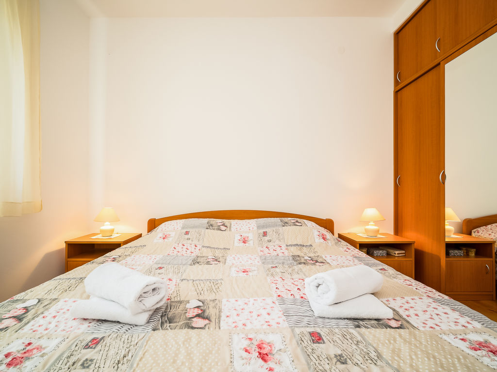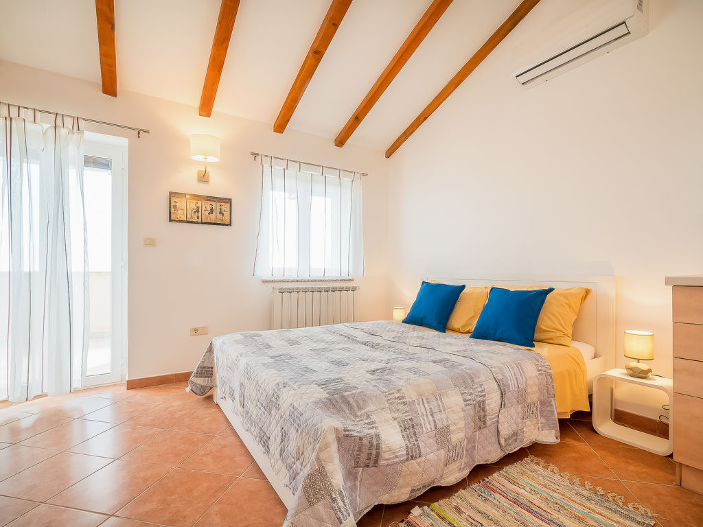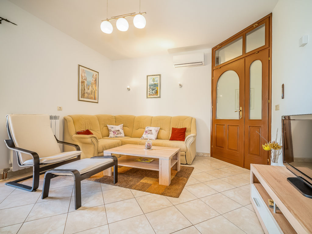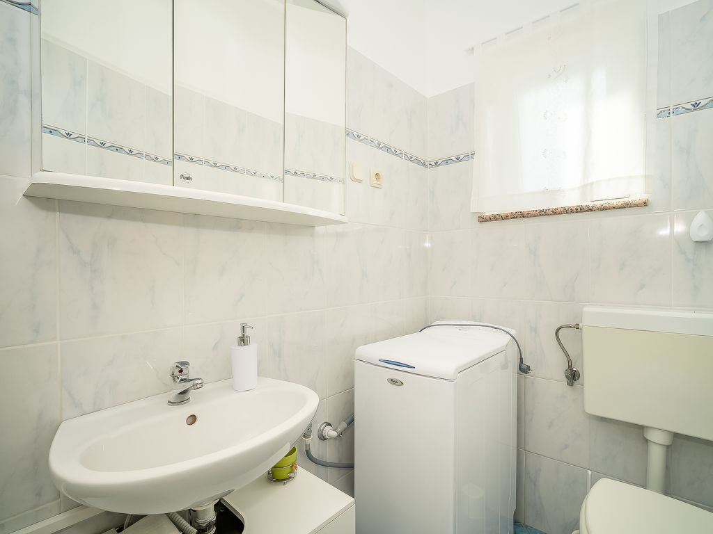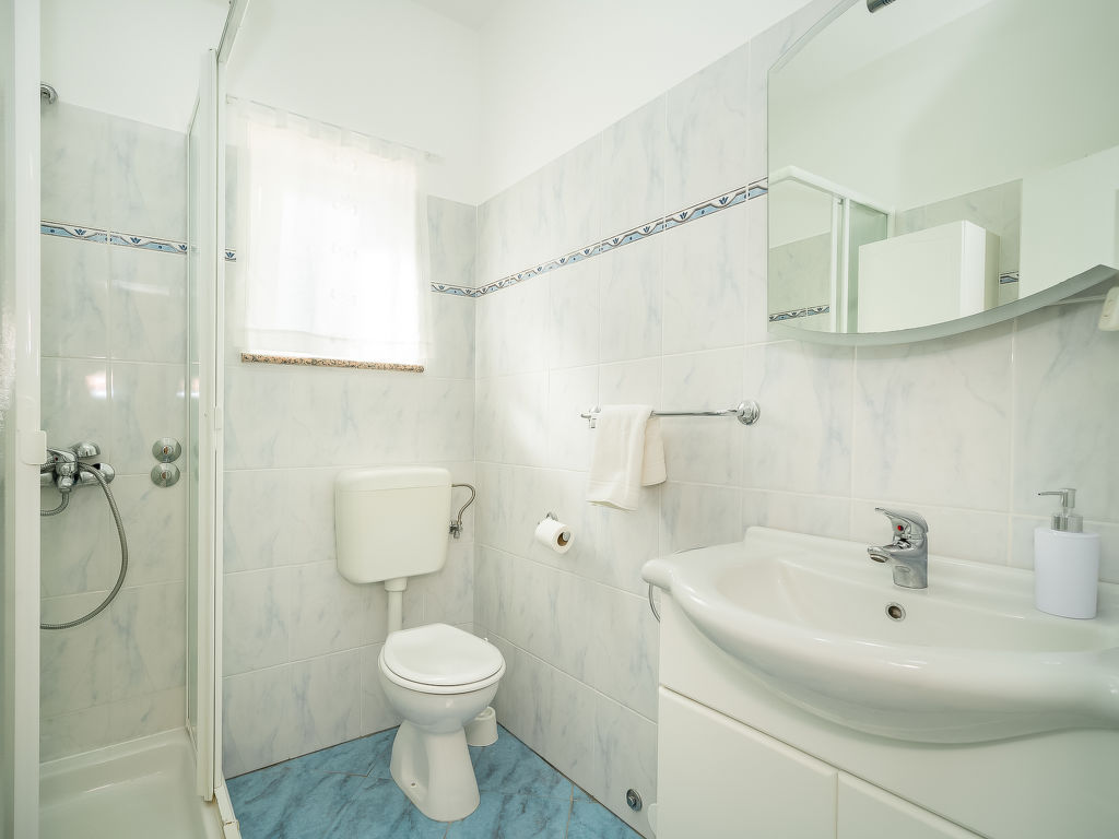 Kras: Einfamilienhaus "Mila", auf 2 Stockwerken. 3.5 km vom Zentrum von Dobrinj, 9 km vom Zentrum von Malinska, 11 km vom Zentrum von Krk, ruhige, sonnige Lage, 8.5 km vom Meer, im Grünen. Zur Alleinbenutzung: Grundstück 1'400 m2, Rasen 400 m2, Bäumen, Schwimmbad eckig (8 x 4 m, 140 cm tief, 01.05.-15.10.) mit Innentreppe. Aussendusche, Terrasse (24 m2), Gartenmöbel, Grill. Im Hause: Internetzugang, Waschmaschine. Parkplatz (für 4 Autos) beim Haus auf dem Grundstück. Einkaufsgeschäft 700 m, Supermarkt 8.5 km, Restaurant 3.5 km, Kieselstrand 8.5 km, betonierter Strand 8.5 km. Jugendgruppen nur auf Anfrage. Von Gruppen junger Leute wird ein doppeltes Pfand verlangt bei der Ankunft.