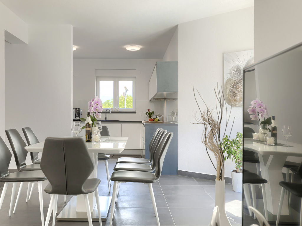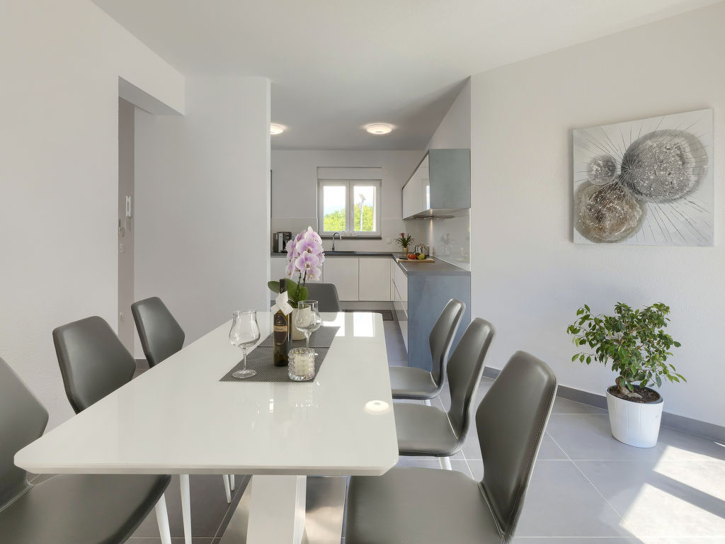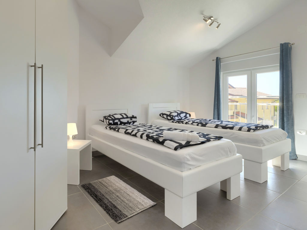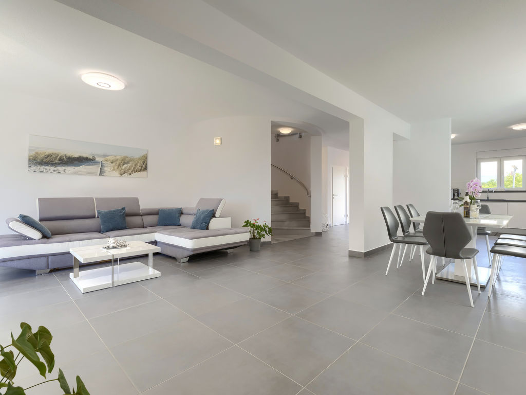 Schönes Einfamilienhaus "Villa Gocci", auf 2 Stockwerken, Baujahr 2018. Im Weiler Srbarica, 3 km vom Zentrum von Umag, sonnige Lage, 2.5 km vom Meer, 2.5 km vom Strand, in einer Sackgasse. Zur Alleinbenutzung: Grundstück 800 m2 (eingezäunt), Schwimmbad eckig (8 x 4 m, 140 cm tief, 25.04.-26.09.) mit Innentreppe. Aussendusche, Terrasse (20 m2), Gartenmöbel, Grill. Im Hause: Internetzugang, Waschmaschine. Parkplatz (für 2 Autos) beim Haus auf dem Grundstück. Einkaufsgeschäft 1 km, Supermarkt 2 km, Restaurant 500 m, Kieselstrand 2.5 km, Felsstrand 2.5 km, Strandbad 2.5 km. Golfplatz 9 km, Tennis 3 km, Wanderwege ab Haus 500 m, Radweg 550 m. Nahe gelegene Sehenswürdigkeiten: aquapark 18 km, cave Mramornica 15 km.